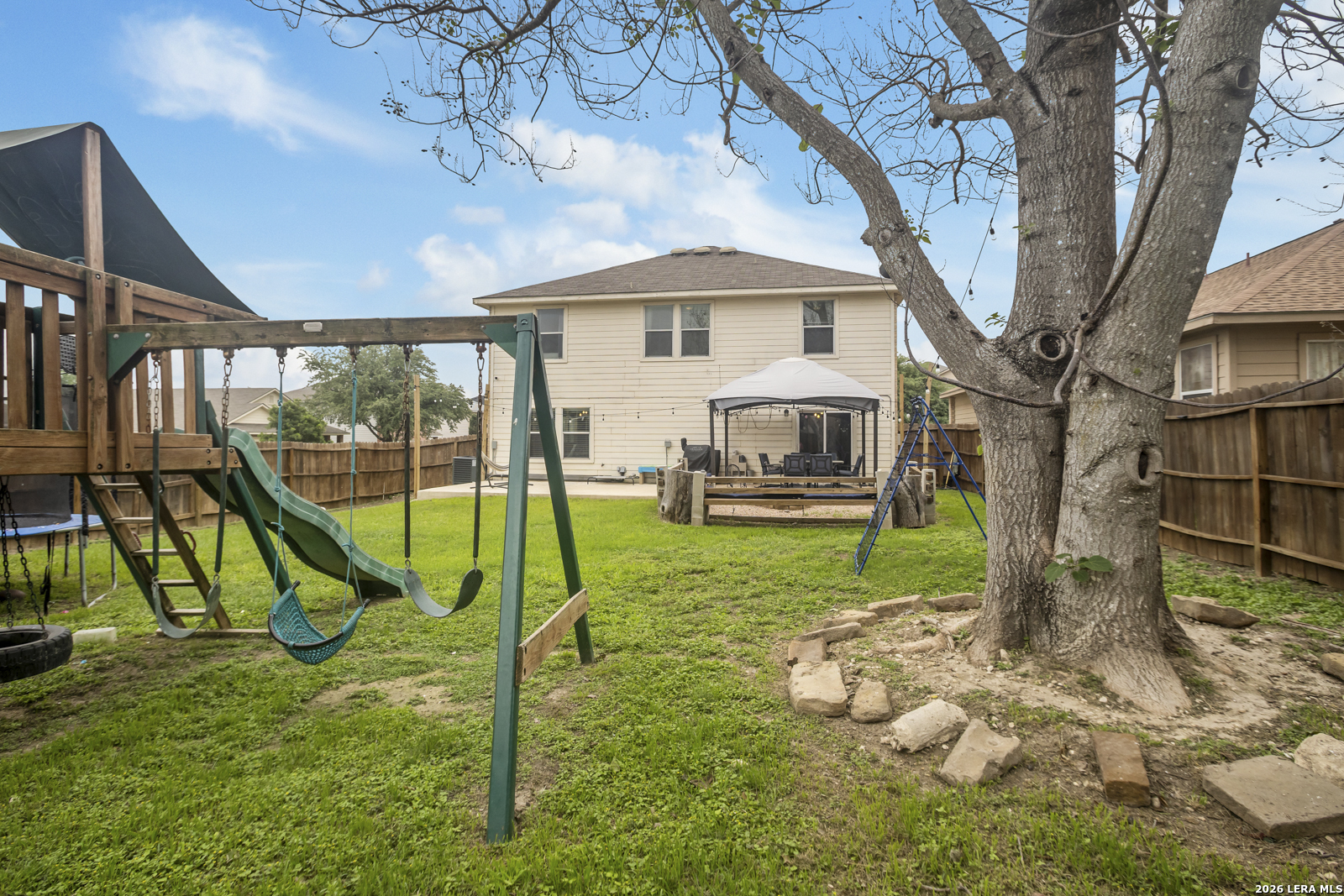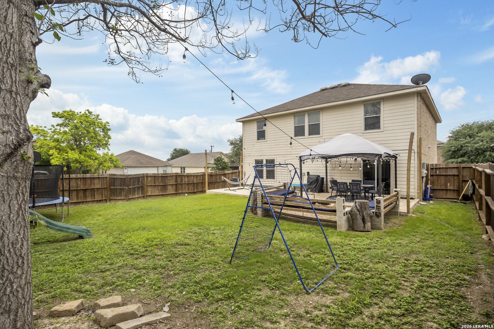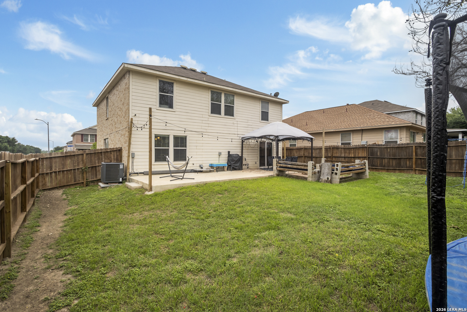 Beautiful 2-story brick home situated on a corner lot offering plenty of space inside and out! This 4-bedroom, 2-bath home in San Antonio features a spacious open-concept layout with a large living room that flows seamlessly into the kitchen, creating the perfect space for entertaining and everyday living. The kitchen is equipped with stainless steel appliances, ample cabinet and countertop space, and overlooks the main living area. The large master retreat offers a private bonus room that is perfect for a nursery, craft room, study, or additional sitting area. Secondary bedrooms are well-sized with flexibility for guests, office space, or hobbies. The HVAC system was replaced in 2022, adding peace of mind and improved energy efficiency. Step outside to enjoy the oversized backyard featuring a large stone patio, mature tree, and plenty of room for outdoor gatherings, play, or relaxation. Conveniently located near shopping, dining, schools, and major highways, this home combines comfort, functionality, and a great location.