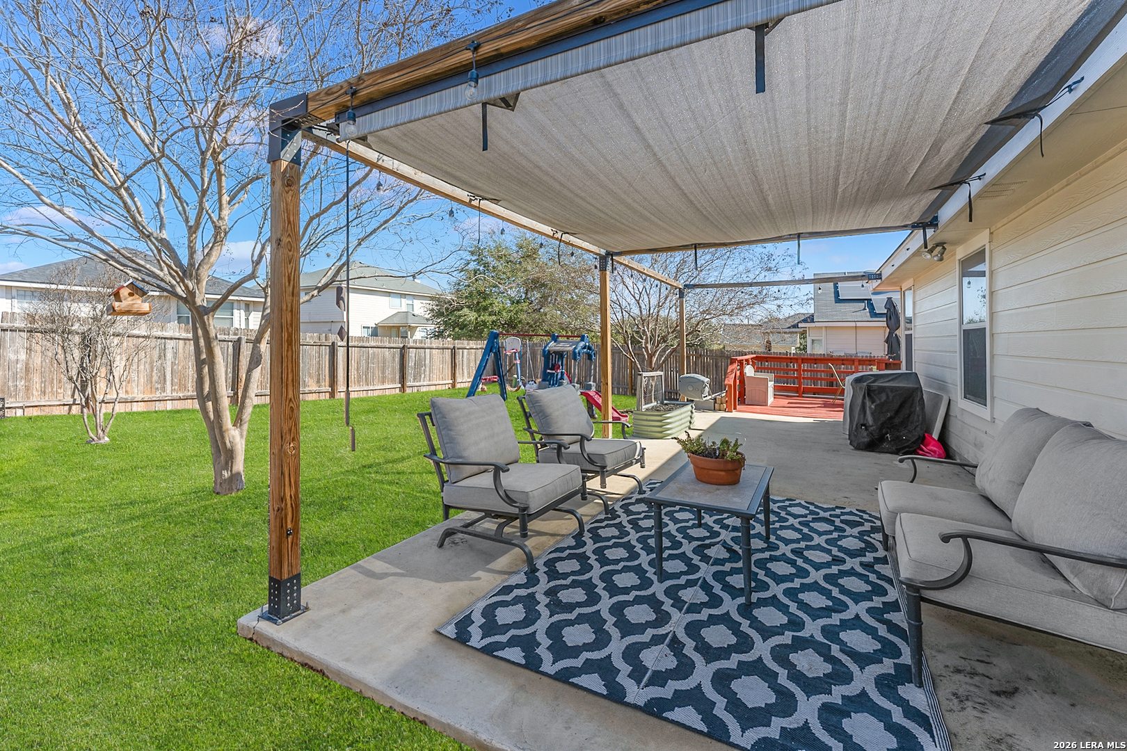 Move-In Ready Single-Story Beauty! Welcome to this adorable and well-maintained single-story brick home featuring 4 spacious bedrooms and 2 full baths. Inside, you'll love the high ceilings and the easy-care tile and laminate flooring throughout - no carpet! The updated kitchen shines with beautiful quartz countertops, new cabinetry, and modern appliances, making it perfect for both everyday living and entertaining. Step outside to enjoy the deck and patio area, ideal for outdoor gatherings and weekend relaxation. Located in a great neighborhood with fast and easy access to major highways, this home is conveniently close to shopping centers, grocery stores, SeaWorld, and Lackland AFB. Energy-efficient solar panels (owned by Seller) provide added savings and value. Gorgeous, well cared for, and truly move-in ready - this one is a must-see!