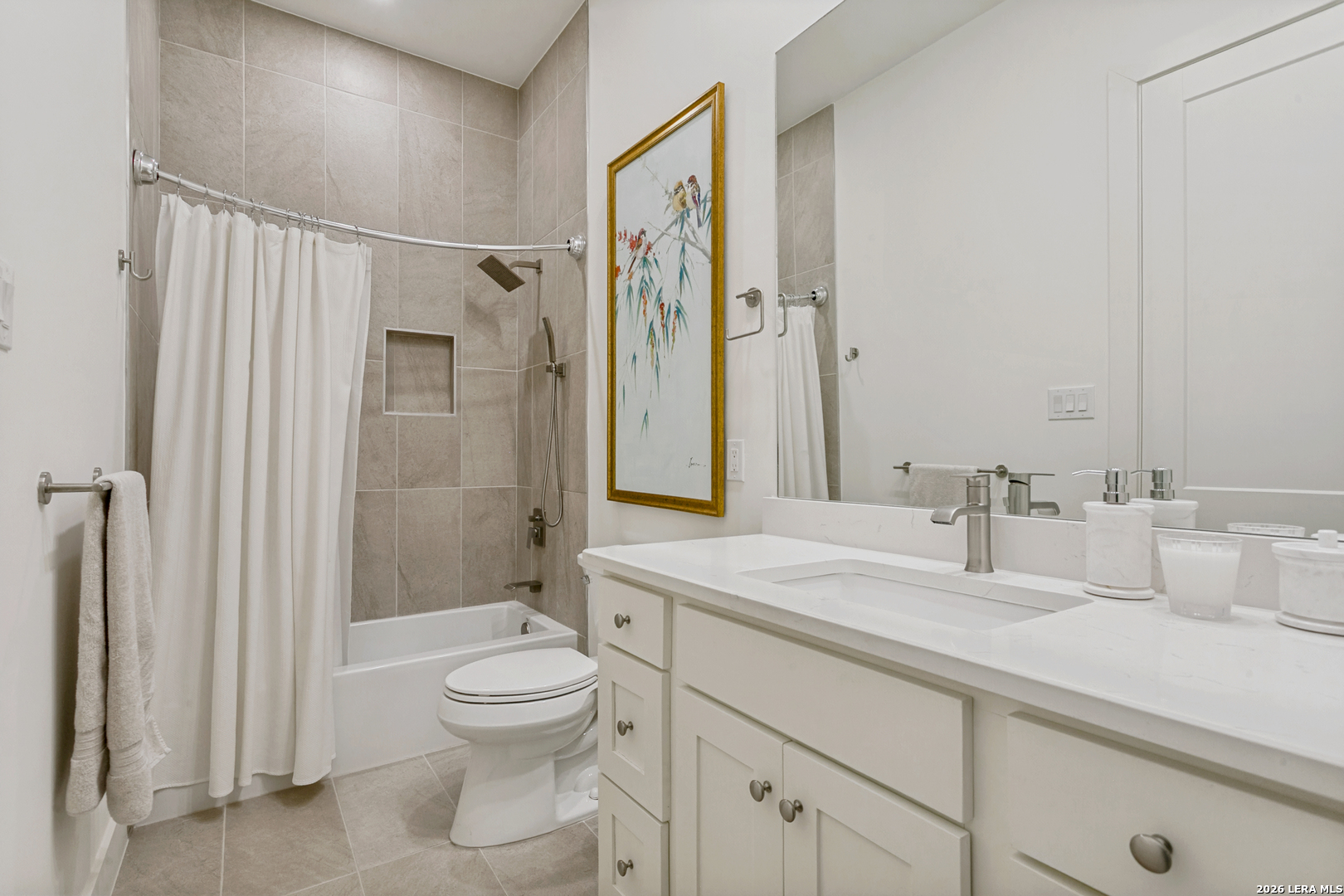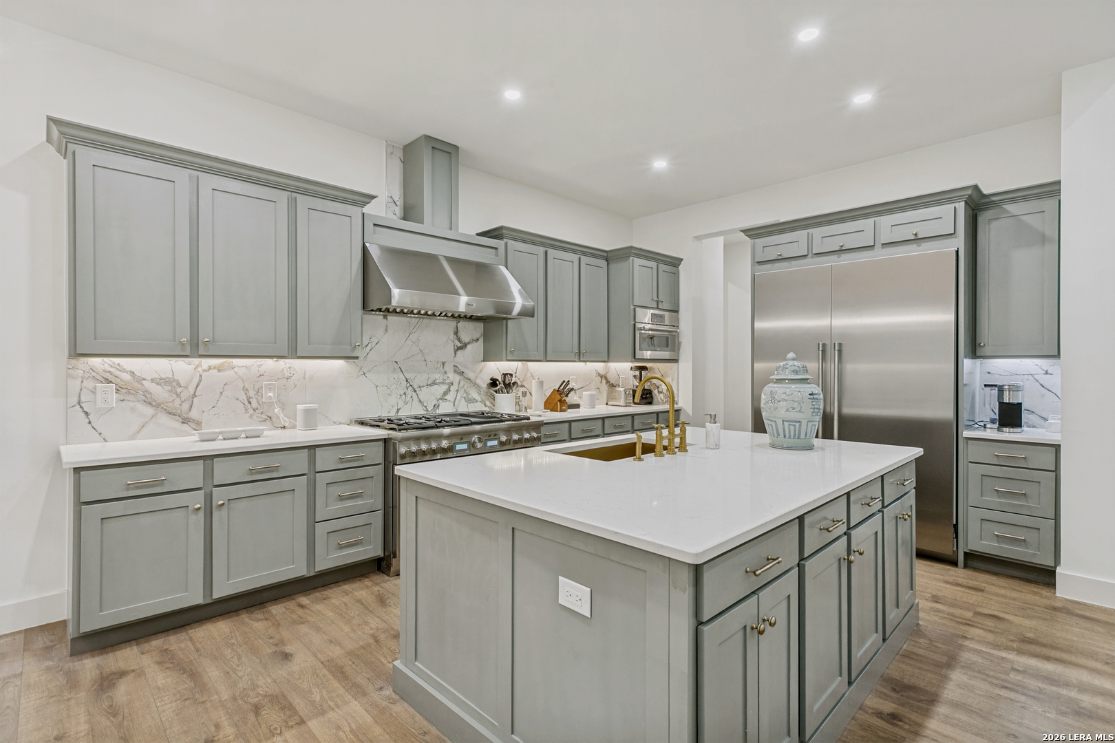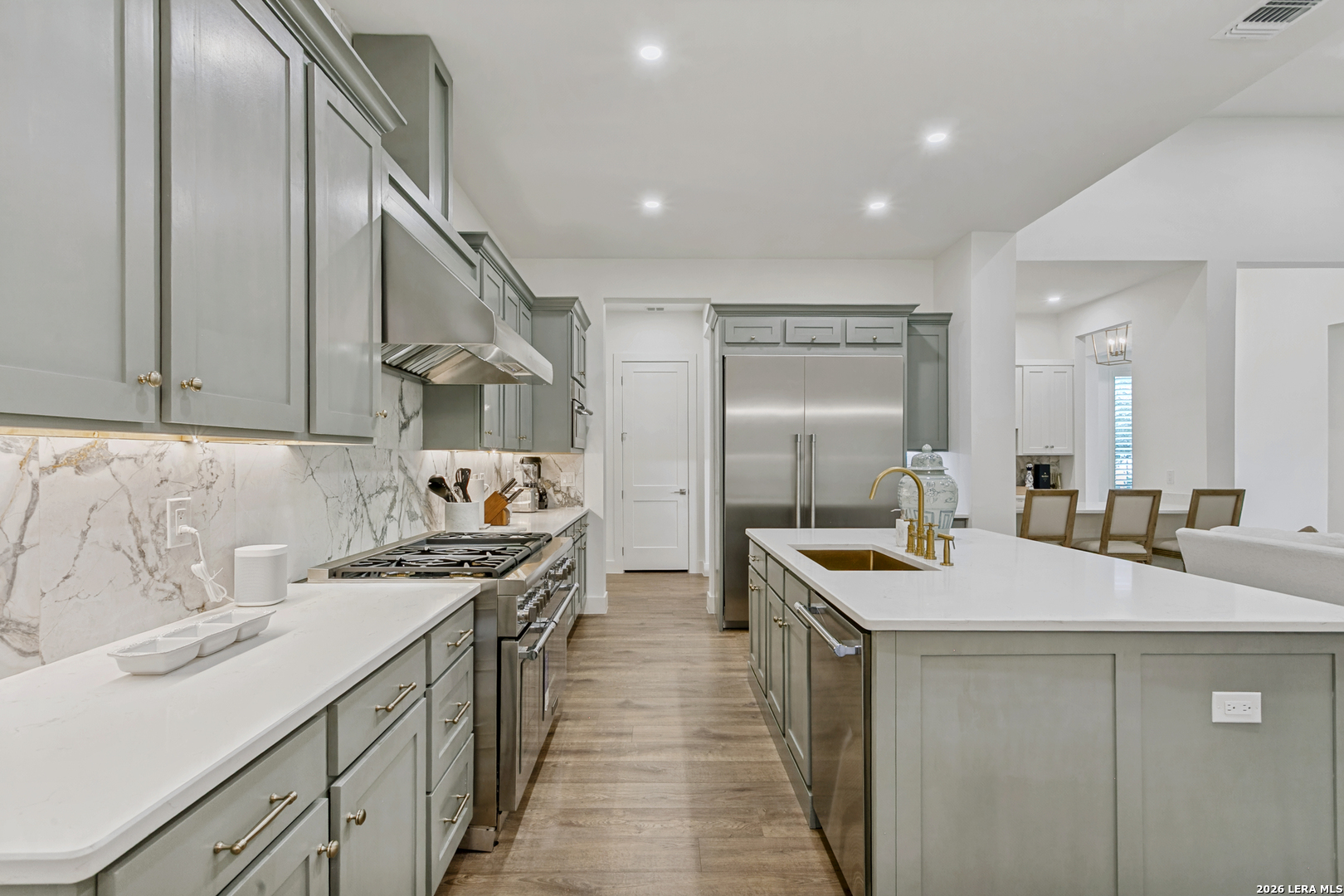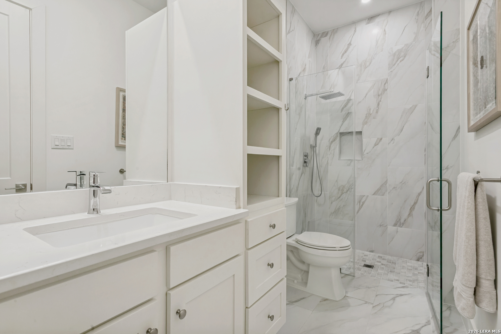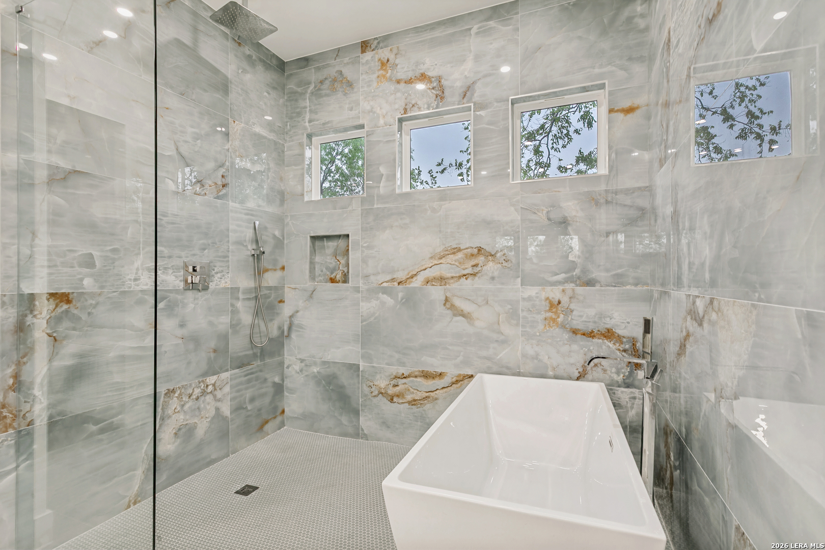 Terrell Hills one story elegant home is offered for sale. Like new construction offering four-bedroom, four-and-a-half-bath blending comfort, functionality, and style. Designed with an open-concept layout, it features a spacious great room with high ceilings that flow seamlessly into a modern kitchen and breakfast area-perfect for entertaining or family gatherings. High end finishes , custom cabinets (throughout the home), Thermador appliances, and marble and quartz countertops are some of the luxurious features. Each bedroom includes its own en-suite bathroom, providing privacy and convenience, while the primary suite offers a luxurious retreat with a spa-style bath, dual vanities, and a generous walk-in closet. This modern appointed home is situated on a large lot with a large covered patio living space and covered outdoor kitchen. Over-sized three car garage offers ample space off of the side entry garage and additional paved driveway. Conveniently located in central San Antonio in the North East Independent School district with ease of shopping and dining via I 410 or 281. This Terrell Hills home is minutes away from the best of Alamo Heights or San Antonio. Minutes from Fort Sam Military Base.