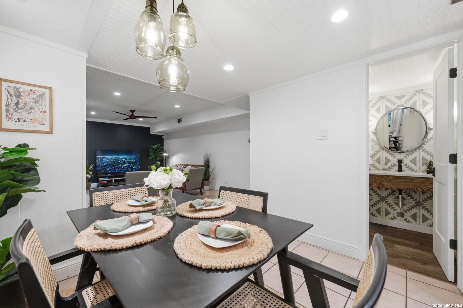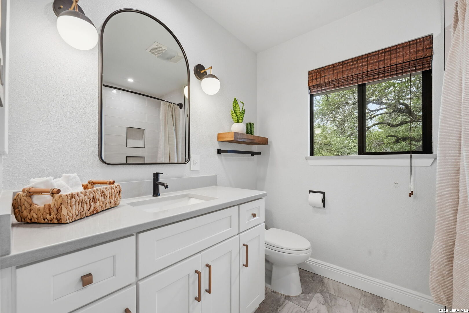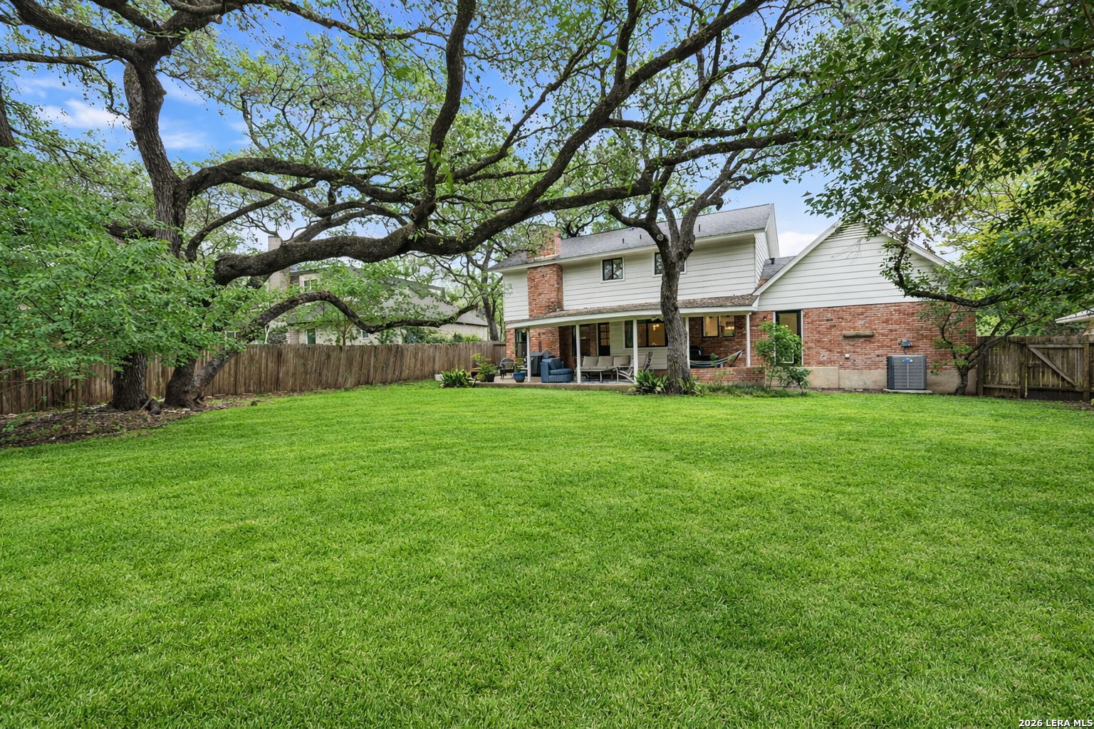 We're all looking for "the one"....preferably, one that doesn't talk back, but WHISPERS. Welcome to 11015 Whisper Hollow St. Set beneath a canopy of mature trees in the established Whispering Oaks community, this thoughtfully designed residence offers a refined balance of character, scale, and modern livability in a prime San Antonio location. From the ceilings down, every element has been curated to create a space that feels layered, inviting, and effortlessly elevated, where classic charm meets a more modern point of view. Beadboard ceilings and subtle beam accents introduce architectural texture, while recessed lighting and natural light work in harmony to brighten the interior and define each space. Updated fixtures, including a statement dining chandelier and contemporary wall sconces, add a sophisticated edge without compromising warmth. Anchored by a fireplace, the main living area is both comfortable and refined, enhanced by custom accent walls and a bold paneled feature that brings depth and contrast. Designer tile and curated finishes in secondary spaces introduce character while maintaining a clean, well-composed aesthetic. Hard surface flooring runs throughout, no carpet, offering a seamless, low-maintenance feel. Rich wood floors add warmth, while the staircase serves as a subtle design moment with contrasting risers and classic detailing. Outdoors, the setting opens to an expansive backyard framed by mature trees, creating a sense of privacy and retreat. A covered patio extends the living experience beyond the interior, equally suited for quiet mornings or relaxed gatherings, with ample space to tailor the landscape to your vision. Positioned within Northside ISD and moments from major highways, shopping, dining, and medical center, this home delivers both convenience and a sense of place within one of San Antonio's most established enclaves. A home that feels right the moment you arrive. A distinctive offering in a sough-after setting, truly "the one" you don't want to miss!