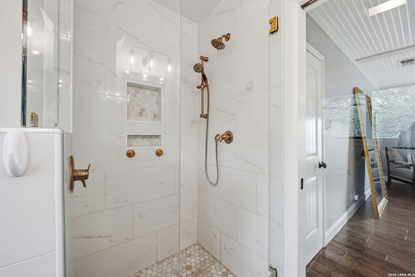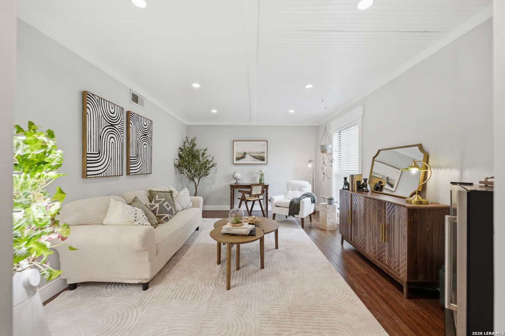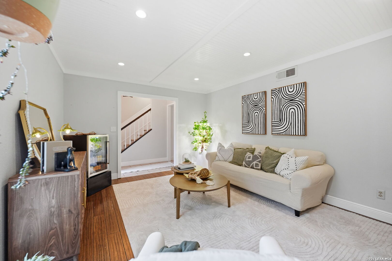 We're all looking for "the one"....preferably, one that doesn't talk back, but WHISPERS. Welcome to 11015 Whisper Hollow St. Set beneath a canopy of mature trees in the established Whispering Oaks community, this thoughtfully designed residence offers a refined balance of character, scale, and modern livability in a prime San Antonio location. From the ceilings down, every element has been curated to create a space that feels layered, inviting, and effortlessly elevated, where classic charm meets a more modern point of view. Beadboard ceilings and subtle beam accents introduce architectural texture, while recessed lighting and natural light work in harmony to brighten the interior and define each space. Updated fixtures, including a statement dining chandelier and contemporary wall sconces, add a sophisticated edge without compromising warmth. Anchored by a fireplace, the main living area is both comfortable and refined, enhanced by custom accent walls and a bold paneled feature that brings depth and contrast. Designer tile and curated finishes in secondary spaces introduce character while maintaining a clean, well-composed aesthetic. Hard surface flooring runs throughout, no carpet, offering a seamless, low-maintenance feel. Rich wood floors add warmth, while the staircase serves as a subtle design moment with contrasting risers and classic detailing. Outdoors, the setting opens to an expansive backyard framed by mature trees, creating a sense of privacy and retreat. A covered patio extends the living experience beyond the interior, equally suited for quiet mornings or relaxed gatherings, with ample space to tailor the landscape to your vision. Positioned within Northside ISD and moments from major highways, shopping, dining, and medical center, this home delivers both convenience and a sense of place within one of San Antonio's most established enclaves. A home that feels right the moment you arrive. A distinctive offering in a sough-after setting, truly "the one" you don't want to miss!
