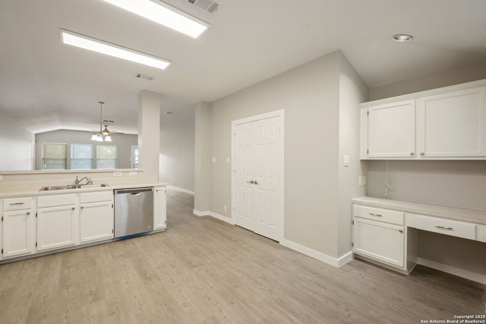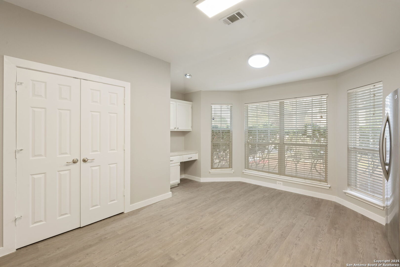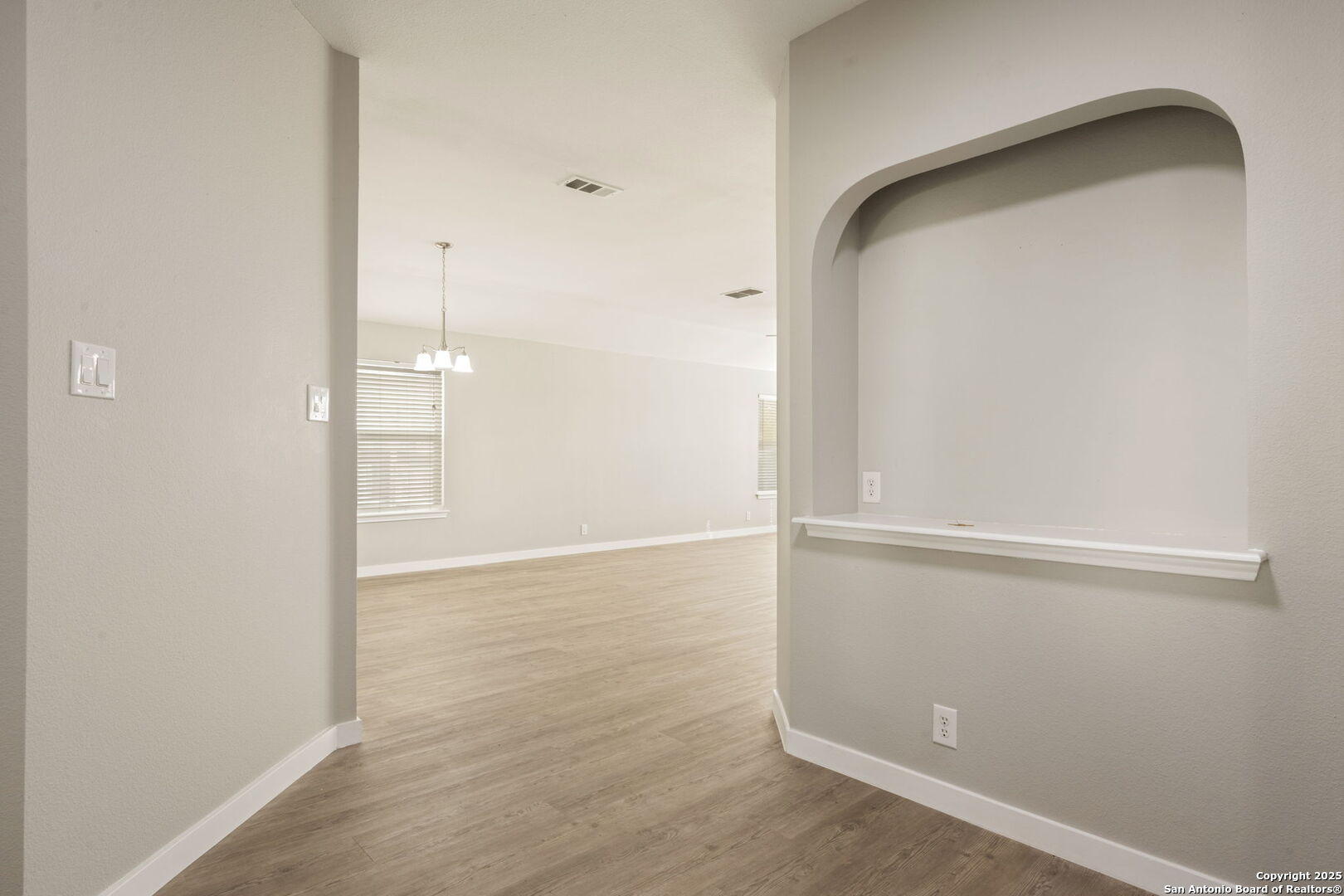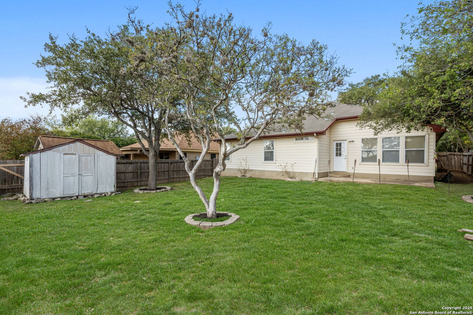Charming one-story home nestled beneath mature trees in both the front and back yards. Recently updated with over $20,000 in renovations, including new flooring, fresh interior paint, upgraded landscaping, and more. The spacious living and dining area features vaulted ceilings and abundant natural light, flowing into an open kitchen with a large pantry and built-in desk. The primary suite offers a garden tub/shower combo with marble surround, double vanity, and walk-in closet. A unique feature: the second bedroom is connected to the primary-perfect for a nursery, office, or sitting area. Move-in ready with timeless appeal and thoughtful details throughout.