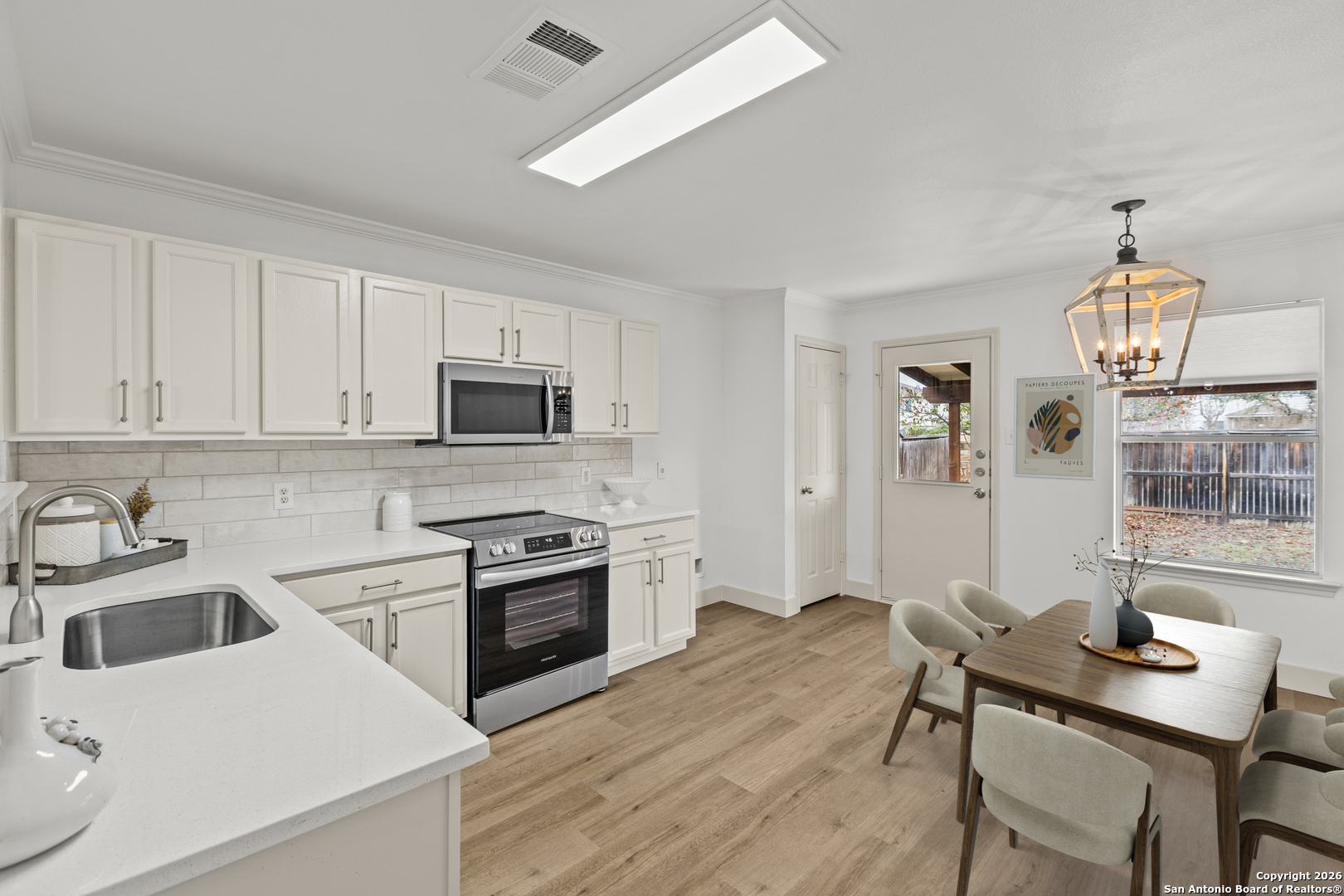 Just refreshed and cute as a button! No Carpet! This lovely one story home has luxury vinyl plank flooring throughout all living areas. Just replaced kitchen appliances and added quartz countertops, backsplash and hardware. Bathrooms fully updated with gorgeous cabinets that have marble countertops and tile flooring. Office space in main hallway. Entire interior has been freshly painted. Main Living is large and can also be used as a Living/Dining Combo. Convenient location with easy access and only 5 minutes to 1604, HEB, Shopping and Restaurants!