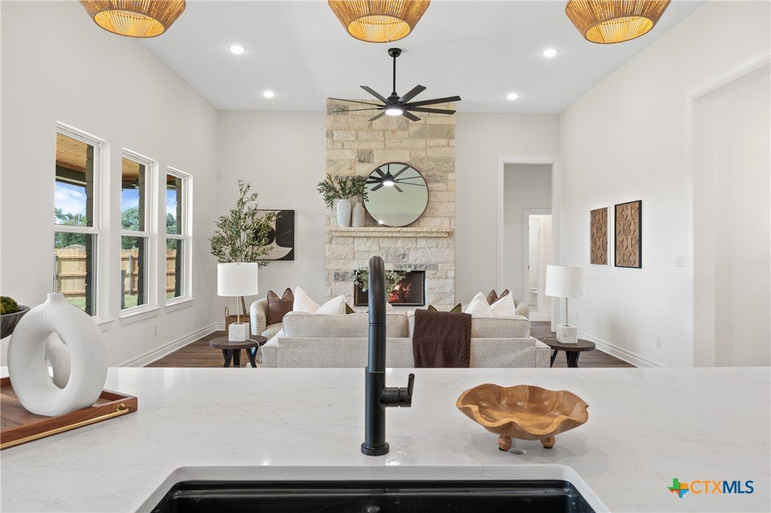 ASK ABOUT OUR SELLER AND PREFERRED LENDER INCENTIVES! Time to make this beautiful, custom home your own. Welcome to this Omicron Custom Homes stunner in the coveted Eagle Ranch subdivision of Salado. This home really has it all! Sitting on a corner lot with over .6 acres, it features a spacious 3 car garage, huge back porch with decorative wood ceiling, privacy fence and a roomy driveway. Inside you'll love the open concept kitchen, dining, and living area centered around a floor to ceiling wood burning fireplace with tons of natural light pouring in. The kitchen has a huge center island, custom cabinets, and a butler's pantry for extra storage and to keep food prep out of sight. The primary suite has possibly the largest walk-in custom closet you've ever seen, plus a gorgeous bathroom with walk-through shower, soaking tub, and double vanities. For guests and/or kids, the secondary bathroom is jack and jill style with 2 vanities and a private toilet/shower area for extra functionality. All this plus a half bath for guests and a 4th bedroom which could flex as an office if needed! Schedule your showing and snag this one while you can!