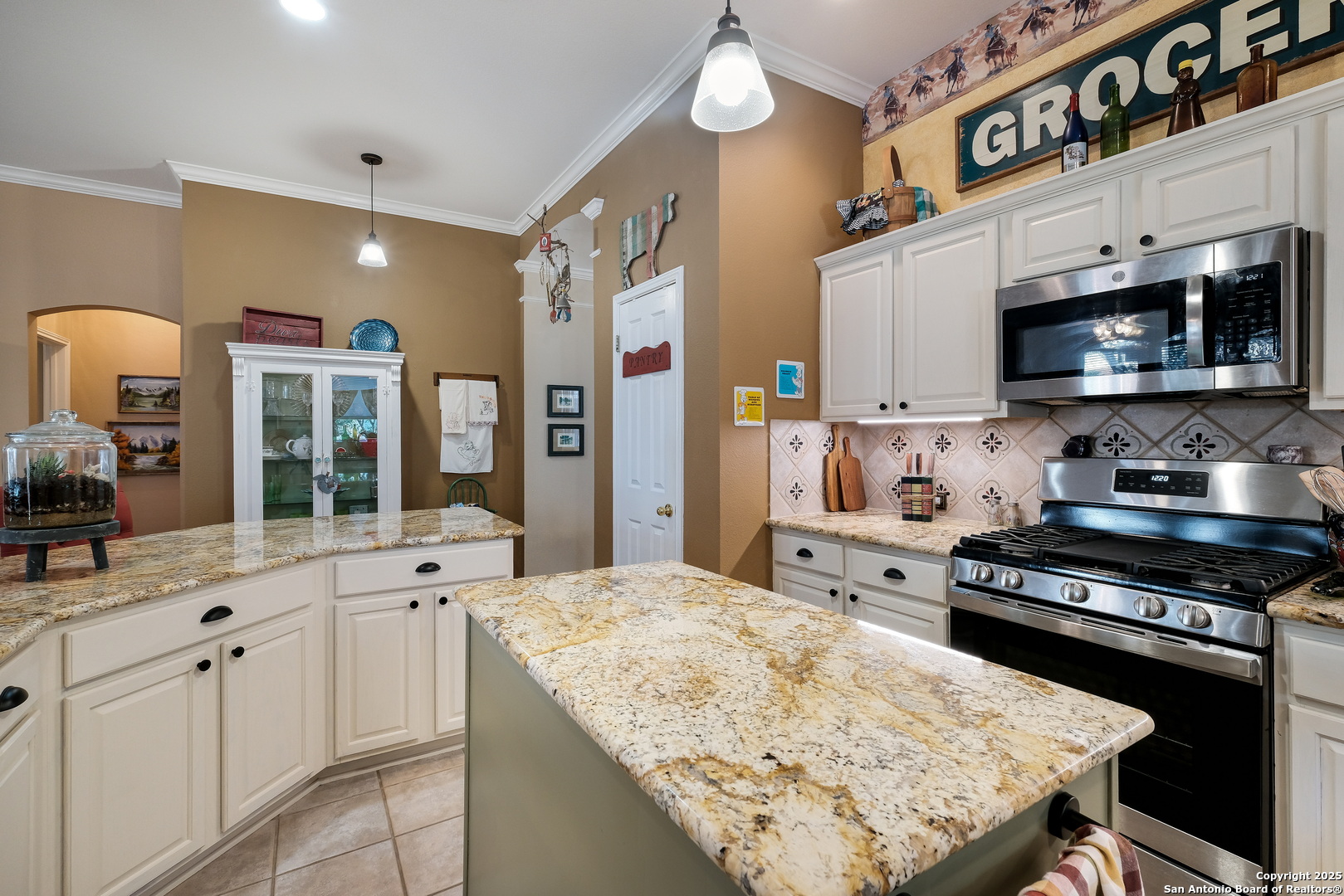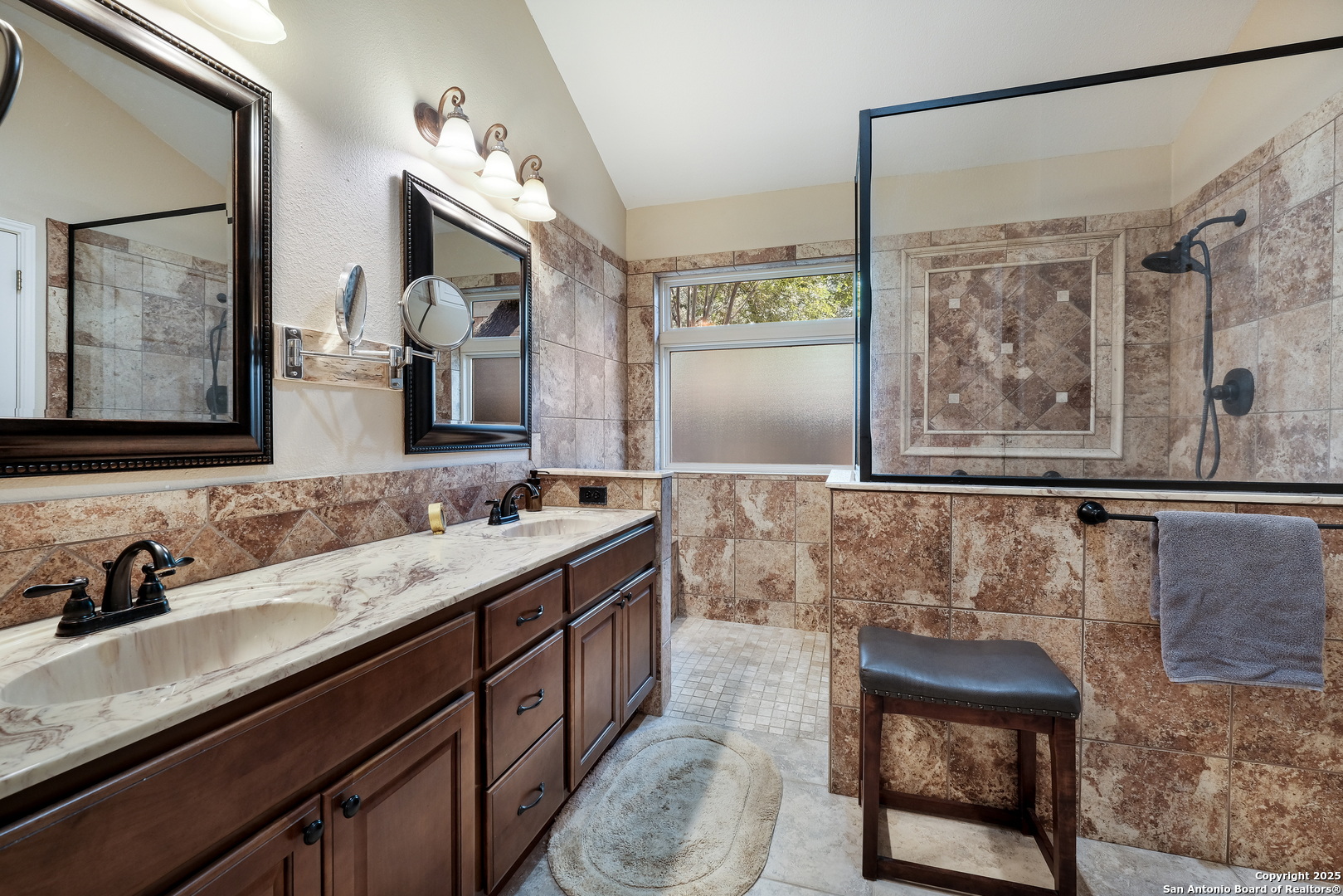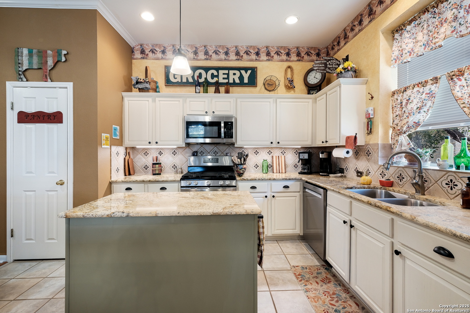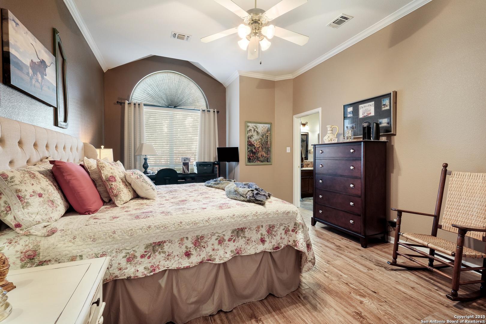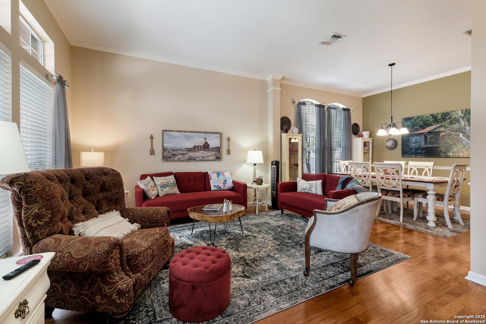Welcome to this meticulously maintained home tucked away in a quiet cul de sac within a gated community in the heart of Stone Oak. Inside, you'll find a completely carpet free interior and a fresh kitchen with granite countertops and new appliances (2023) including a gas stove, dishwasher, microwave, and refrigerator that will stay. A block carbon water filter has been added under the sink, and a water softener serves the entire home for better water quality. The primary suite features an oversized walk in shower, while the garage offers built in shelving for extra storage. Step outside to your private oasis surrounded by mature oak trees. The backyard has been thoughtfully improved with a new deck, a canopy that will convey and is perfect for relaxing or entertaining. Leaf guard gutters by LeafFilter and a full sprinkler system in the front and back keep maintenance simple. This move in ready home blends comfort, convenience, and peace of mind in one of the community's most desirable locations in Stone Oak.