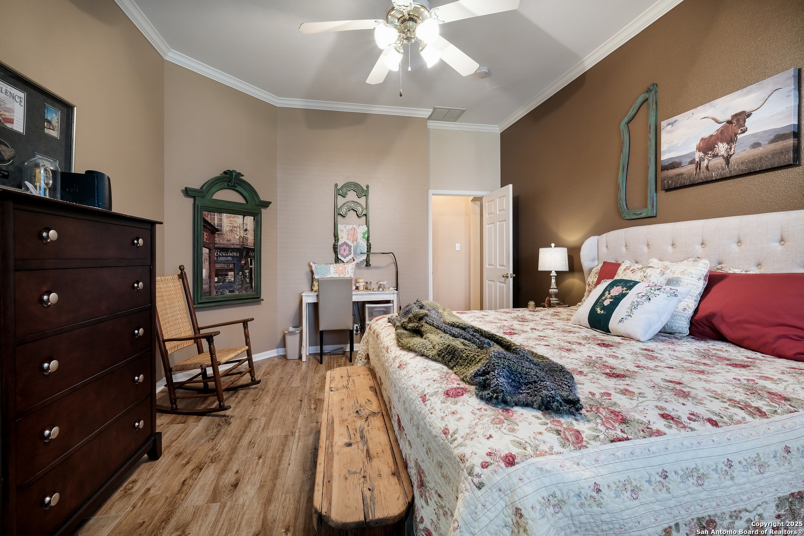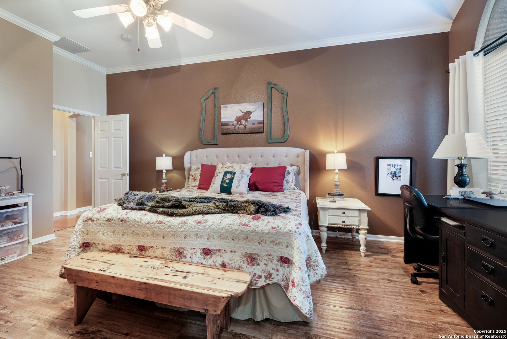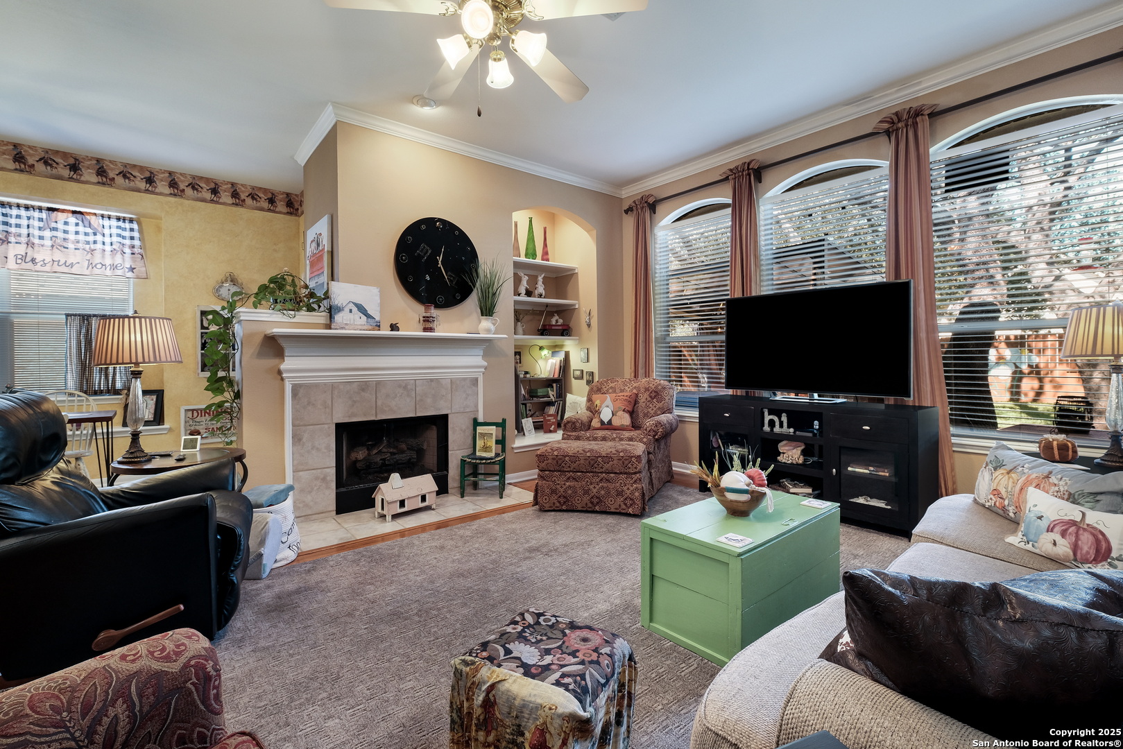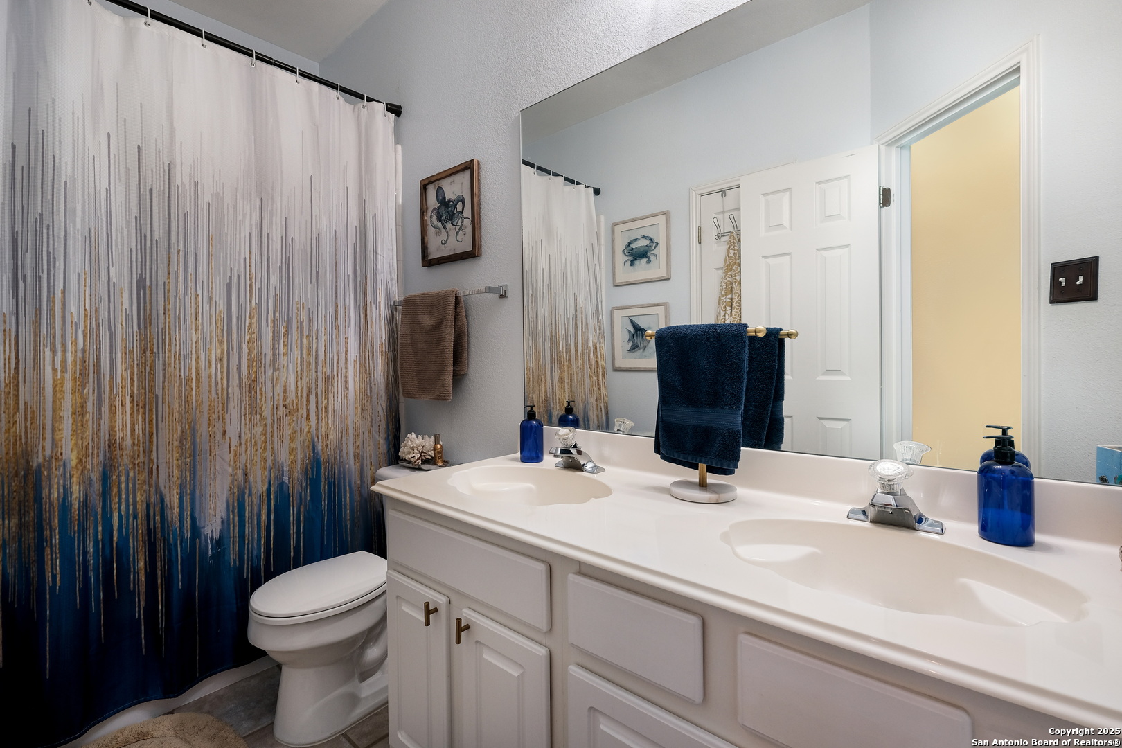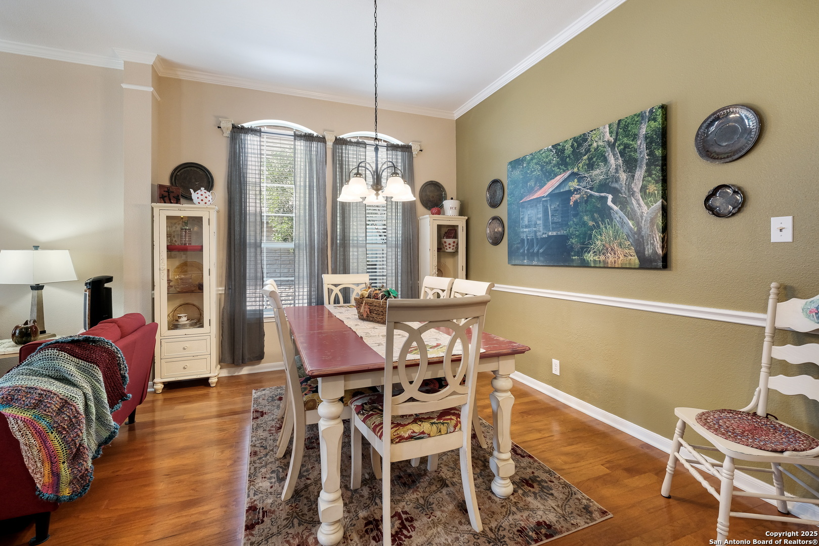 Welcome to this meticulously maintained home tucked away in a quiet cul de sac within a gated community in the heart of Stone Oak. Inside, you'll find a completely carpet free interior and a fresh kitchen with granite countertops and new appliances (2023) including a gas stove, dishwasher, microwave, and refrigerator that will stay. A block carbon water filter has been added under the sink, and a water softener serves the entire home for better water quality. The primary suite features an oversized walk in shower, while the garage offers built in shelving for extra storage. Step outside to your private oasis surrounded by mature oak trees. The backyard has been thoughtfully improved with a new deck, a canopy that will convey and is perfect for relaxing or entertaining. Leaf guard gutters by LeafFilter and a full sprinkler system in the front and back keep maintenance simple. This move in ready home blends comfort, convenience, and peace of mind in one of the community's most desirable locations in Stone Oak.
