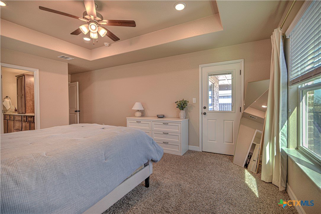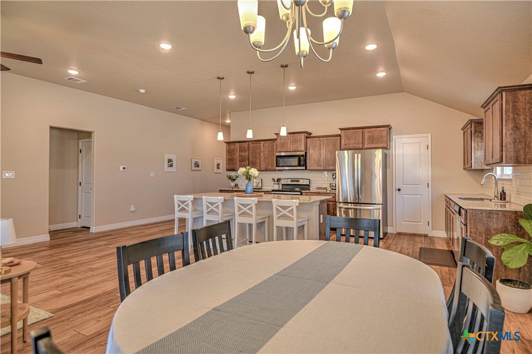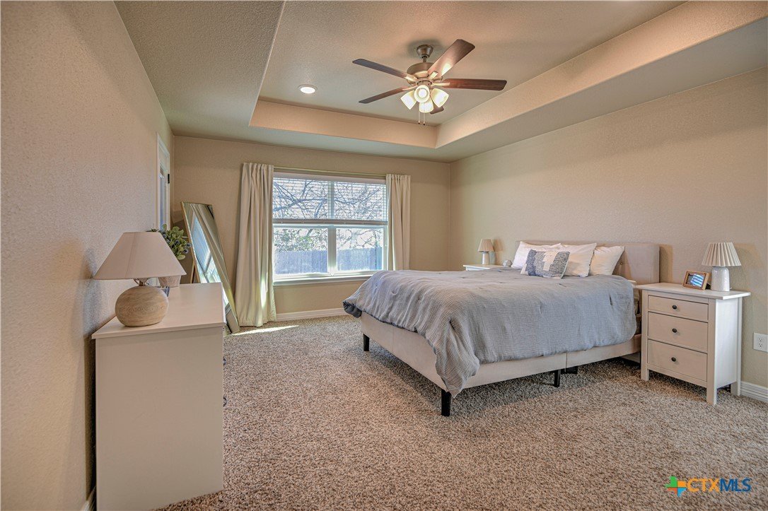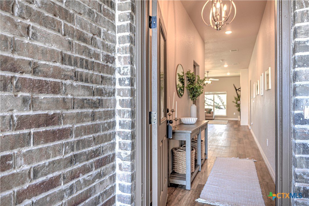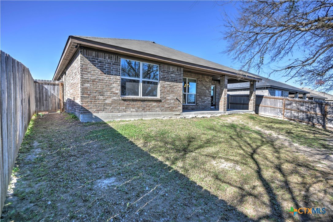 Celebrate 2026 in this beautiful, nearly new home nestled in the Oak Ridge, tucked away in a peaceful setting, the home offers a true country feel while remaining just minutes from downtown, shopping, dining, and everyday essentials. With quick and easy access to the Loop and I-35, commuting north to Waco or south to Austin is effortless, making this location both tranquil and convenient. From the moment you step inside, the impressive square footage of this three-bedroom, two-bath home is immediately apparent. The open layout, high ceilings, and abundant natural light create an inviting sense of space and comfort throughout. Available only due to a job transfer, the home has been hardly lived in and feels clean, fresh, and move-in ready. The heart of the home is the spacious open-concept living area, where a cozy electric fireplace adds warmth and charm year-round. The kitchen is designed for both everyday living and entertaining, featuring granite countertops, a large center island, extensive cabinet and counter space, and a pantry that will impress even the most avid home chef. Beautiful wood-look vinyl plank flooring flows seamlessly through the main living areas, perfectly complementing the cabinetry, wall colors, and backsplash for a cohesive, thoughtfully designed feel. The primary suite offers a peaceful retreat with elegant coffered ceilings and generous space. The ensuite bath includes dual vanities, a walk-in shower, and an oversized walk-in closet, along with private access to the backyard patio—perfect for enjoying quiet mornings or relaxing evenings outdoors. The additional bedrooms and bathrooms are spacious and well-appointed, continuing the home’s bright and comfortable atmosphere. Beyond the interior, the home provides exceptional storage with ample closets, a large pantry, attic space, and a roomy garage. Step outside to a private backyard patio with no homes behind, where a mature shade tree enhances the sense of privacy and calm.