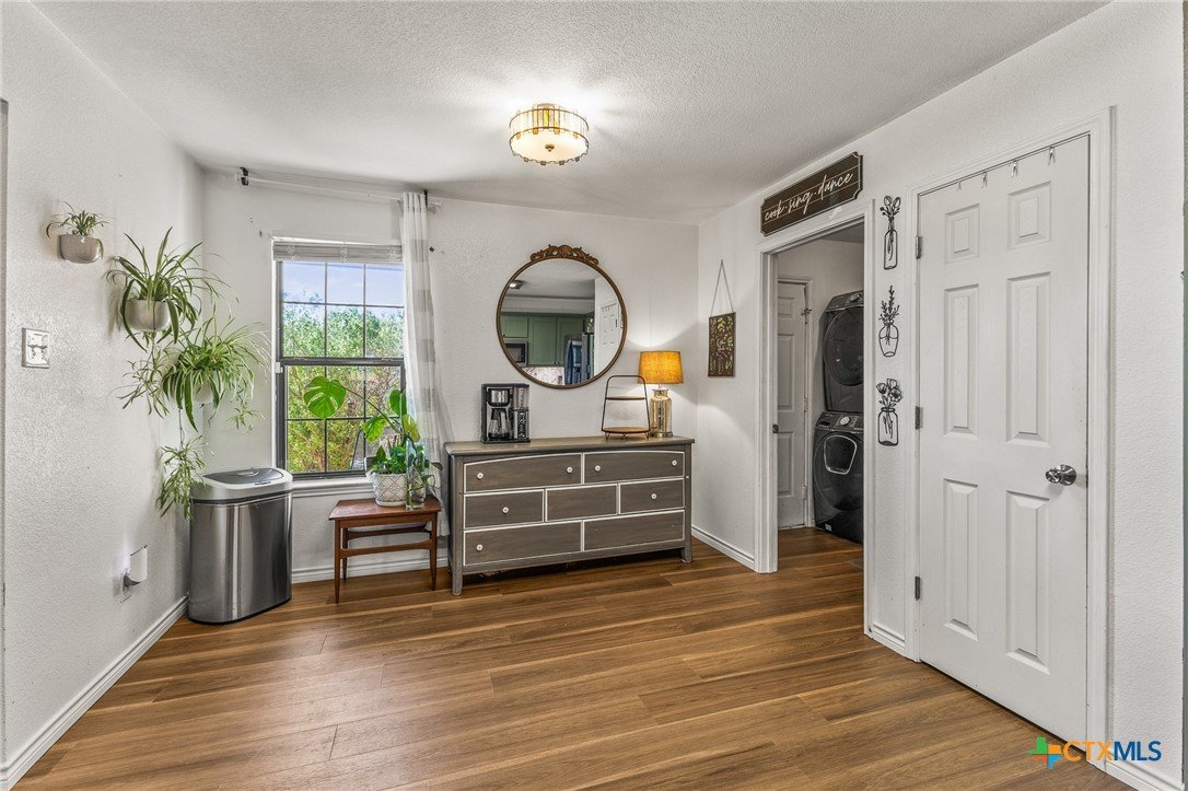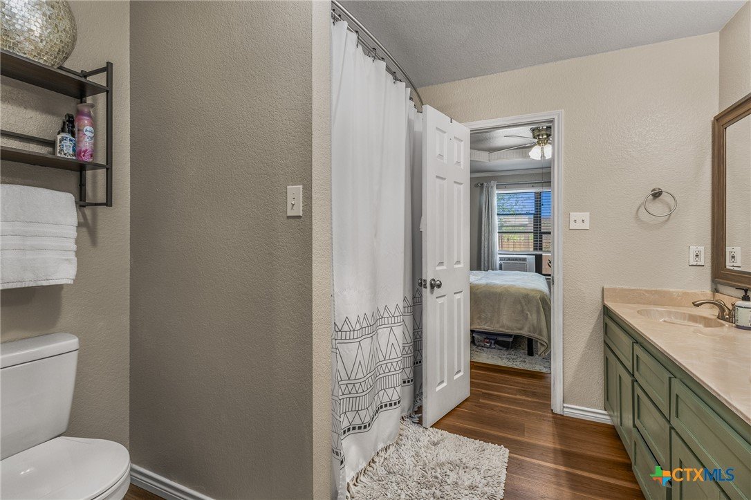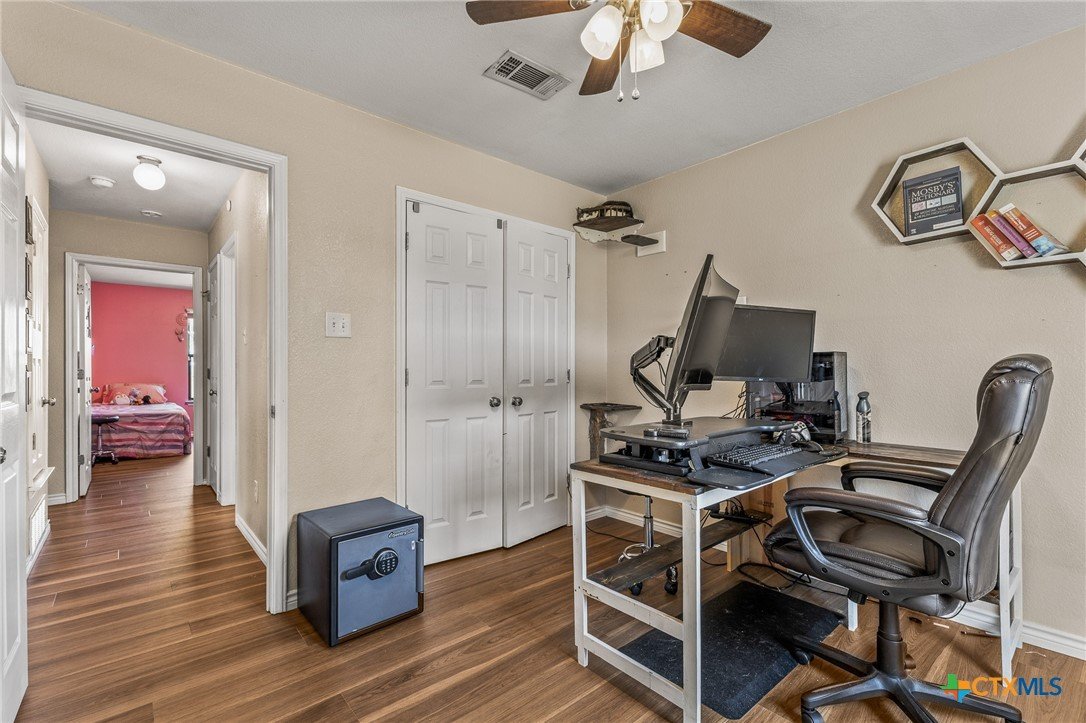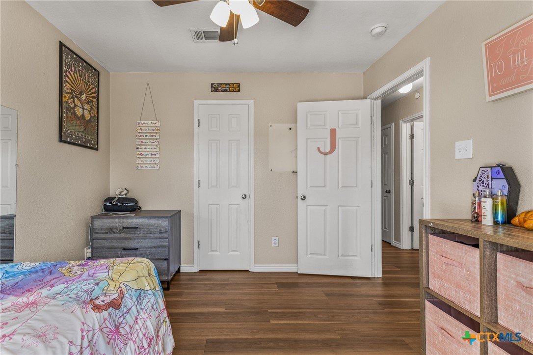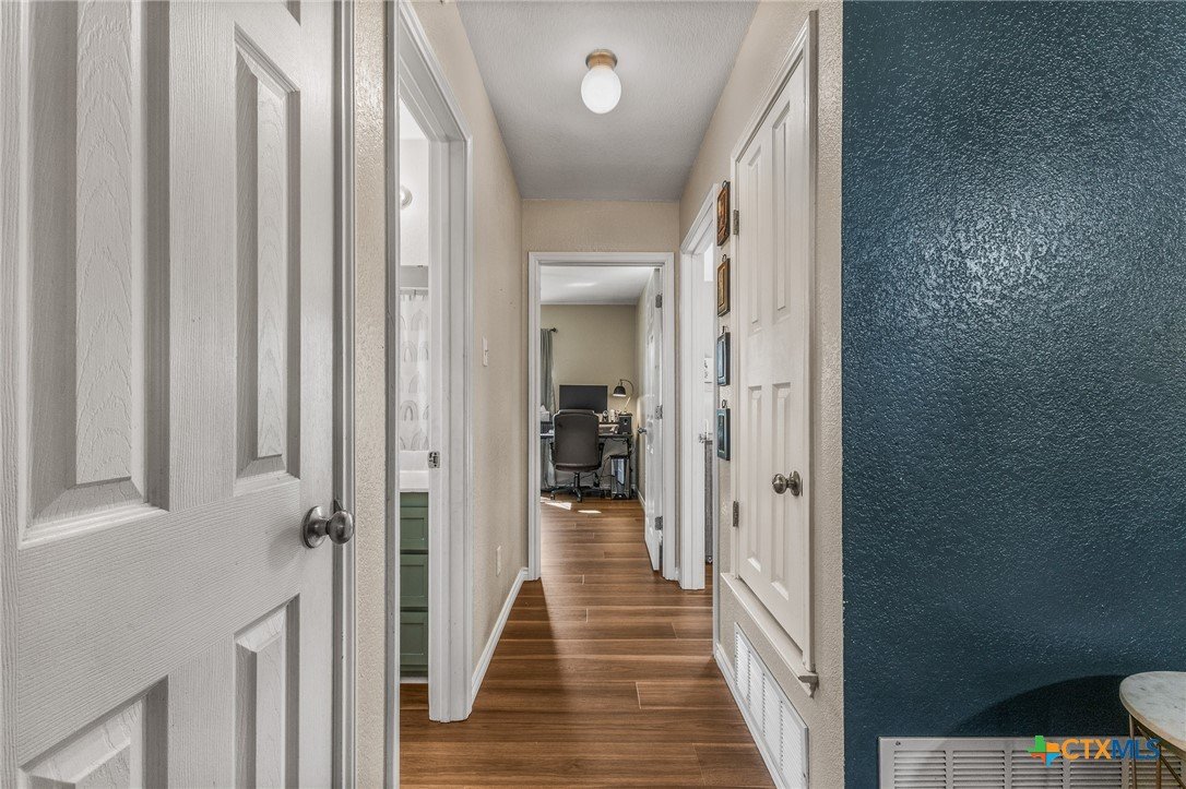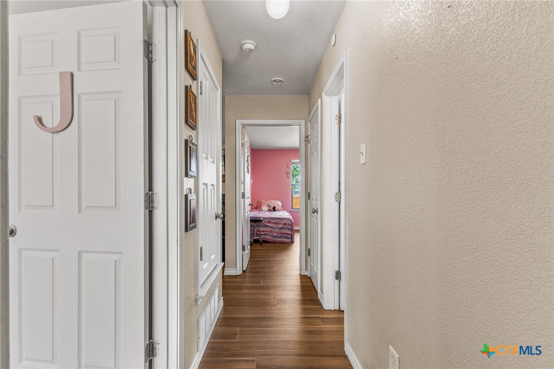 Updated and move-in ready 4 bedroom, 2 bath home with over 1,600 sqft and no carpet—luxury vinyl plank flooring runs throughout for a clean, low-maintenance feel. he living area centers around a cozy fireplace, while the kitchen stands out with quartz countertops, painted cabinetry, updated backsplash, and stainless appliances. Functional layout with good separation between spaces and flexibility for bedrooms, office, or guests. Primary suite includes a walk-in closet, and the additional bedrooms offer plenty of room to spread out. Out back, you’ll find a covered patio, storage shed, and a spacious yard with room to play or entertain. Conveniently located near shopping, dining, and a quick drive to Fort Hood.