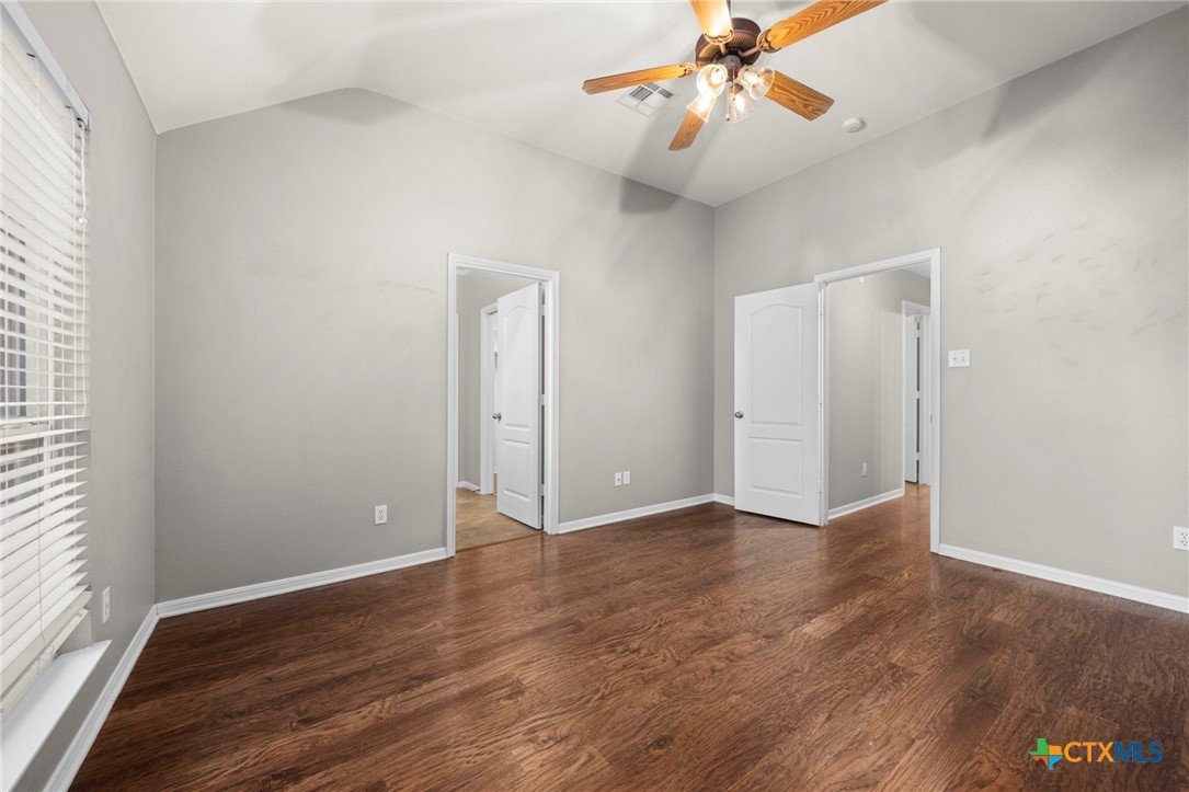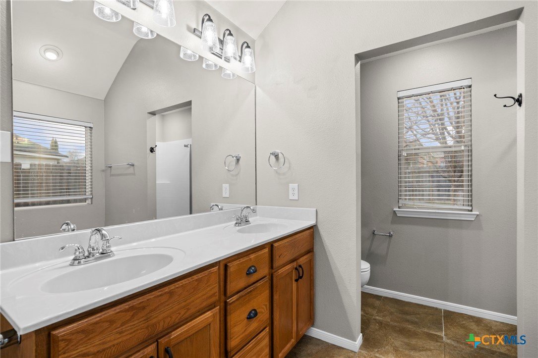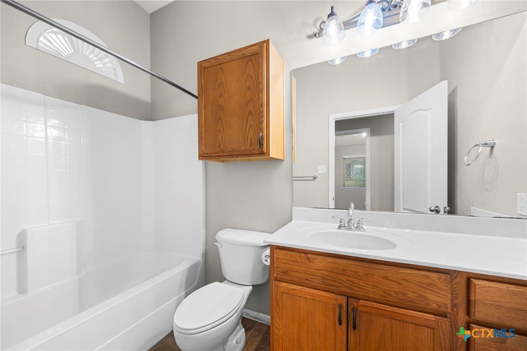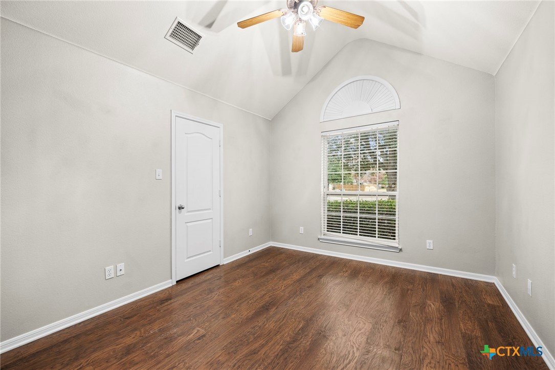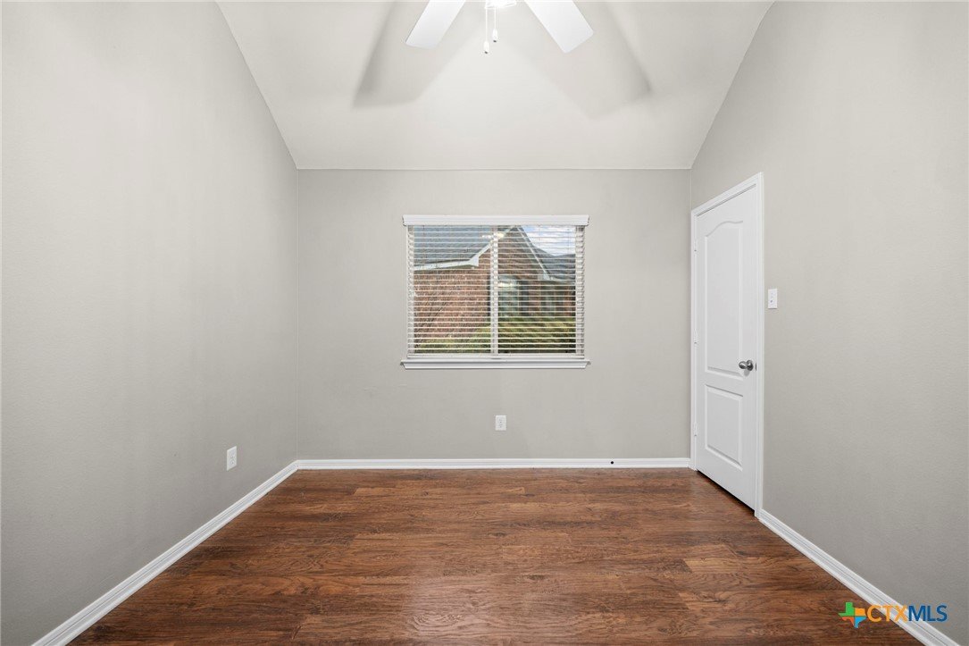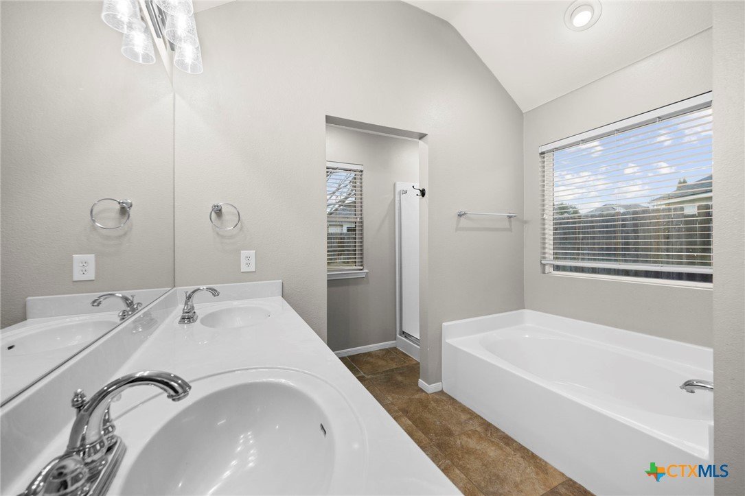 Single-story 3-bedroom, 2-bath home in Temple, zoned to Belton ISD, featuring a functional layout and well-maintained interior spaces. The main living area offers vaulted ceilings, wood-look flooring, and a fireplace, with natural light from multiple windows overlooking the backyard. The kitchen includes granite countertops, ample cabinet storage, and opening to the dining area for easy everyday use. A breakfast nook with bay-style windows provides additional dining space with backyard views. The primary bedroom includes an en-suite bath with dual vanities, soaking tub, separate shower, and walk-in closet. Secondary bedrooms are similarly finished with matching flooring and ceiling fans, offering flexibility for guest rooms, office space, or additional living needs. A covered back patio extends the living space outdoors, overlooking a fenced yard with room for pets, play, or outdoor projects. The home is located in an established neighborhood with community amenities and convenient access to schools, shopping, and major routes throughout Temple and the surrounding area.