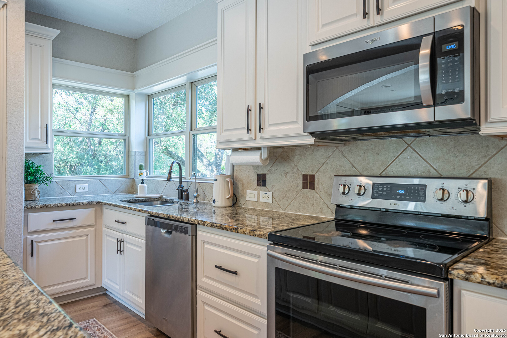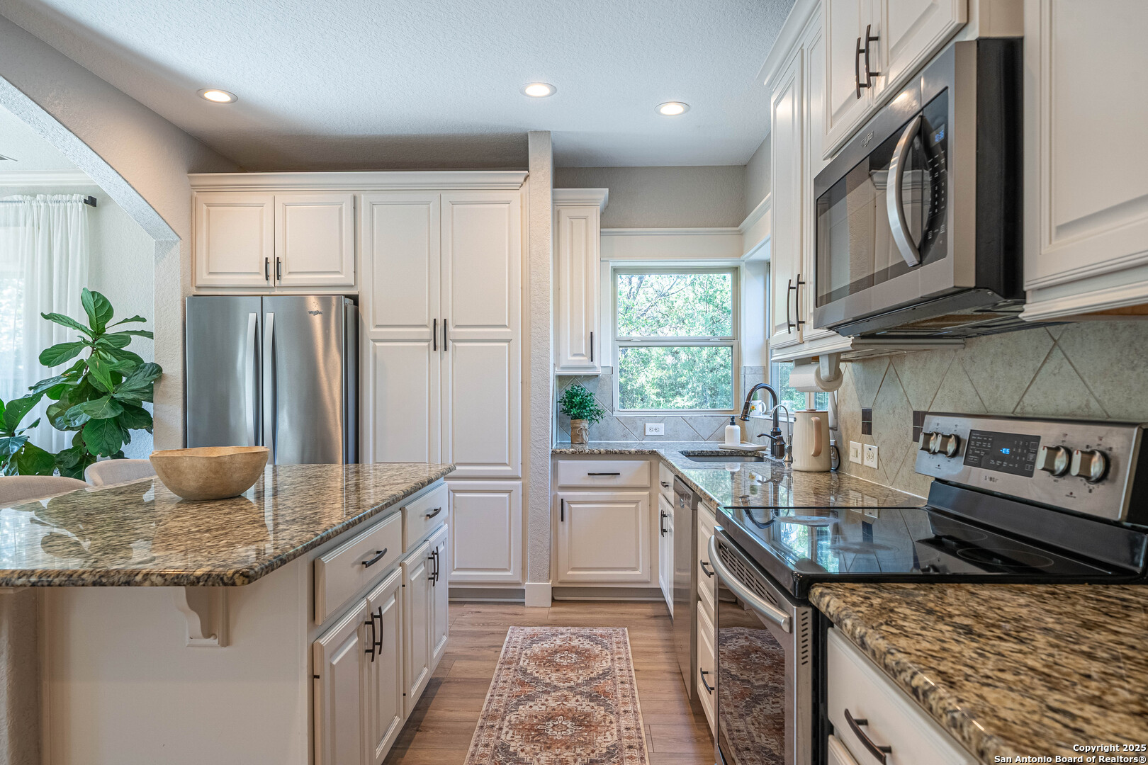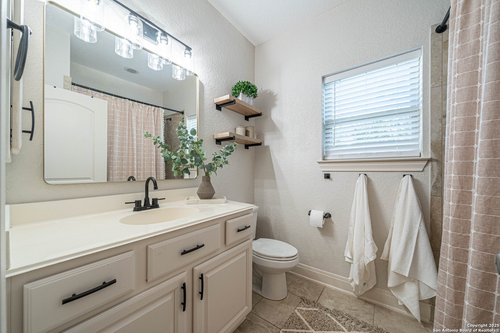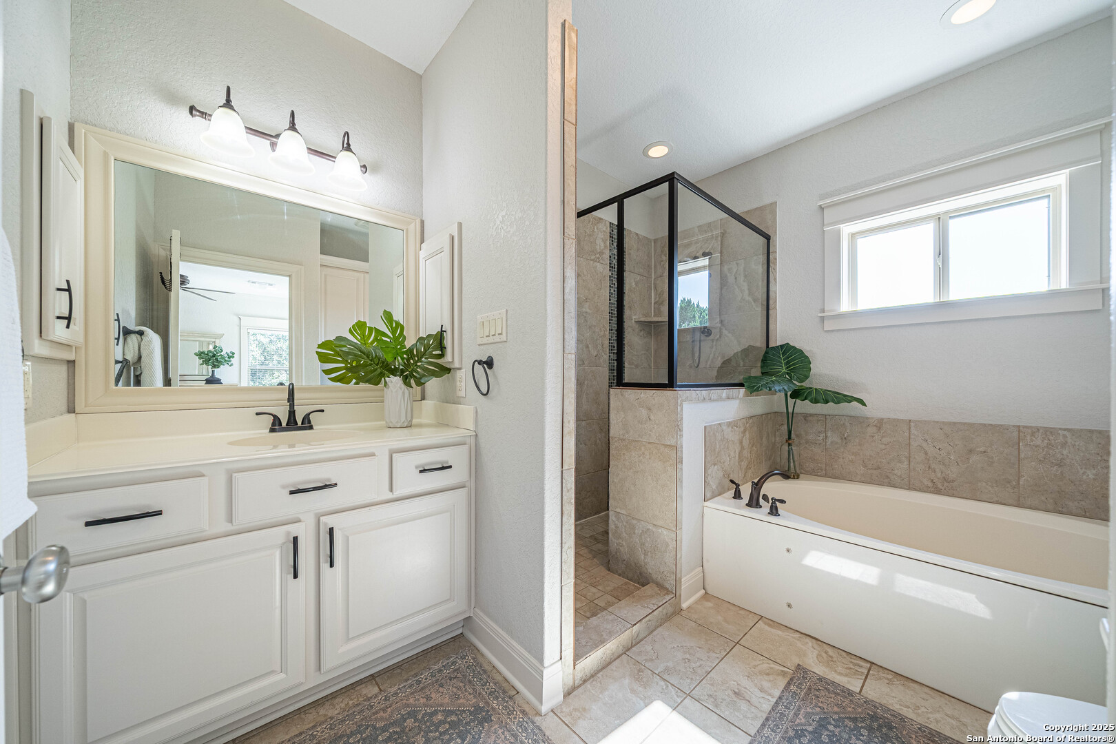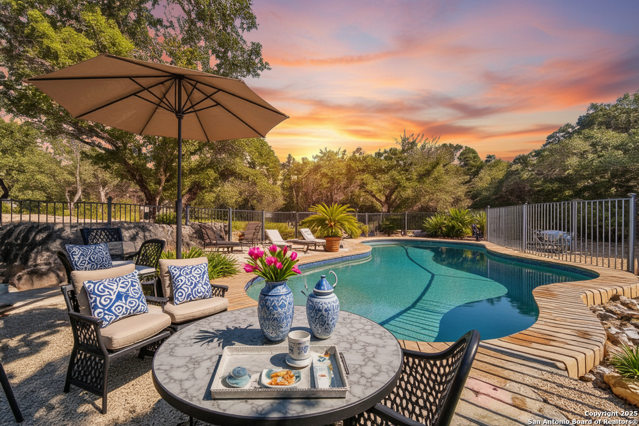 Charming Hill Country Retreat with Pool, No HOA - 11087 Mesquite Flats, Helotes, TX Welcome to this beautifully updated 2,656 sq ft home nestled in a highly desirable Helotes neighborhood-offering luxury, privacy, and no HOA restrictions. This inviting 4-bedroom, 2.5-bath residence features a guest suite on the main floor, a dedicated office, and a spacious game room-providing both function and flexibility for modern living. Step into the heart of the home where you'll find a chef's dream kitchen complete with granite countertops, a large central island, custom cabinets, and plenty of workspace to entertain or prepare meals with ease. Natural light pours through large windows, highlighting the home's fresh finishes and open, airy layout. The primary suite offers a private sanctuary, complete with a spa-like ensuite bathroom featuring a separate walk-in shower, soaking tub, and a generous walk-in closet-perfect for unwinding in comfort and style. Outdoors, you'll be amazed by the lush landscaping, mature trees, and private driveway leading to a detached garage and multiple auxiliary buildings-ideal for storage, hobbies, or workshop use. Relax in the in-ground pool and hot tub, surrounded by a serene, natural setting that feels like a private getaway. Whether you're looking to entertain, work from home, or simply enjoy peace and privacy, this home checks every box. With timeless curb appeal, flexible spaces, and no HOA, this is a rare find in Helotes. Quick access to the Airport, La Cantera Mall and major employment hubs.