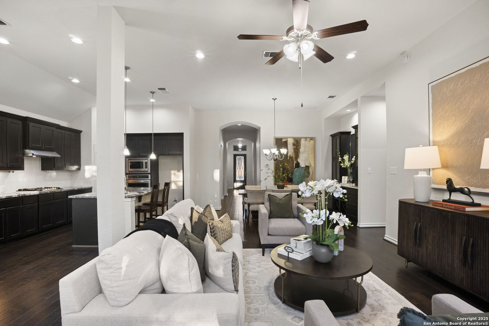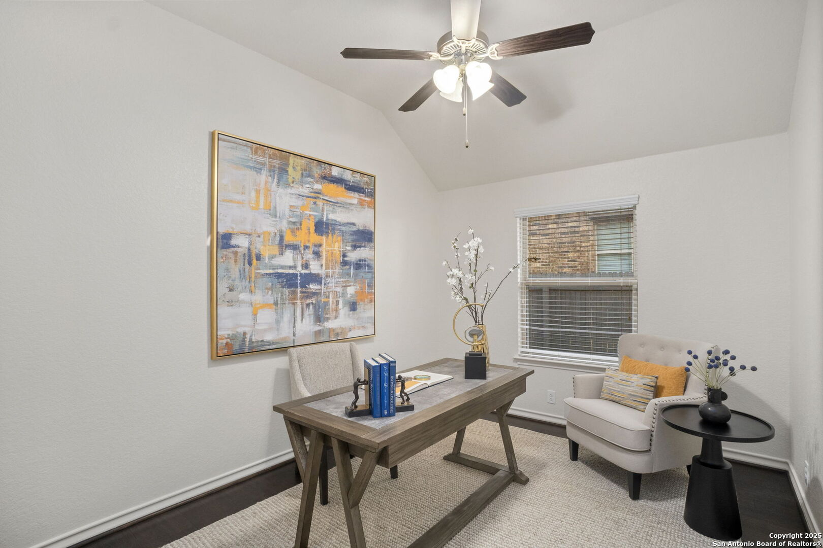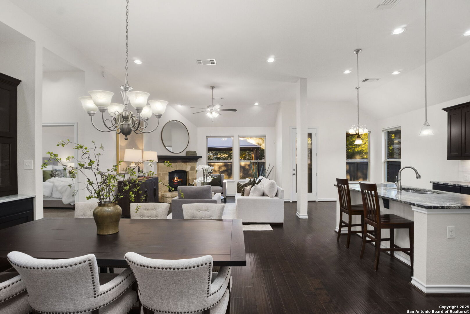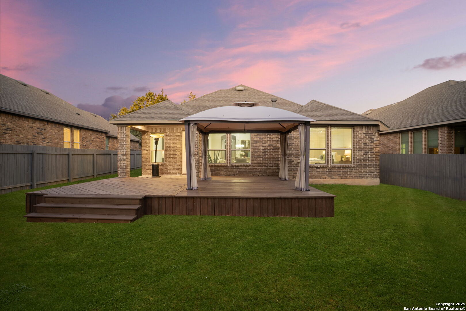 Move-in ready and located in the gated community of Ranches at Creekside, this beautifully maintained 4-bedroom, 3-bathroom home offers 2,442 square feet of thoughtfully designed living space. The open-concept floor plan features a spacious living room with a cozy fireplace, a dedicated office, and a formal dining room with custom built-in cabinetry and buffet. The updated kitchen is a chef's dream with gas cooking, stylish finishes, and seamless flow into the main living area-perfect for entertaining family and friends. The master suite provides a peaceful retreat with a spa-inspired bathroom that includes double vanities, a makeup counter, a soaking tub, and a separate shower. Enjoy outdoor living on the covered patio and expansive deck with a shaded sitting area, ideal for relaxing or hosting gatherings. Freshly painted with professionally cleaned carpets, this home is truly move-in ready. Residents of Ranches at Creekside enjoy exclusive access to a community pool, playground, and a welcoming neighborhood atmosphere. Conveniently located just minutes from downtown Boerne, this property offers easy access to top-rated Boerne ISD schools, local shopping, dining, and all the charm of the Texas Hill Country.
