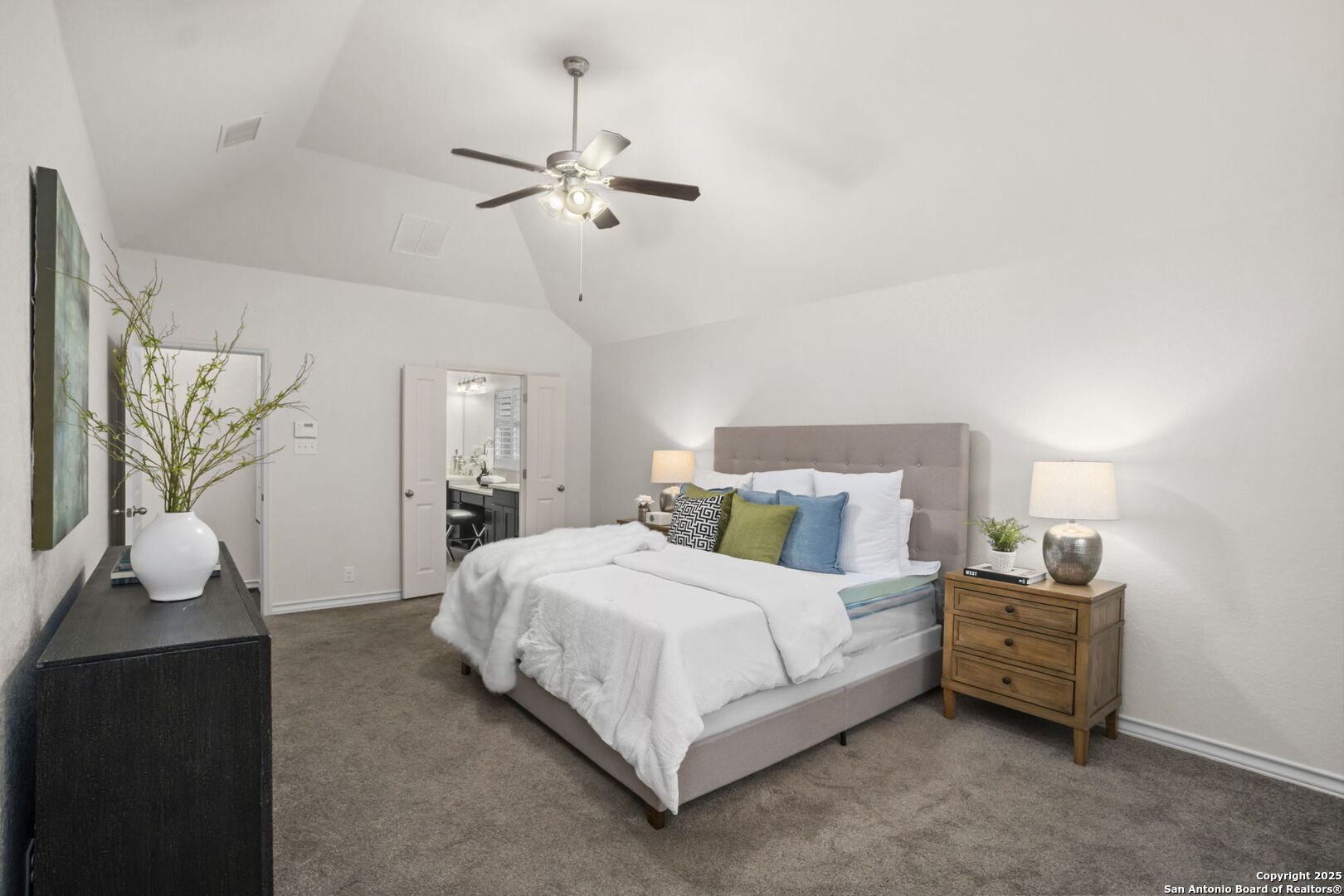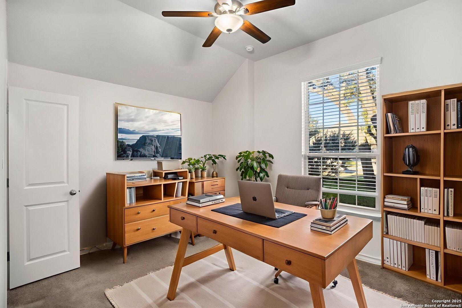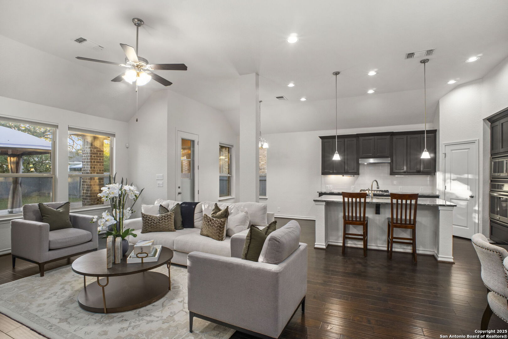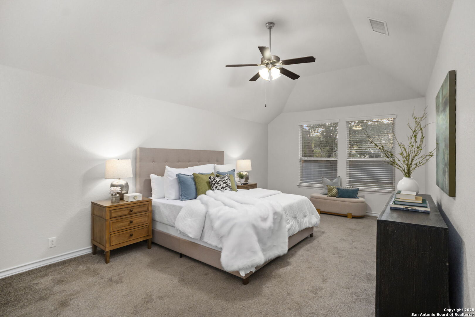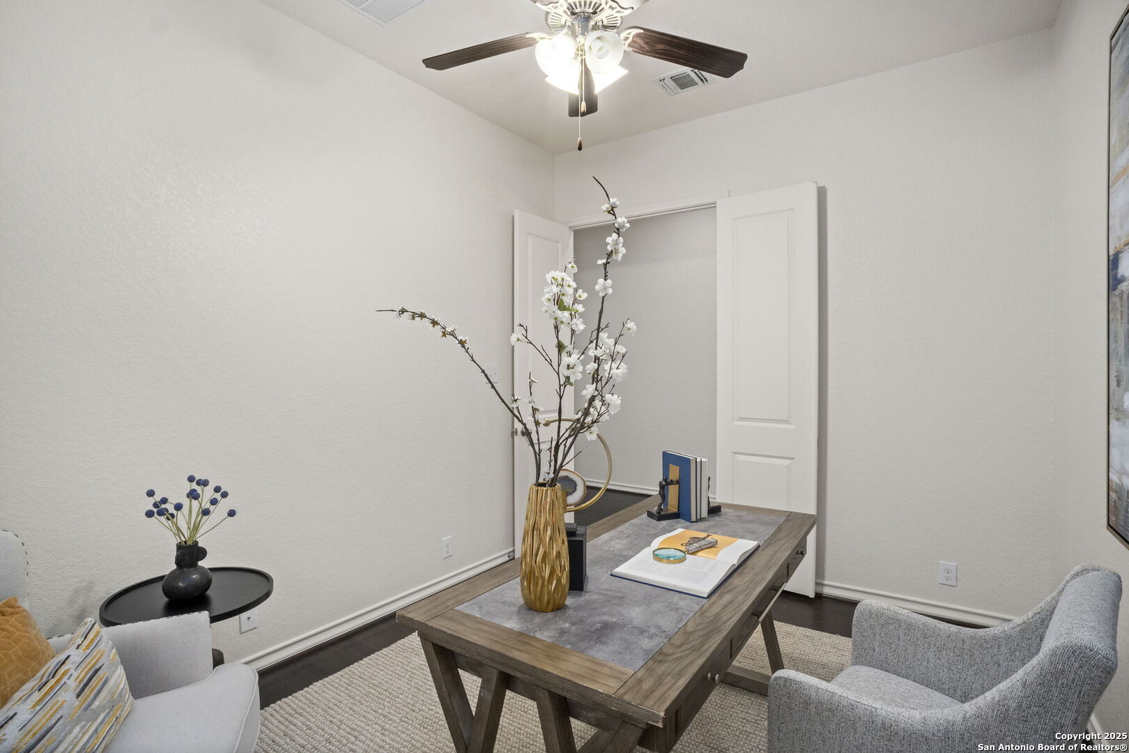 Move-in ready and located in the gated community of Ranches at Creekside, this beautifully maintained 4-bedroom, 3-bathroom home offers 2,442 square feet of thoughtfully designed living space. The open-concept floor plan features a spacious living room with a cozy fireplace, a dedicated office, and a formal dining room with custom built-in cabinetry and buffet. The updated kitchen is a chef's dream with gas cooking, stylish finishes, and seamless flow into the main living area-perfect for entertaining family and friends. The master suite provides a peaceful retreat with a spa-inspired bathroom that includes double vanities, a makeup counter, a soaking tub, and a separate shower. Enjoy outdoor living on the covered patio and expansive deck with a shaded sitting area, ideal for relaxing or hosting gatherings. Freshly painted with professionally cleaned carpets, this home is truly move-in ready. Residents of Ranches at Creekside enjoy exclusive access to a community pool, playground, and a welcoming neighborhood atmosphere. Conveniently located just minutes from downtown Boerne, this property offers easy access to top-rated Boerne ISD schools, local shopping, dining, and all the charm of the Texas Hill Country.