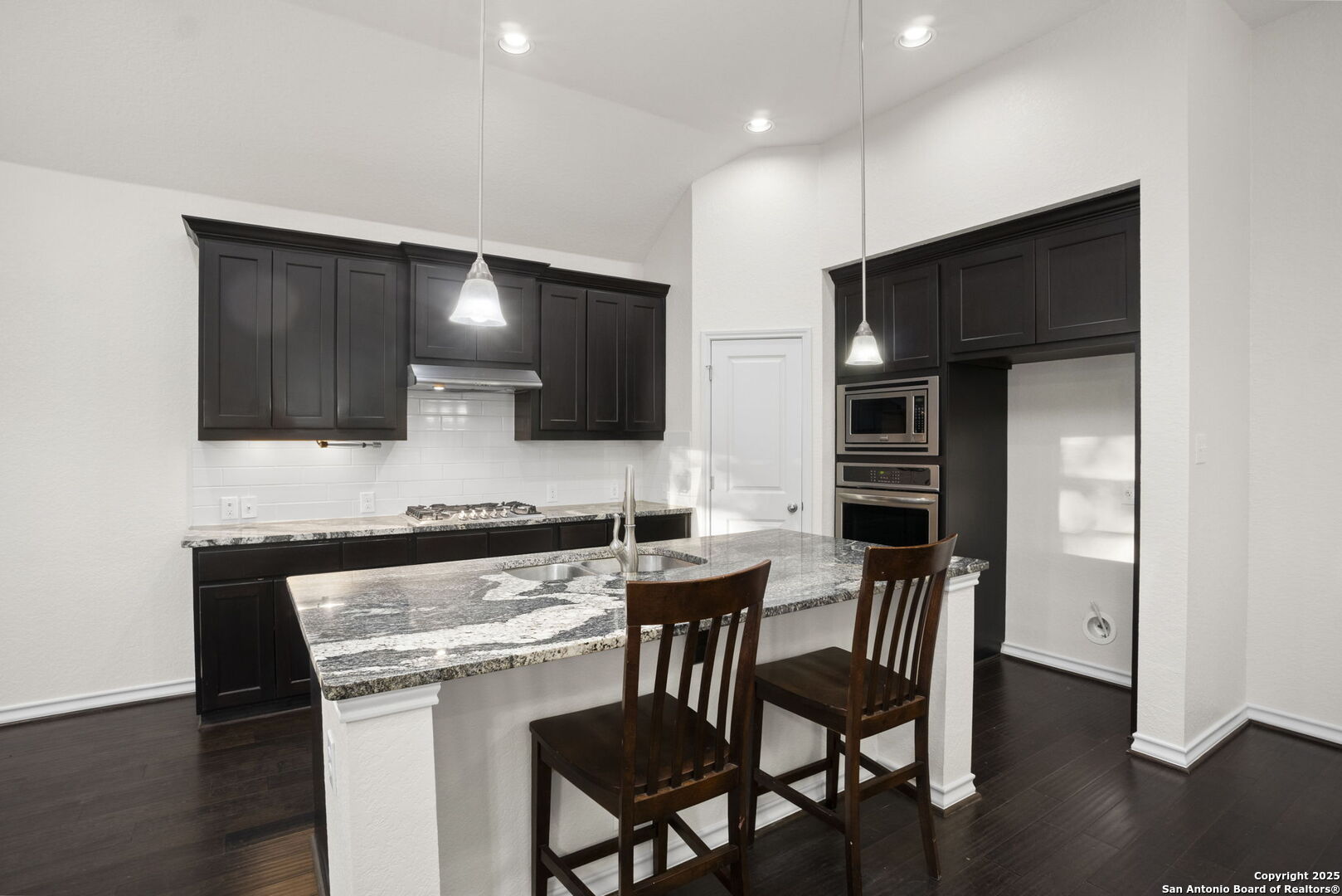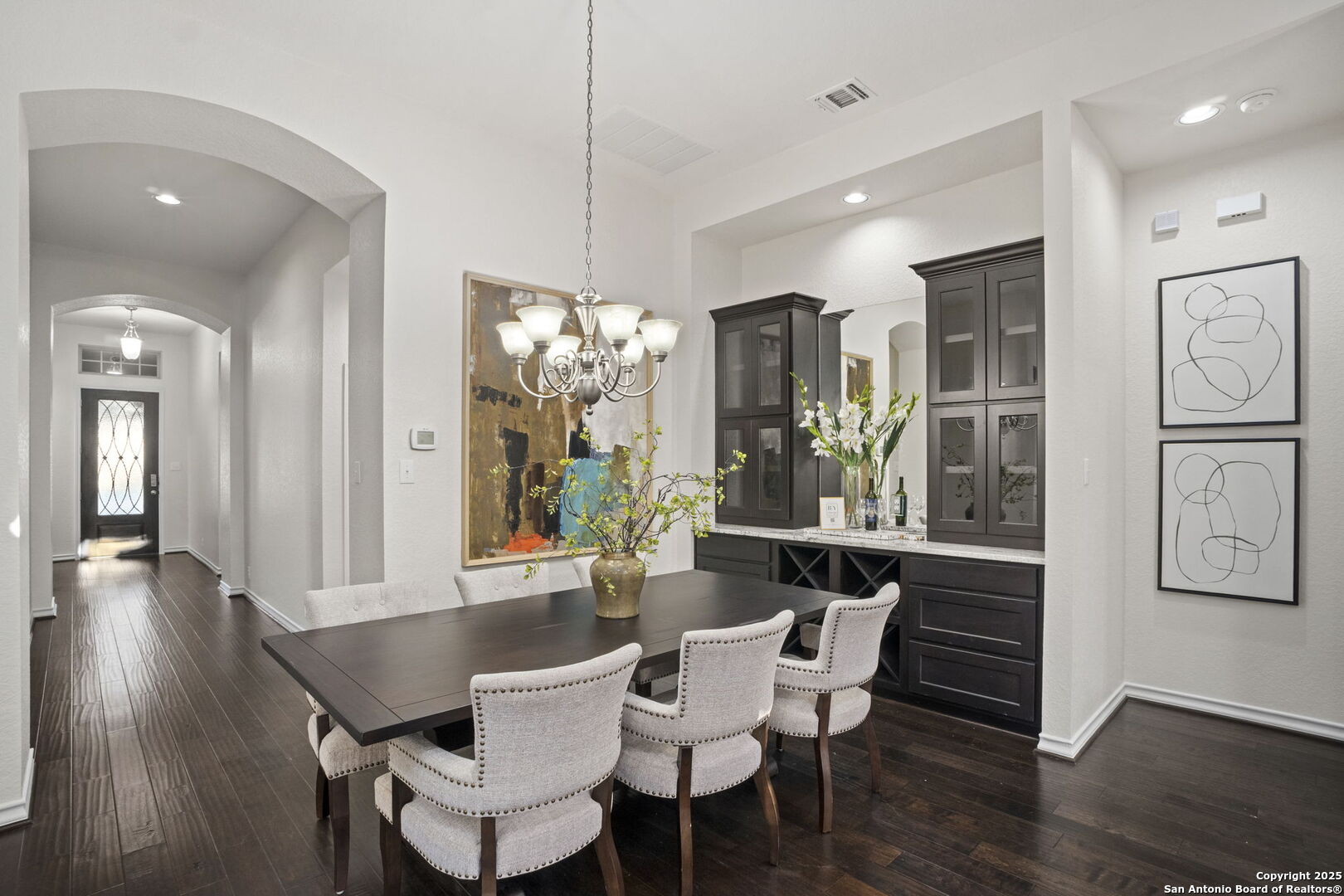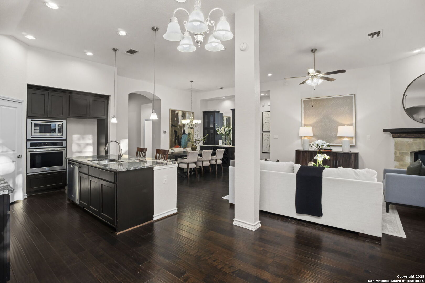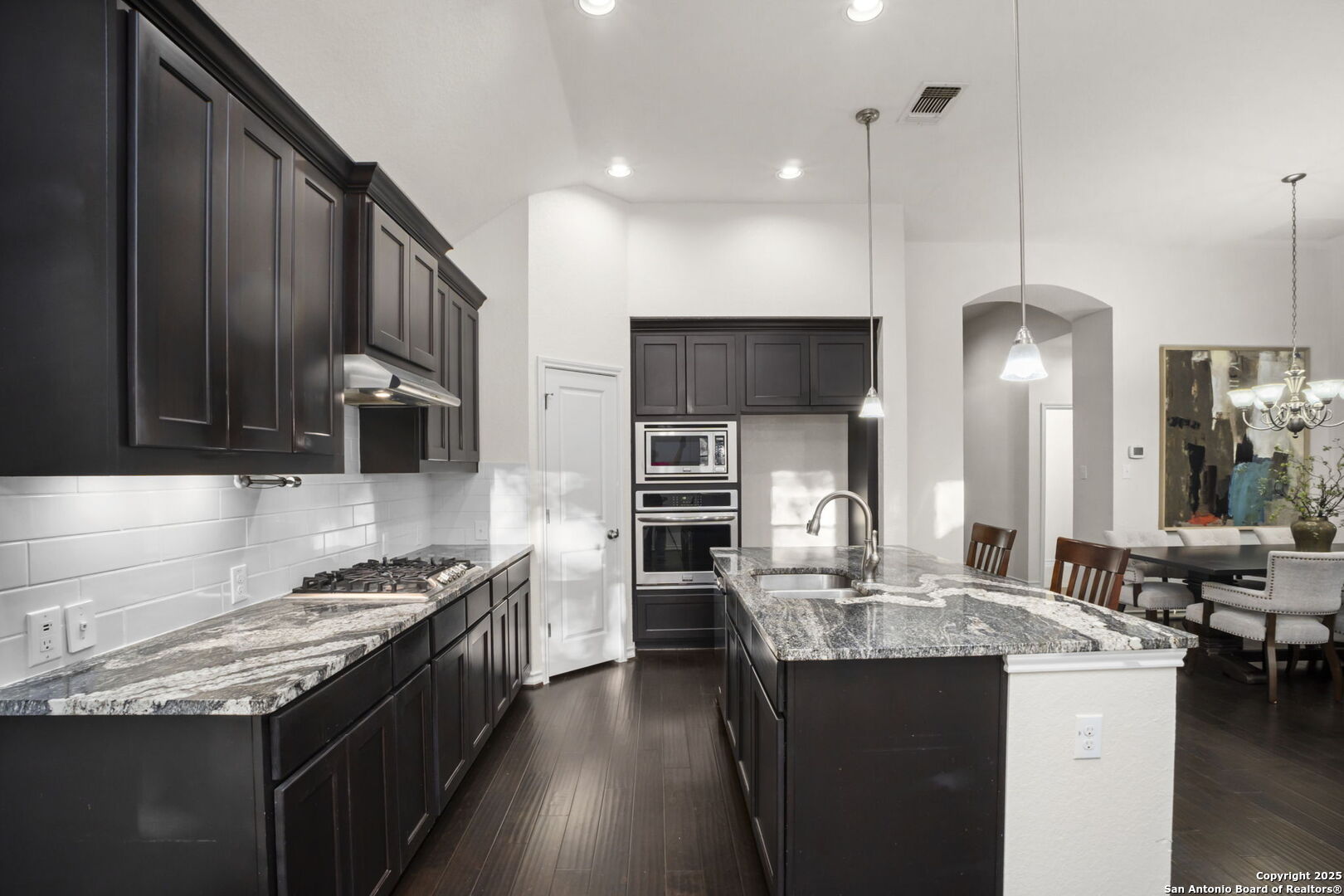 Move-in ready and located in the gated community of Ranches at Creekside, this beautifully maintained 4-bedroom, 3-bathroom home offers 2,442 square feet of thoughtfully designed living space. The open-concept floor plan features a spacious living room with a cozy fireplace, a dedicated office, and a formal dining room with custom built-in cabinetry and buffet. The updated kitchen is a chef's dream with gas cooking, stylish finishes, and seamless flow into the main living area-perfect for entertaining family and friends. The master suite provides a peaceful retreat with a spa-inspired bathroom that includes double vanities, a makeup counter, a soaking tub, and a separate shower. Enjoy outdoor living on the covered patio and expansive deck with a shaded sitting area, ideal for relaxing or hosting gatherings. Freshly painted with professionally cleaned carpets, this home is truly move-in ready. Residents of Ranches at Creekside enjoy exclusive access to a community pool, playground, and a welcoming neighborhood atmosphere. Conveniently located just minutes from downtown Boerne, this property offers easy access to top-rated Boerne ISD schools, local shopping, dining, and all the charm of the Texas Hill Country.