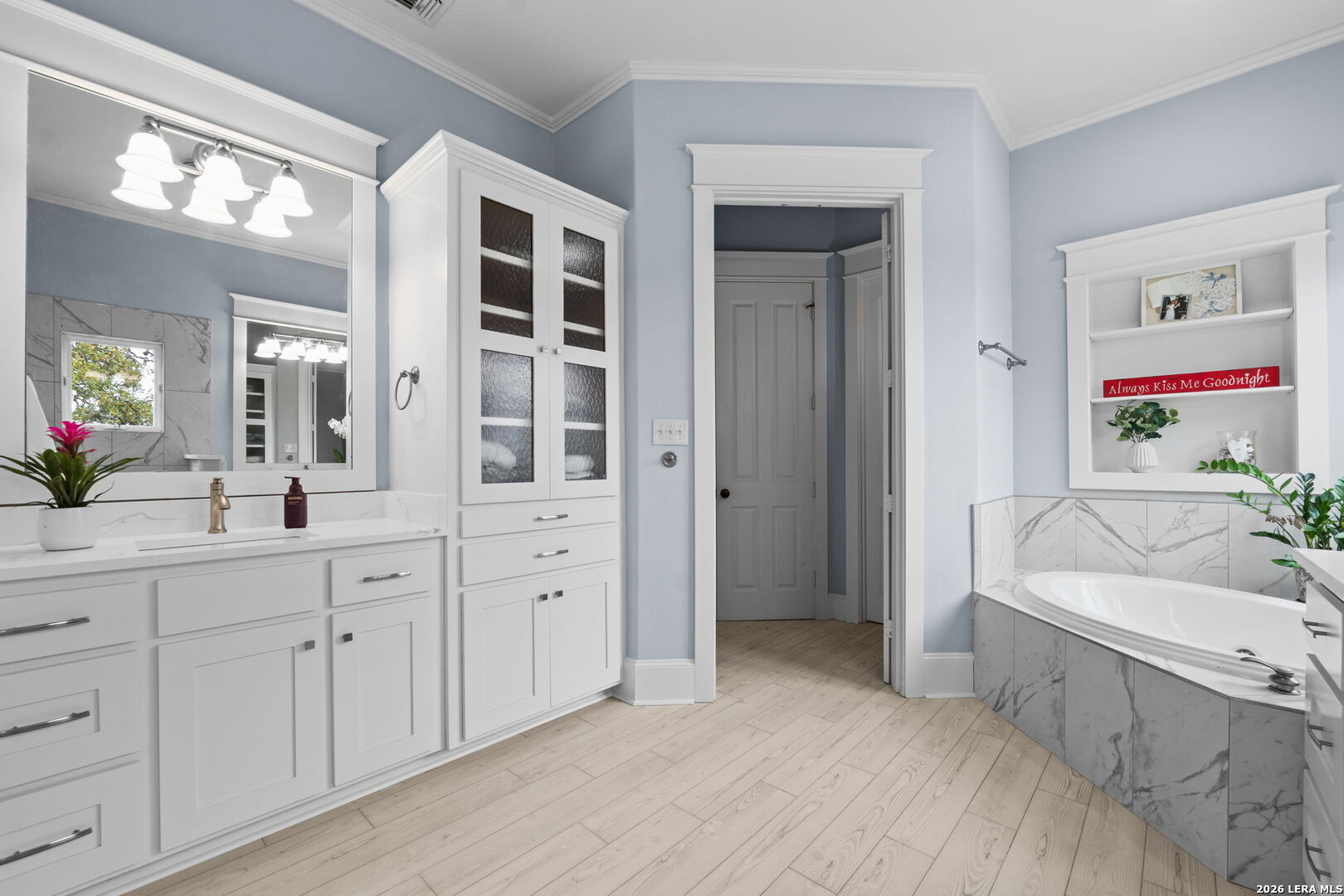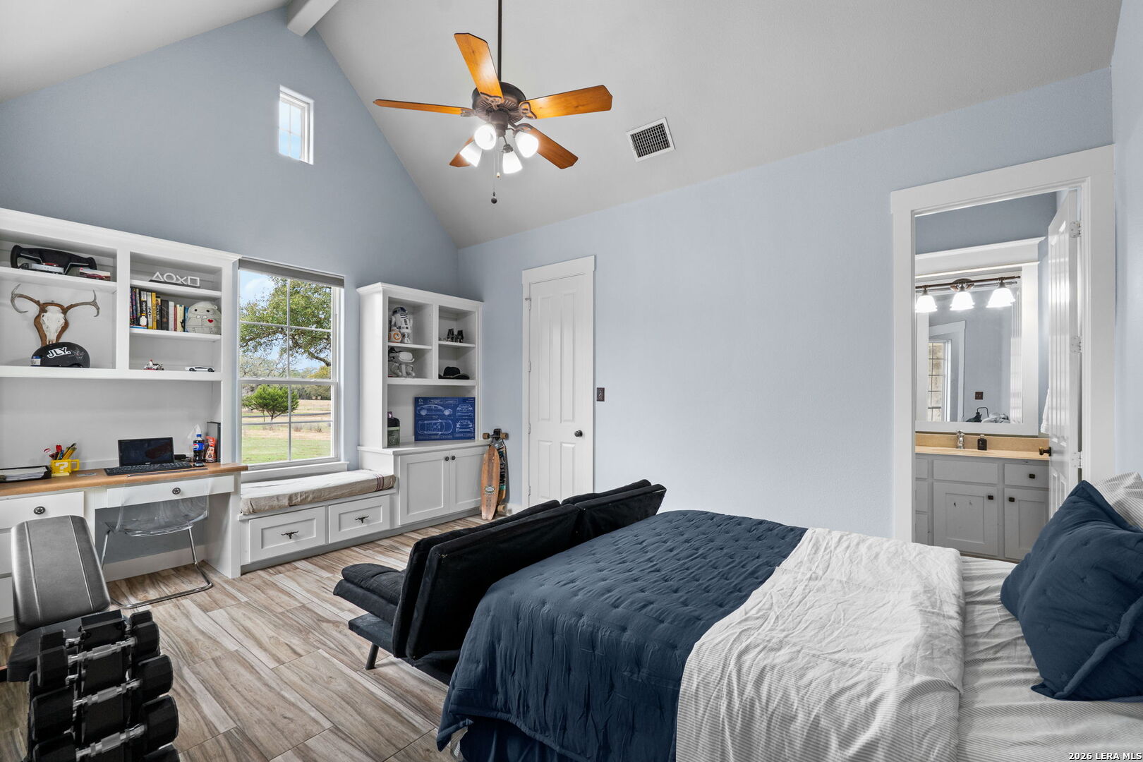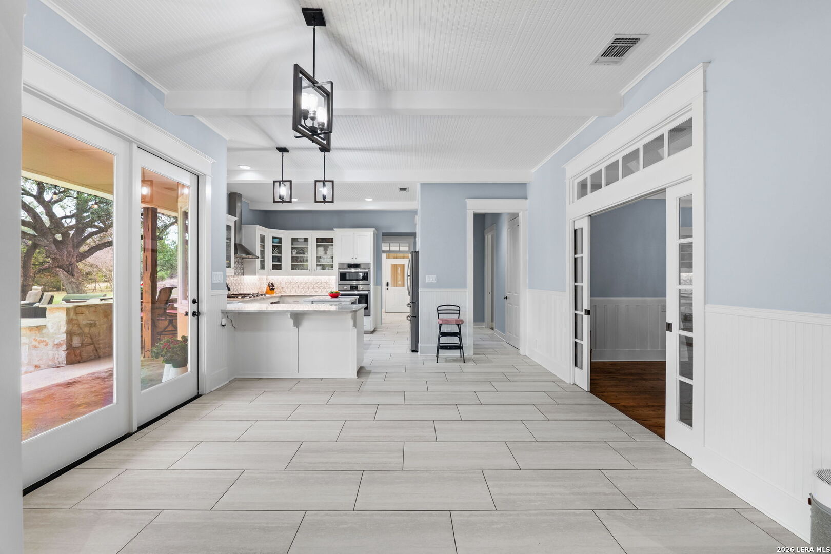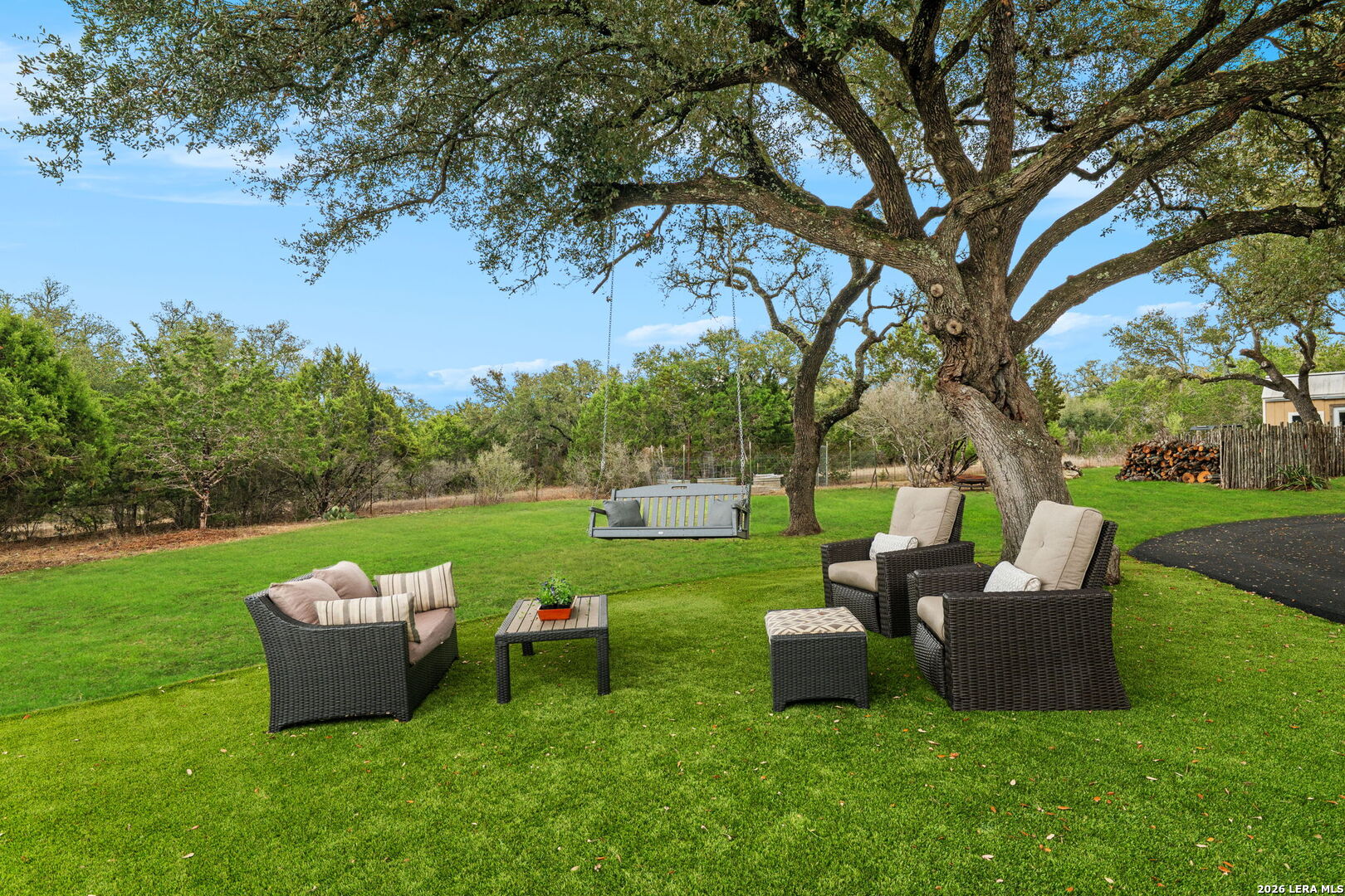 Light filled Texas Hill Country home offers period details in design built by noted designer/builder Israel Pena of Authentic Custom Homes. Situated on a beautiful landscaped lot in popular Cordillera Ranch, the home is set way back from the street and accessed by a meandering freshly paved drive behind an automatic gate. This Single story home features quality hallmark details...heavy woodwork, cased windows and headers, transoms, real wood floors & custom cabinetry. The Kitchen is a chef/entertainer's delight...with fresh interiors including quartz counters, double ovens, center island plus an amazing Butlers Pantry and Mud Room. Entry to the kitchen through the Porte Cochere' makes unloading groceries so easy. The Main Entry hall makes a statement and opens to large Flex Room and private Study/office with built-ins and closet. The formal dining is also spacious and opens to the breakfast and kitchen area. The main home offers 4 bedrooms all with ensuite bathrooms; primary offers outside access, dual closets, and a freshly reimagined bath with dual sinks and closets; a secondary suite can function as an in-law suite with outside access, ensuite, and separated living/bedroom space; while 2 secondary bedroom suites are well sized and feature custom built-in cabinetry with window seats, shelves and desk. The garage apartment is perfect for studio space or guest with the full bath and coffee bar area. Outside entertaining is so easy here with the expansive covered porch overlooking the pool and BBQ area. The BBQ area is a built for gatherings and entertaining with the Argentinian Gaucho grill, Green Egg and space for gas grill. The property is fenced with long range views and offers fruit trees and room for gardening and play.
