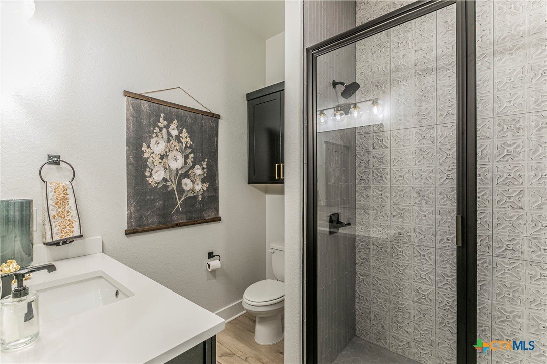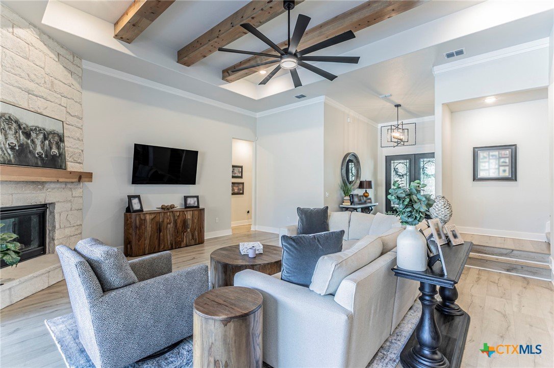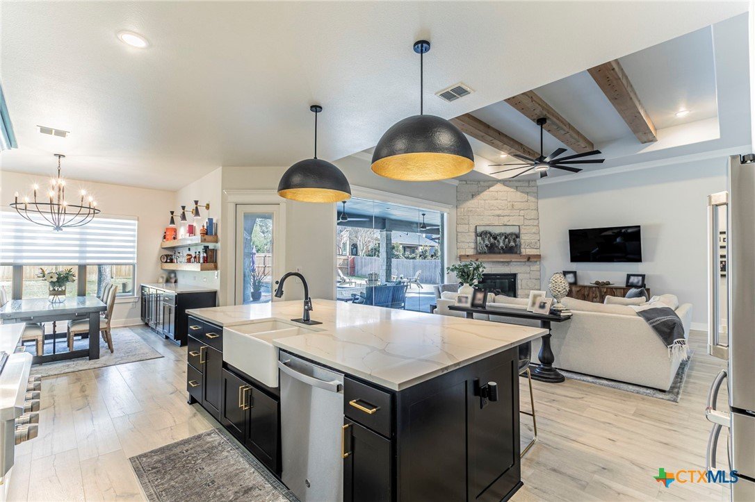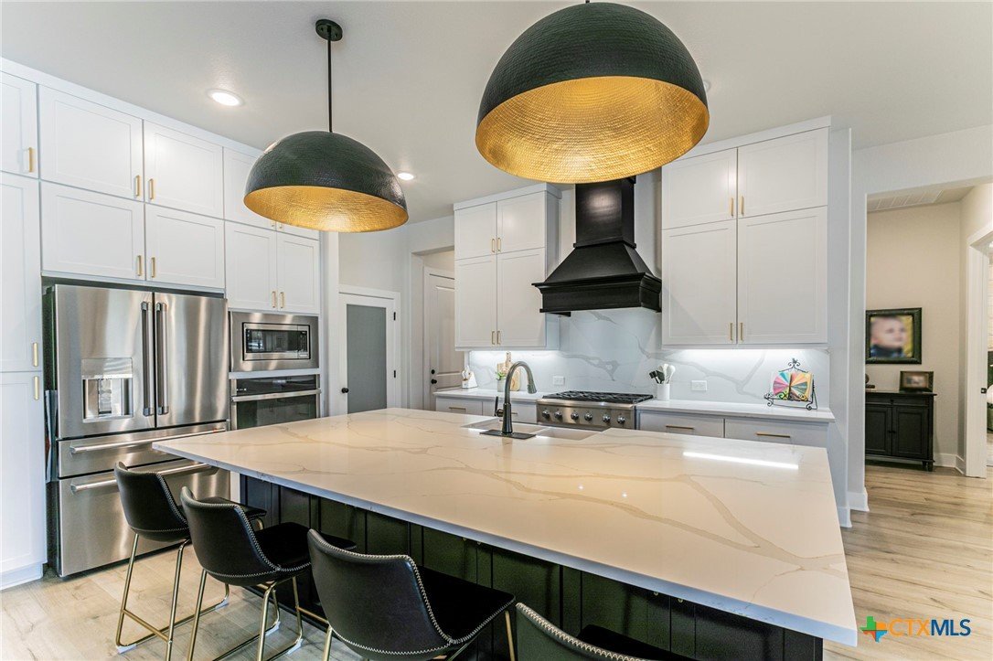 This beautiful custom 4-bedroom, 4-bath home has all the space and features you’ve been looking for. With an open floor plan, it feels bright, welcoming, and perfect for both everyday living and entertaining. The kitchen is a standout with custom cabinets, walk-in pantry, a huge quartz island, and WiFi-enabled appliances—including a gas range, built-in oven, and microwave. The dining area includes a full wall bar space with wine and drink refrigerators. There’s also a dedicated study and upstairs game room or 5th bedroom. You’ll love the wood floors throughout, backed by a lifetime warranty against scratches and breaks—perfect for pets and active families. The primary suite is designed with convenience in mind, offering direct access to the laundry room and working pantry. The oversized 3 car garage allows for heavy duty pick-ups. Step outside and enjoy your own private retreat—a wooded lot in a gated community near Lake Belton, complete with a heated pool with waterfall, and champagne hot tub. It’s a great mix of comfort, style, and location—definitely one to see in person!