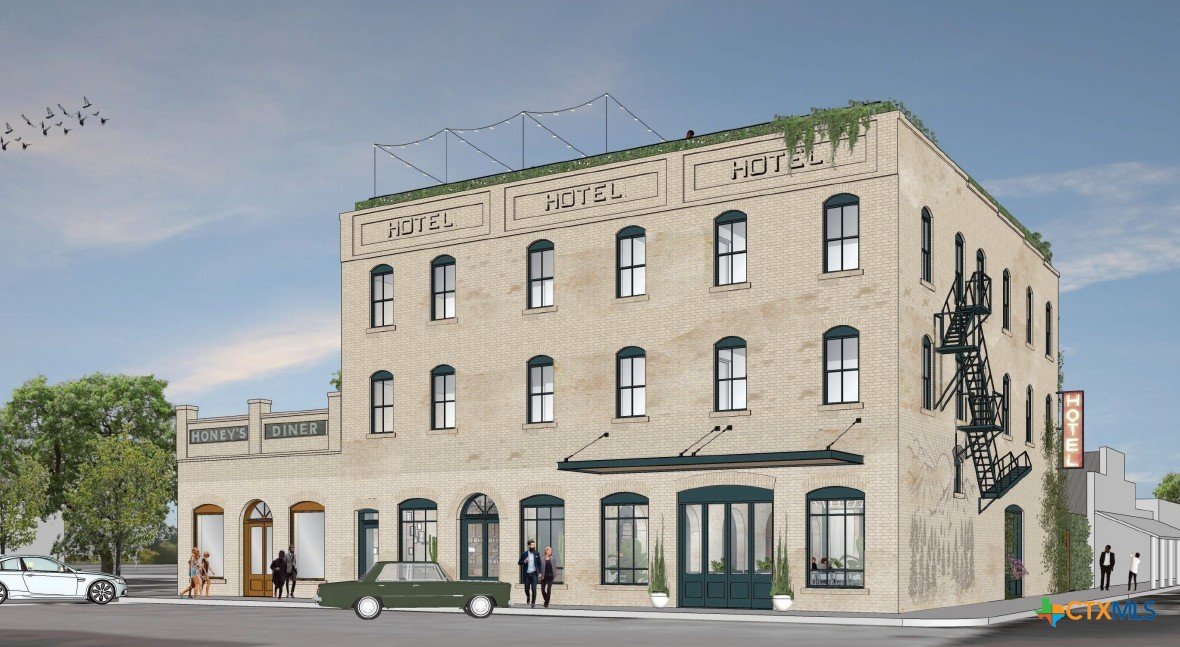 The Pines Hotel is ZONED Central Business District (CBD) and located within the Commercial Historic District. Two sets of Development Plans convey with sale. The first set of plans is for 7 apartments on the top two floors, a rooftop garden and retail on the first floor. The second set of plans is for an event venue with lodging on the top two floors and a rooftop garden. These plans have NOT gone through the CoS required Third Party Review for permitting. NOTE: Honey's Diner, which is the adjoining building, is also available for sale-see MLS number 602455. Now for a bit of History on the Pines Hotel: The historic Pines Hotel building was built in 1910 by the Hill family to accommodate railroad workers and traveling salesmen. The hotel closed in 1968 and the building is no longer an operating hotel, though it has been used for other purposes. Construction and Early Use: The three-story, 10,800-square-foot building was constructed in 1910 and included a 16-car garage on the first floor. It served as a popular hangout for Katy Railroad men for many years. Notable Mentions: The single-story cafe on the west side of the building, where Dan Rather once spoke to the Lions Club in 1967, was used as "Honey's Diner" in the movie Hope Floats.