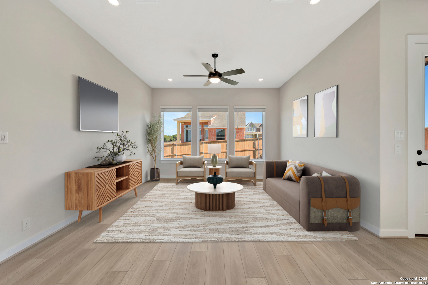 This beautifully designed open-concept floor plan offers the perfect balance of style and functionality. The spacious living room flows seamlessly into the kitchen and dining area, creating an ideal setting for both everyday living and entertaining. The kitchen features modern appliances and ample counter space, while the dining area is perfect for family gatherings. In addition to the main living areas, this home includes a private office, ideal for working from home or enjoying a quiet retreat. The Owner's Retreat offers a luxurious escape with a large walk-in closet for abundant storage. Two additional bedrooms and well-appointed baths complete the design, making this home perfectly suited for modern living.