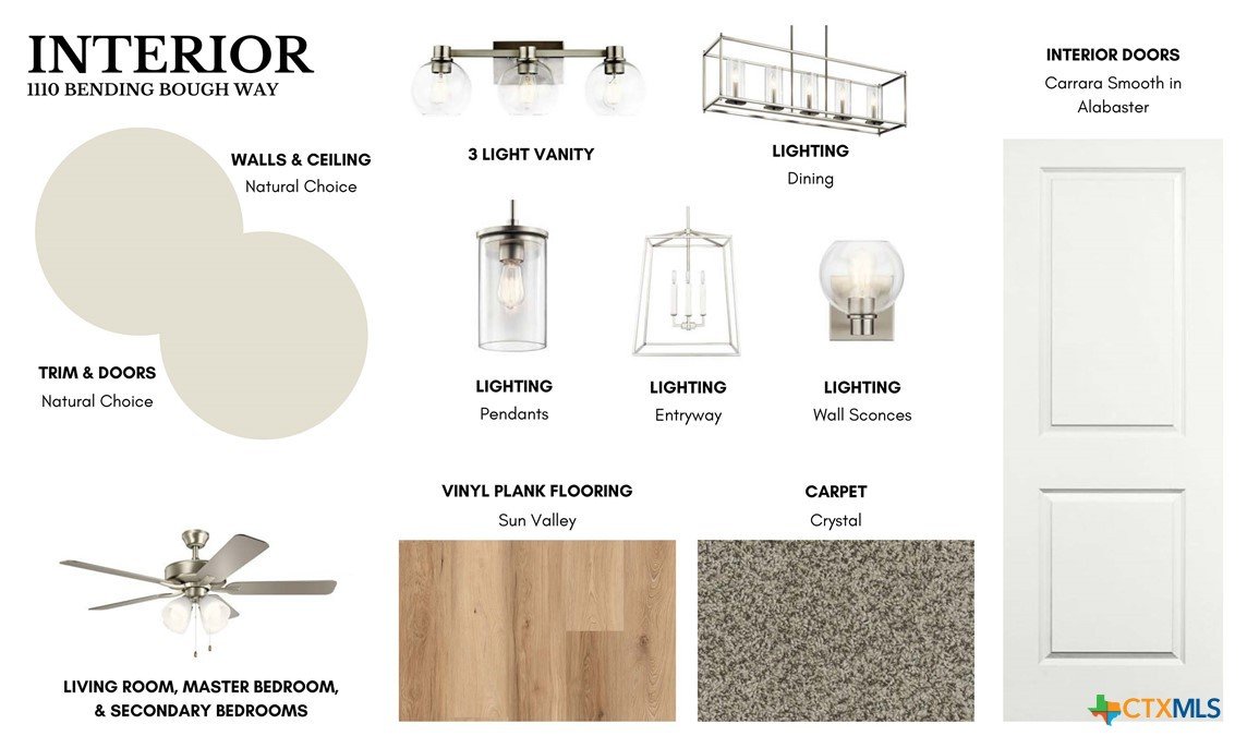 Check out the Sabine plan if you're looking for a two-story home. All secondary bedrooms in this plan are on the second story. The Sabine features a four-bedroom, two-and-a-half-bathroom layout across 2,312 square feet. This plan features an open-concept family room, kitchen, and dining area. The kitchen includes stainless steel appliances with a large island and walk-in pantry, while the primary suite has a private water closet, dual vanity sinks, and a spacious closet. All bedrooms on the second story have expansive walk-in closets, perfect for large families. This plan also has a two-car garage. Plan variations include the choice of a dining room or study off the entryway, a walk-in shower or separate tub and shower in the primary bath, and an outdoor fireplace.