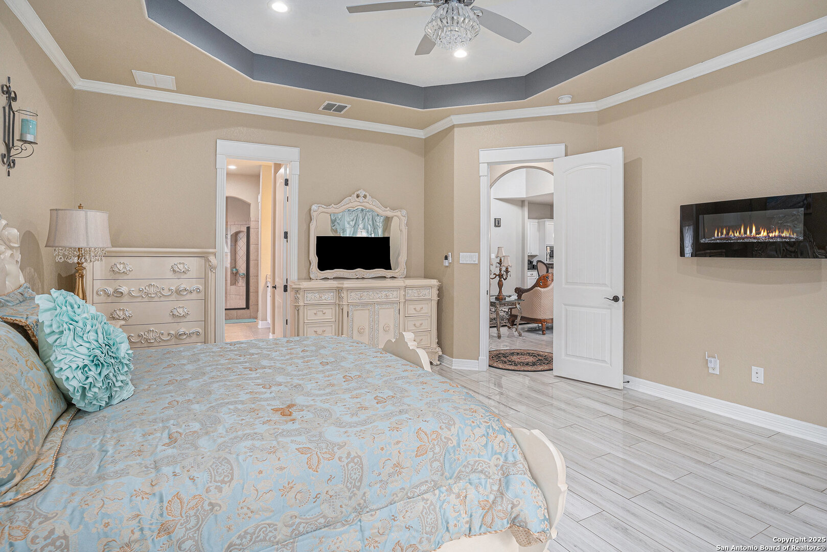 VA ASSUMABLE LOAN AT 2.75%!!! Welcome to this beautifully maintained home that perfectly blends space, style, and comfort! Featuring 4 spacious bedrooms, 3 full baths, and a lot of living space, with a bridge overlooking into living room & grand foyer. This two-story gem showcases pride of ownership from the moment you walk in. Step inside to find soaring ceilings, abundant natural light, and an open-concept layout ideal for both everyday living and entertaining. The gourmet kitchen boasts granite countertops, ample cabinetry, stainless steel appliances, and a large island that opens seamlessly to the Living room. The primary suite with tray ceilings offers a serene retreat with a luxurious ensuite bath featuring a soaking tub, separate shower, and separate vanities. A secondary bedroom and full bath downstairs provide flexibility for guests or a home office. Upstairs, enjoy a spacious game room/family room, and additional loft space-perfect for movie nights or a play area. The exterior is just as impressive, with a well-manicured yard, covered patio, and charming curb appeal that make this home truly stand out. Built in 2015 and meticulously cared for, this home feels brand new and move-in ready. Don't miss your chance to own this exceptional property that offers both elegance and functionality-schedule your private tour today!