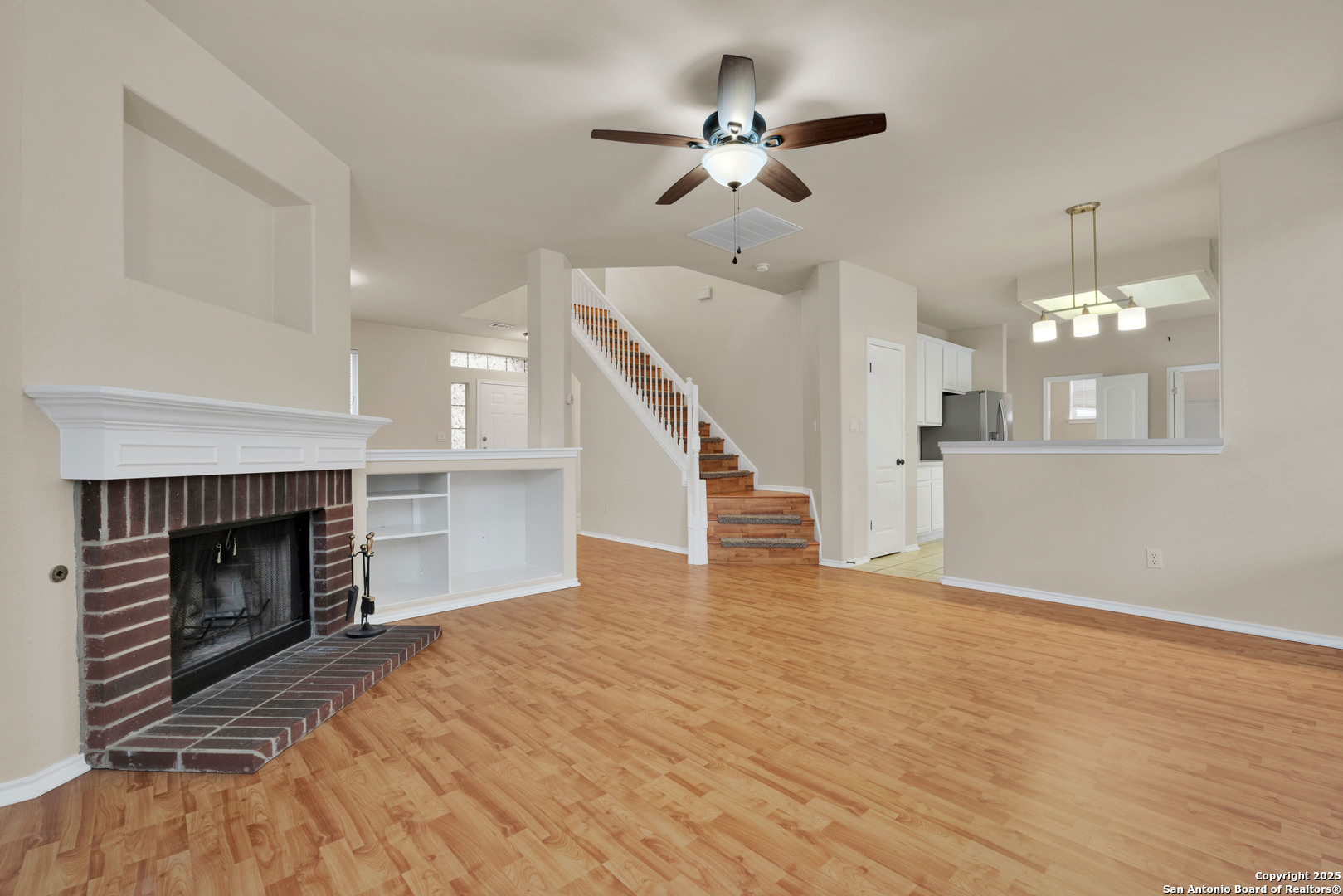 Welcome home! Immaculate 3BR/ 2.5 BA family home in the sought-after Woodridge subdivision. This gem features high ceilings, cozy fireplace, art niches. Large Primary BR offers an extra sitting space. Double vanity, large garden tub with separate shower in Primary BA. Check out the park-like backyard perfect for morning coffee and BBQ. Conveniently located near UTSA, Medical center & La Cantera. Community includes a pool, party canopy, tennis and basketball court, as well as playgrounds