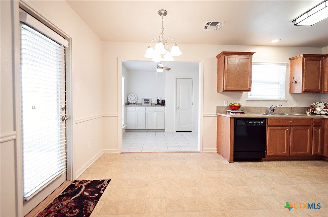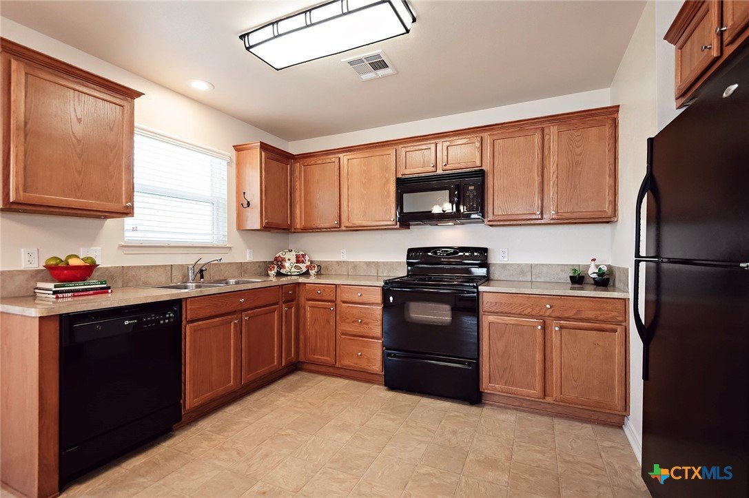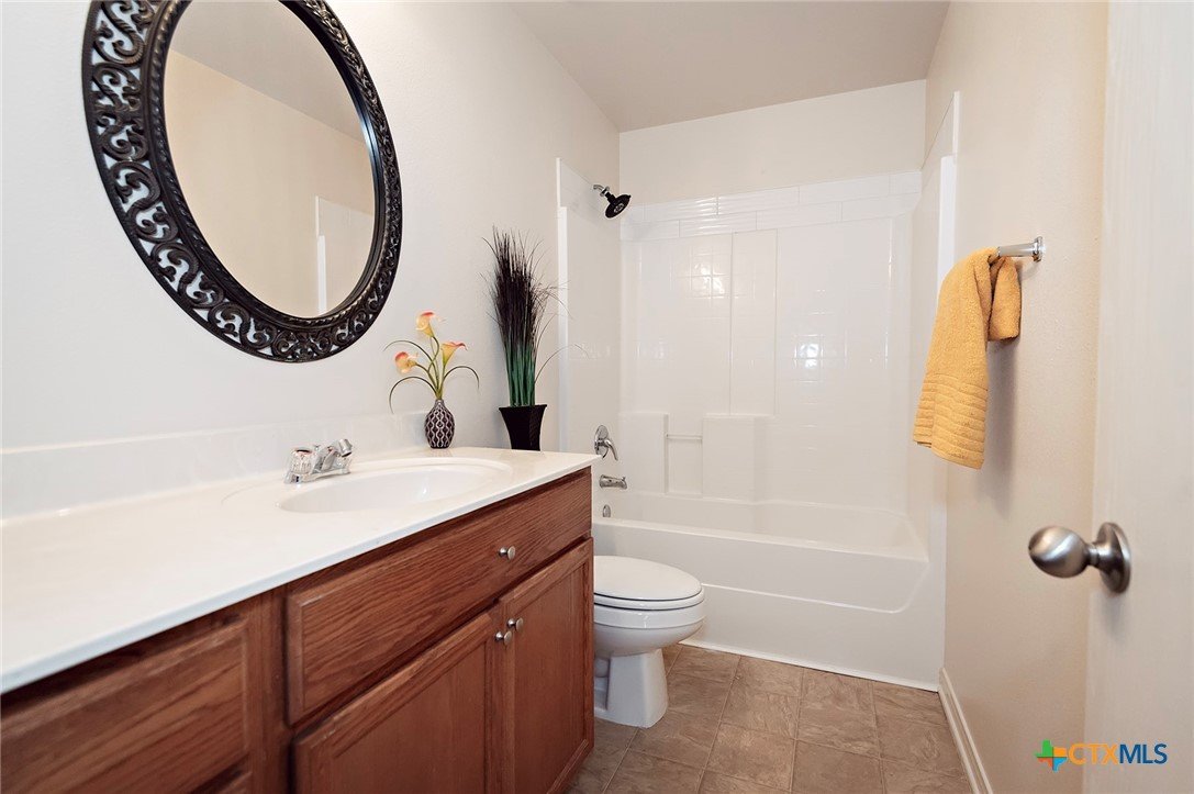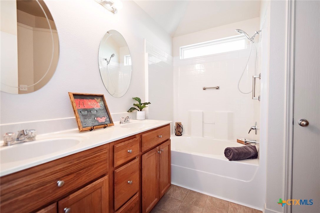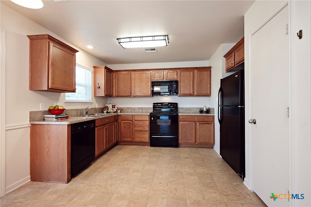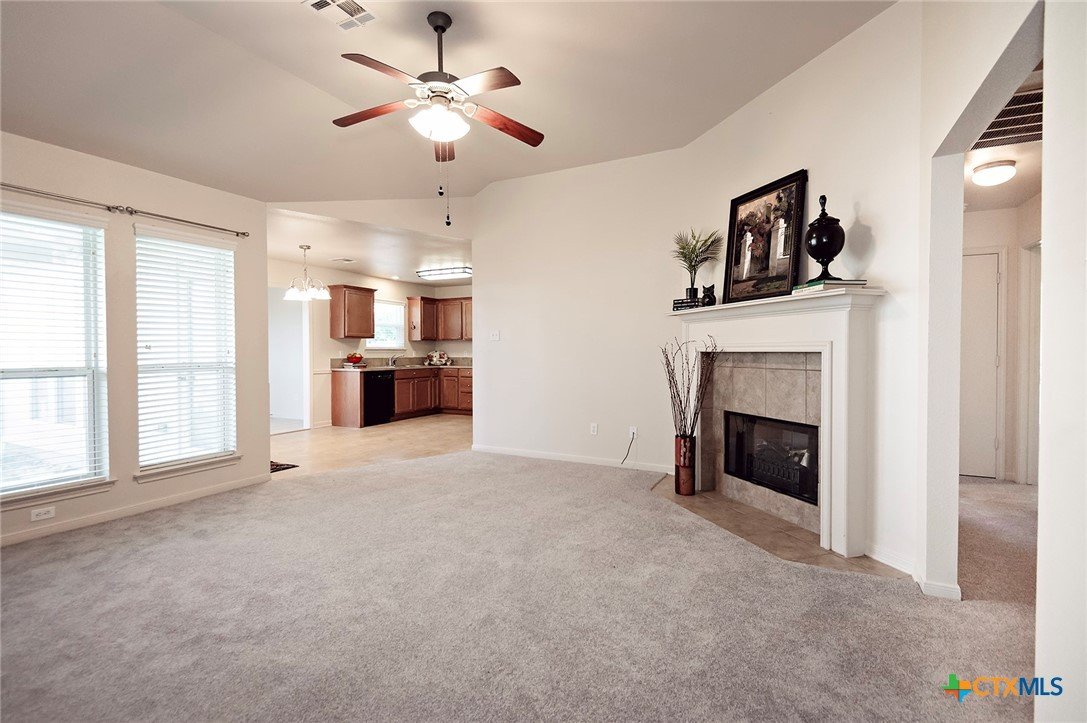 Charming and move-in ready, this 4-bedroom, 2-bath home with a 2-car garage offers 1,541 square feet of comfortable living space in a great neighborhood with convenient access to IH-35. Perfect for first-time buyers or those looking to downsize, this home features a smart layout with maximized living spaces and an additional kickout area ideal for extra dining, a home office, crafting space, or cozy sitting area. Fresh interior and exterior paint, along with all newly installed carpeting, give the home a clean and updated feel. The spacious primary suite includes a private bath with double sinks and a relaxing garden tub. Step outside to enjoy the large covered patio and fenced backyard, complete with a storage building for added convenience. A wonderful opportunity to own a versatile and well-maintained home in a prime location!