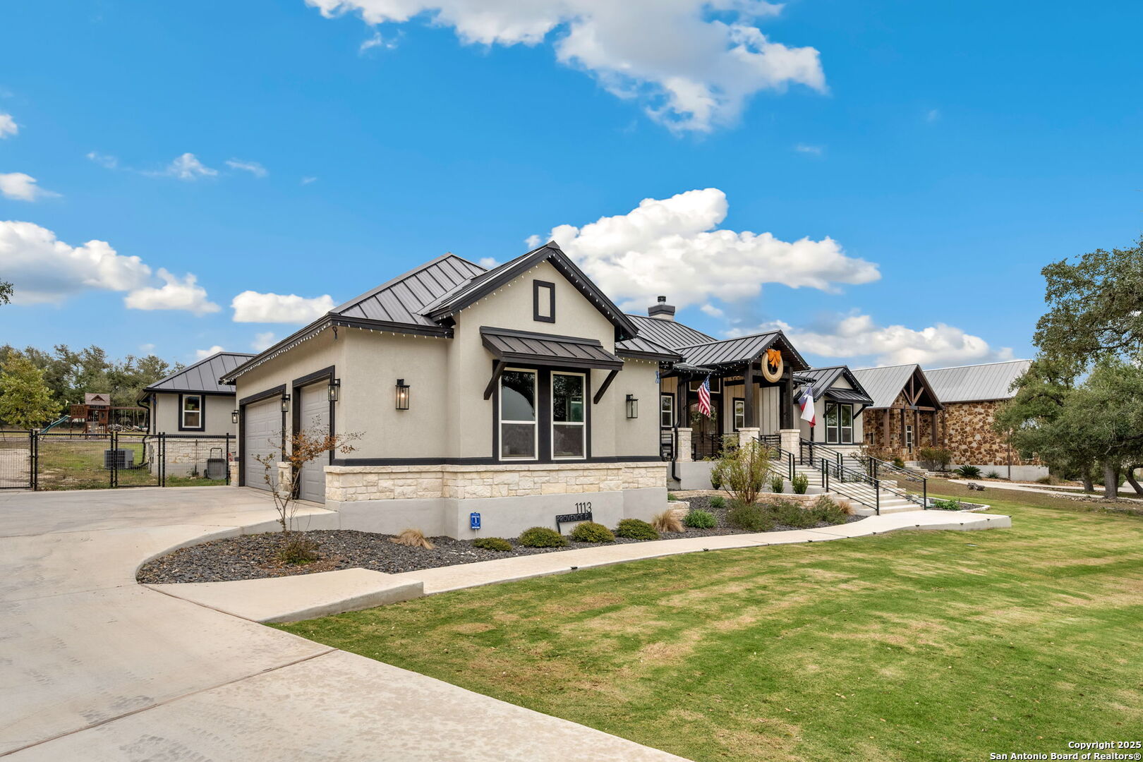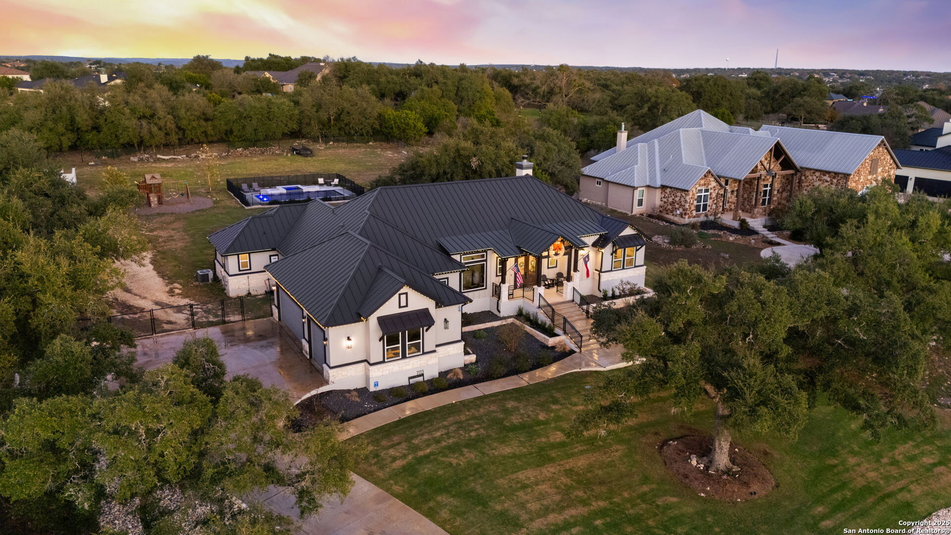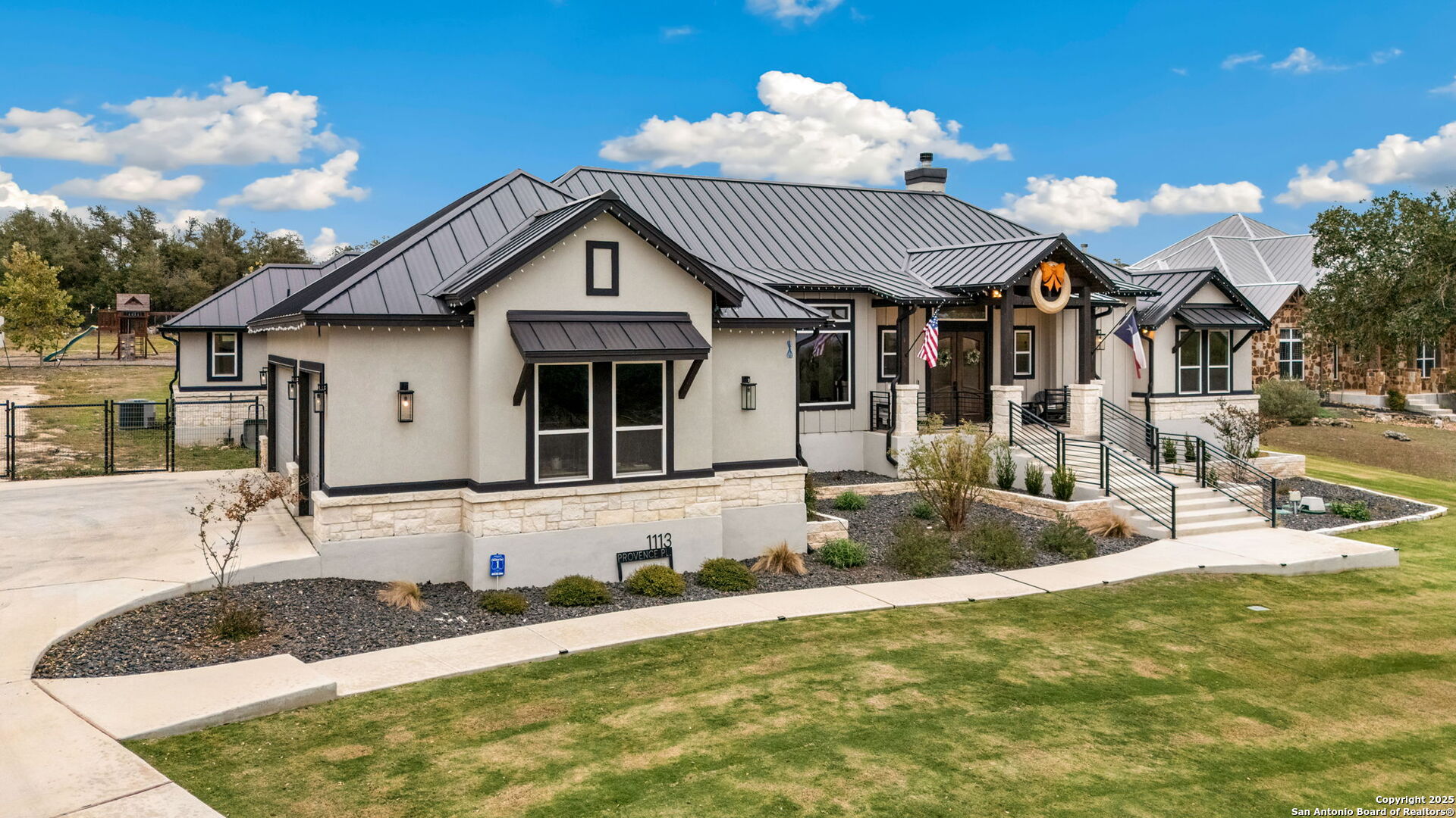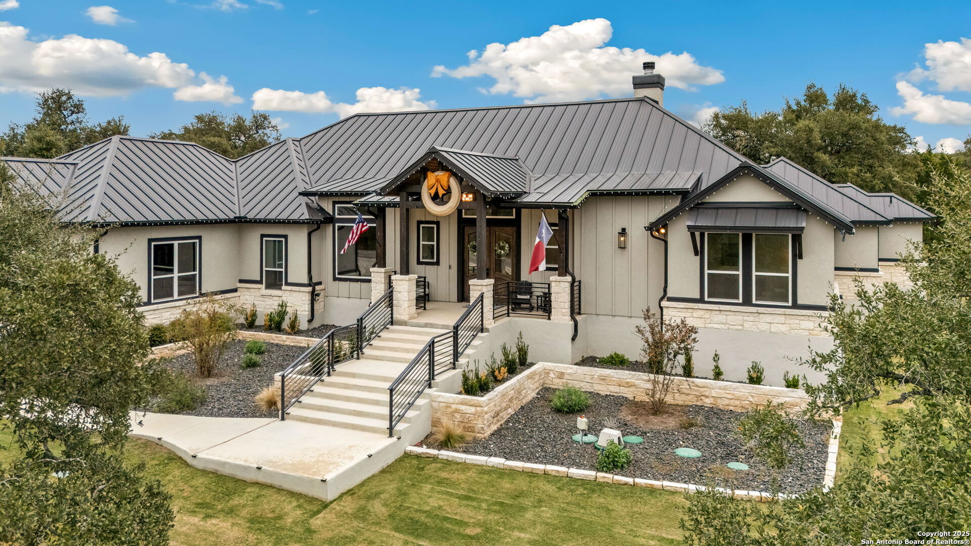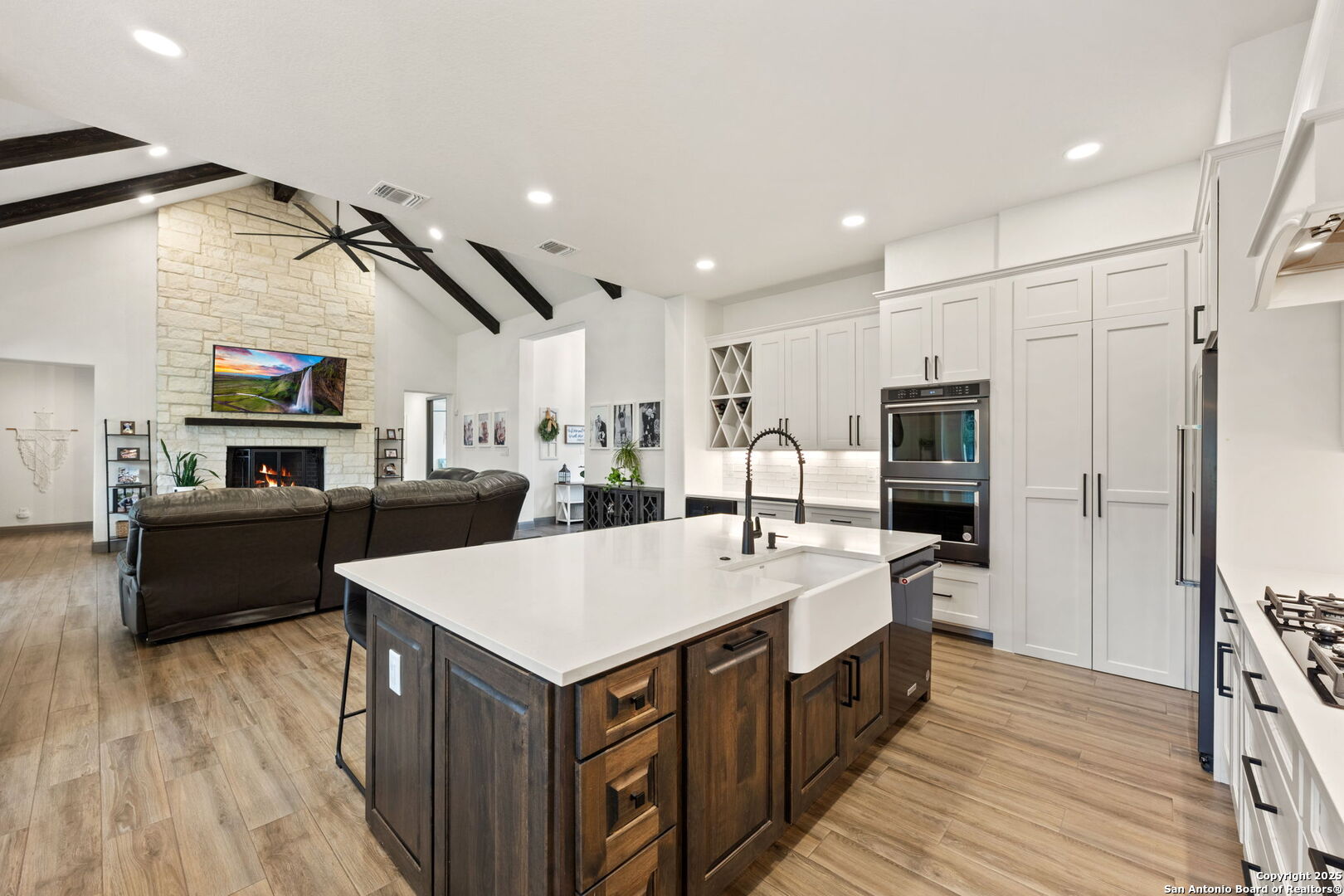 Exquisite KC Custom Home located within the Provence gated section of the sought-after Vintage Oaks community, offering 3,205 square feet of thoughtfully designed luxury living. This stunning residence features 4 bedrooms and 3.5 bathrooms, blending timeless craftsmanship with elevated modern comfort. A large, welcoming front porch sets the tone for the exceptional design found throughout. The open-concept floor plan is highlighted by a dramatic living room with beamed ceilings and a striking floor-to-ceiling stone fireplace, creating a warm yet sophisticated gathering space. The gourmet kitchen is a chef's dream, complete with double ovens, an oversized island, wine refrigerator, and premium finishes-perfect for entertaining and everyday living. The private primary suite offers a serene retreat with elegant tray ceilings and a spa-like ensuite bath featuring a separate walk-in shower and soaking tub. A dedicated office provides ideal work-from-home functionality, while a versatile bonus room offers flexibility for a media room, playroom, or additional living space. Step outside to your own outdoor oasis, showcasing a covered patio and a beautifully fenced pool with attached spa-ideal for relaxing or hosting year-round gatherings. A little extra? RV Parking with Hookups! Situated in a gated enclave of Vintage Oaks, this exceptional custom home delivers privacy, luxury, and an elevated Hill Country lifestyle in one remarkable offering.