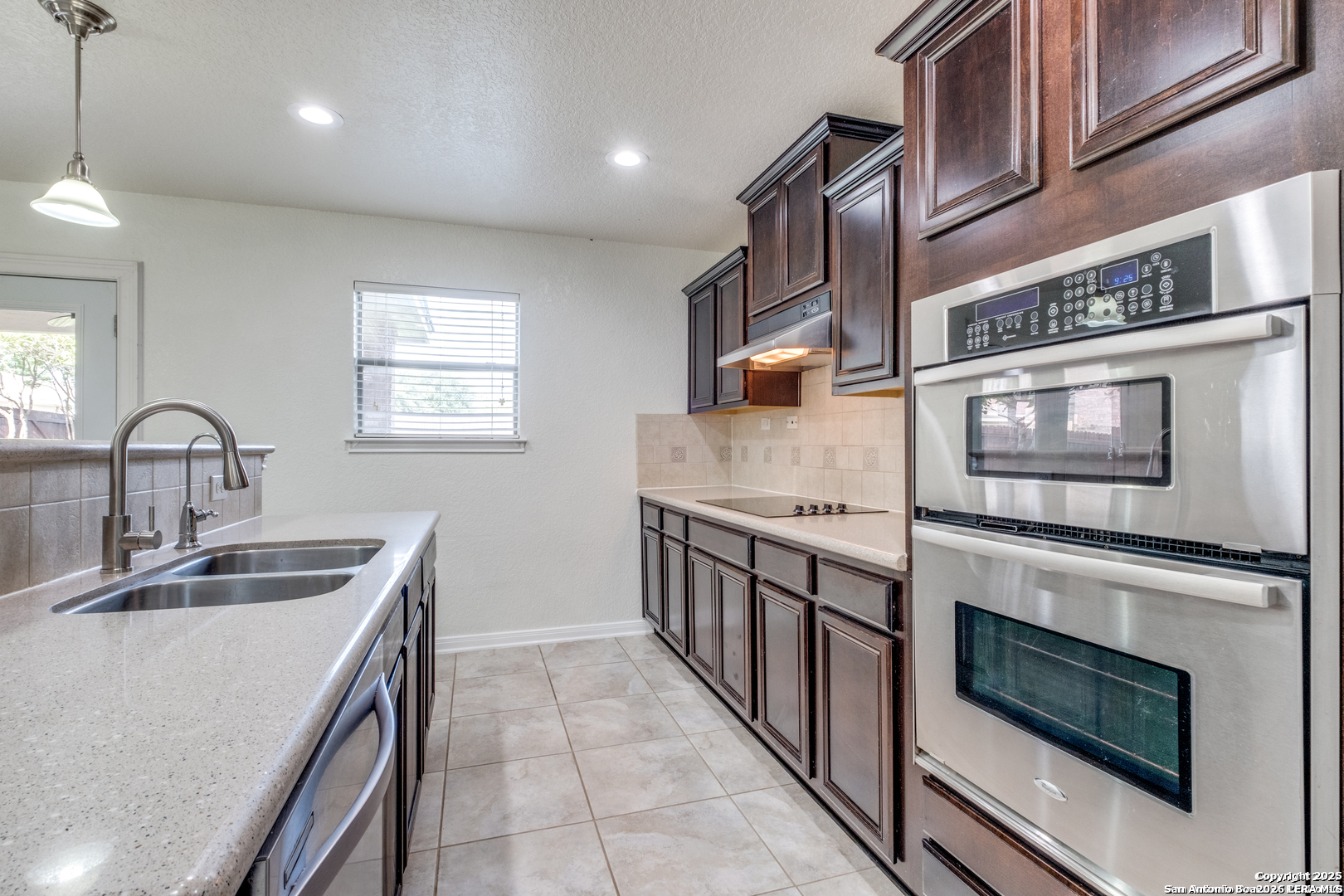 Gorgeous 4-bedroom, 2.5-bath home located in the desirable Sundance subdivision. Upon entry, you're welcomed past the staircase into an open-concept living, dining, and kitchen area designed for both everyday living and effortless entertaining. The kitchen offers hard-surface countertops, a tiled backsplash, a separate cooktop, coordinating stainless steel appliances, and a convenient bar-top seating area-perfect for casual meals or morning coffee. The spacious primary suite features a private en-suite bathroom with dual vanities, a large garden tub, separate shower, and an oversized walk-in closet. Secondary bedrooms are generously sized and each includes a ceiling fan for added comfort. Ideally situated near shopping, dining, major highways, and just minutes from Lackland AFB, this home combines a functional floor plan with sought-after community amenities-offering comfort, convenience, and lifestyle appeal all in one.
