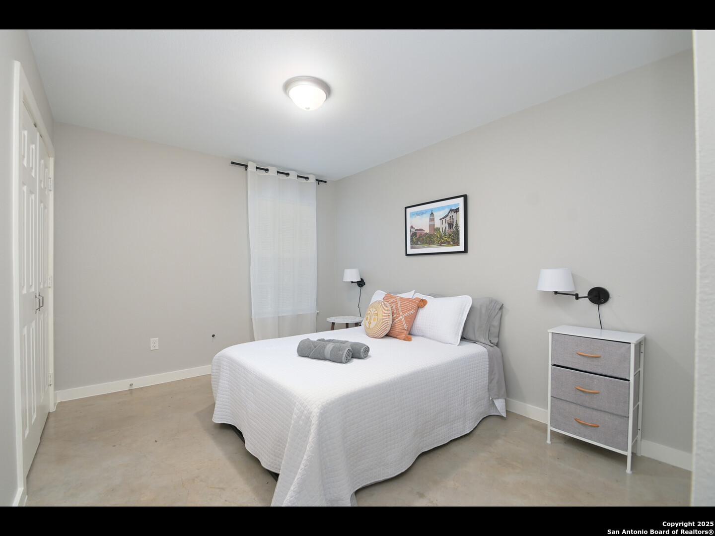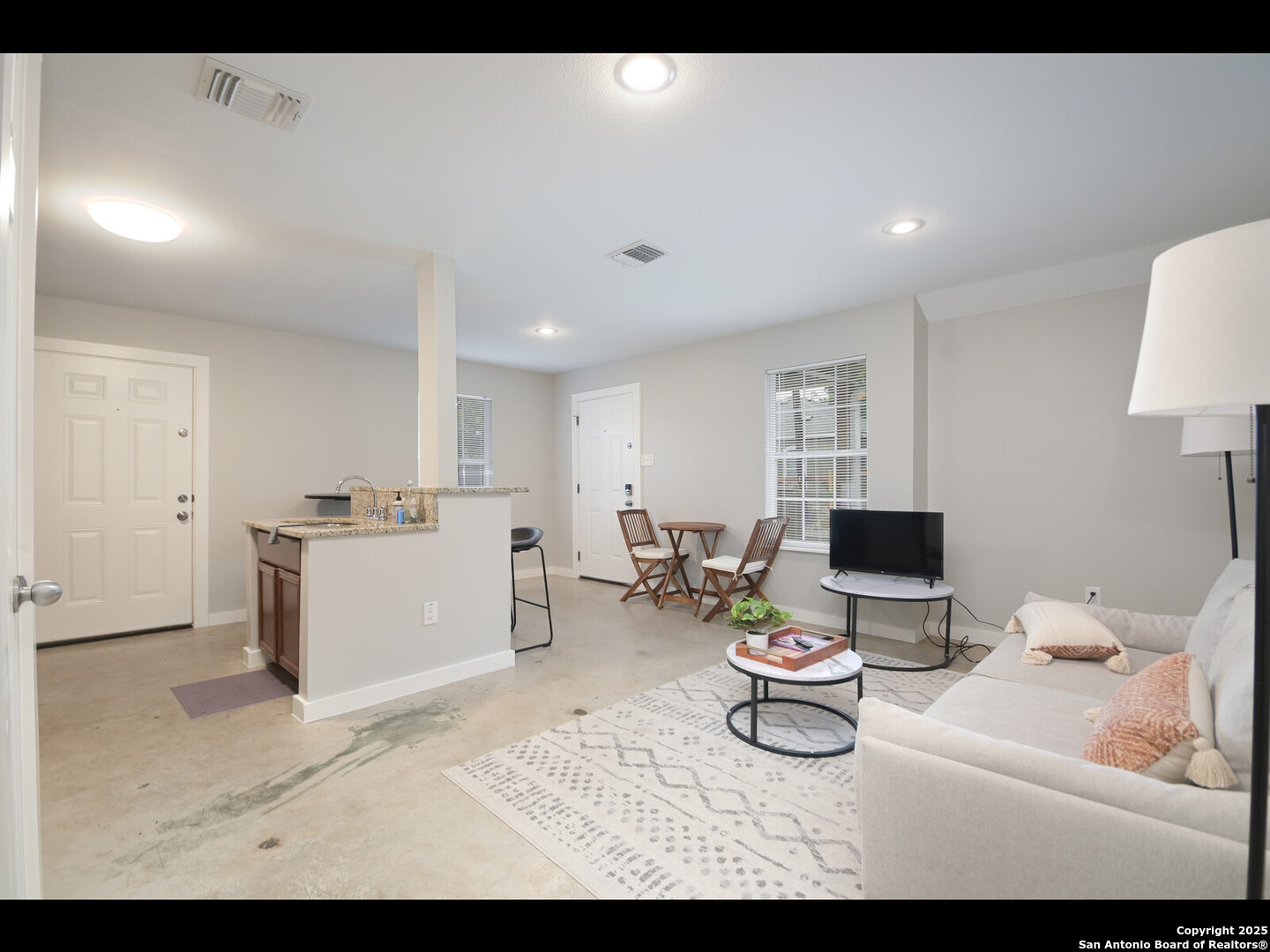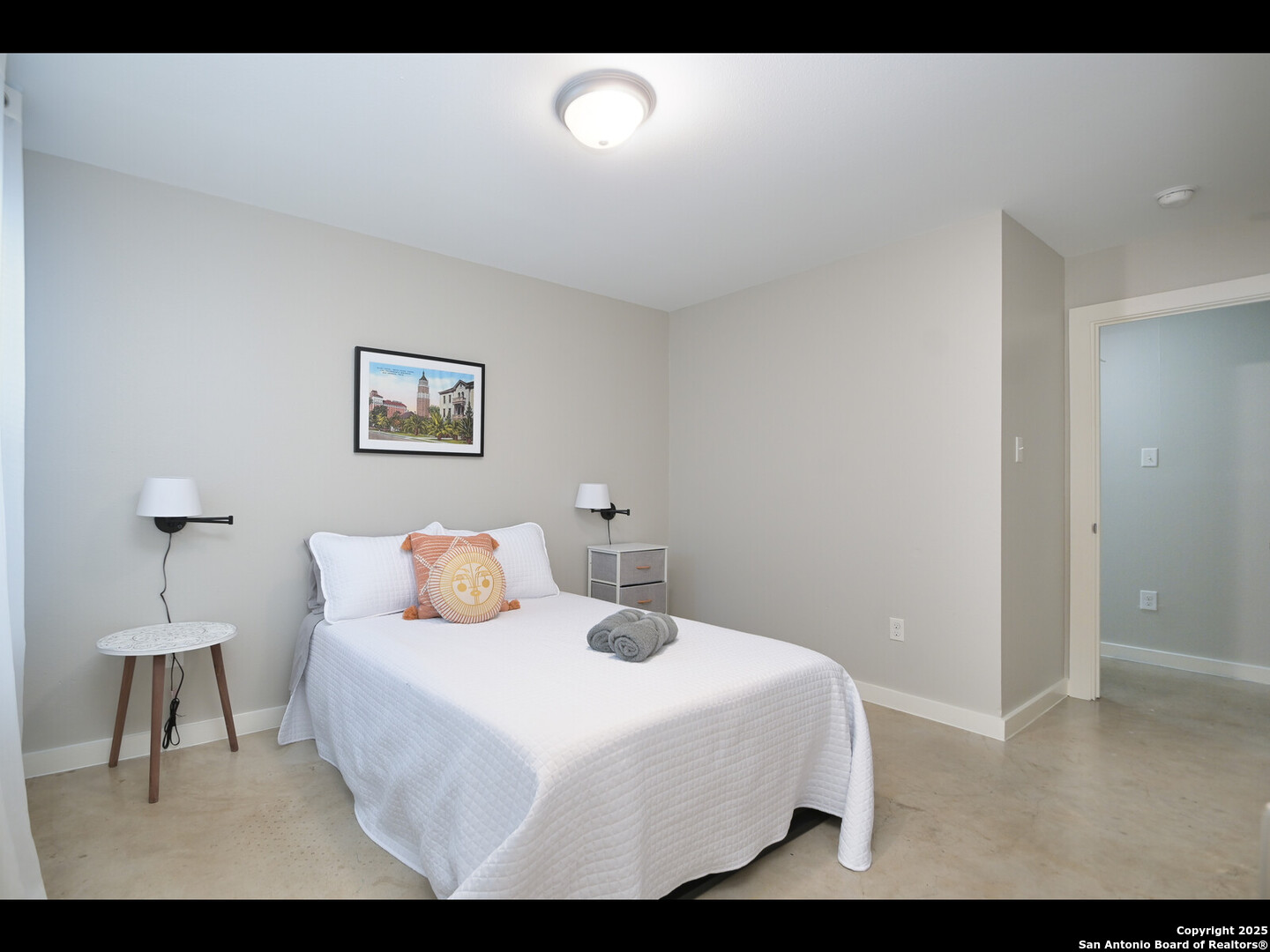 This unit features two bedrooms, one bath, and a convenient parking pad. Both units boast stylish concrete floors throughout, creating a sleek and modern aesthetic. The open floor plan, coupled with recessed lighting, enhances the spaciousness and ambiance of the living areas. The well-appointed kitchen showcases granite counters, a breakfast bar, and top-of-the-line stainless steel appliances, making it a joy to prepare meals and entertain guests. Situated just minutes away from San Pedro Park, The Pearl, Downtown, and Southtown, this duplex is ideally located, offering easy access to a variety of attractions and amenities