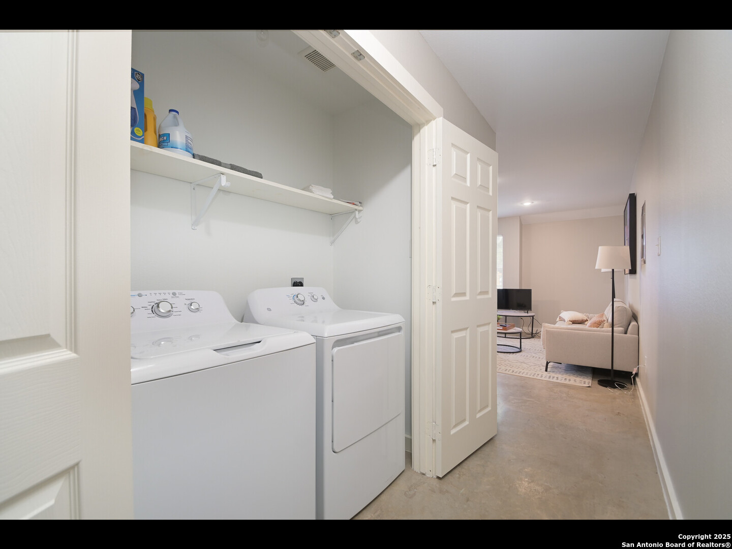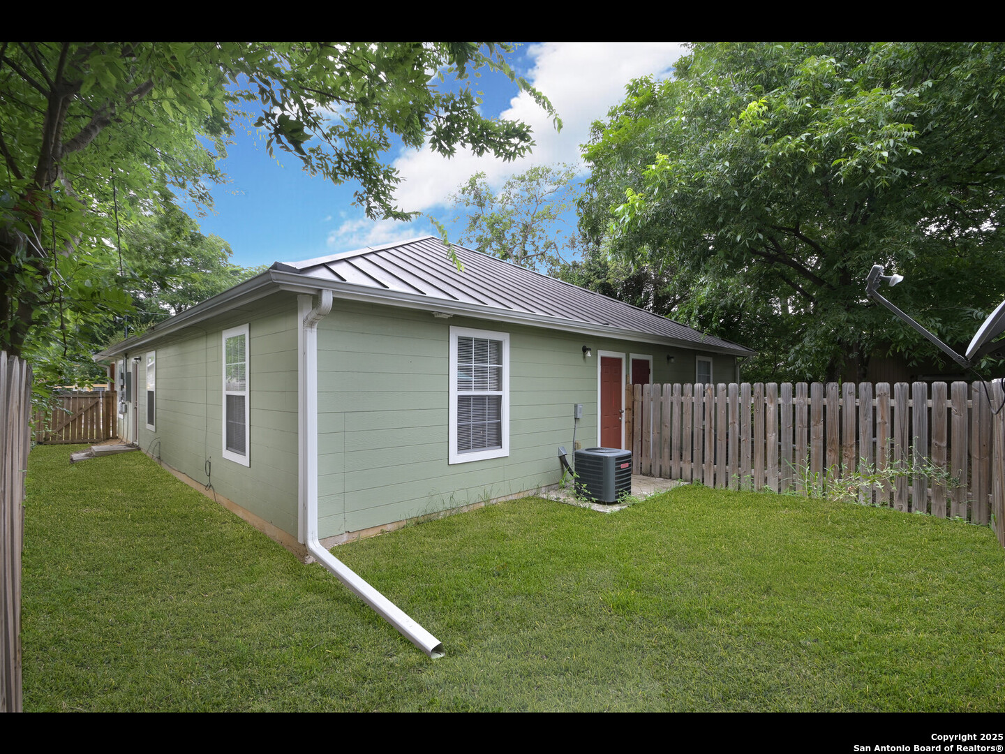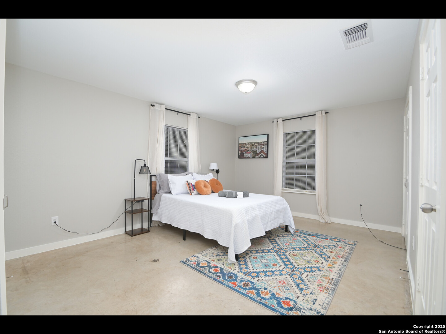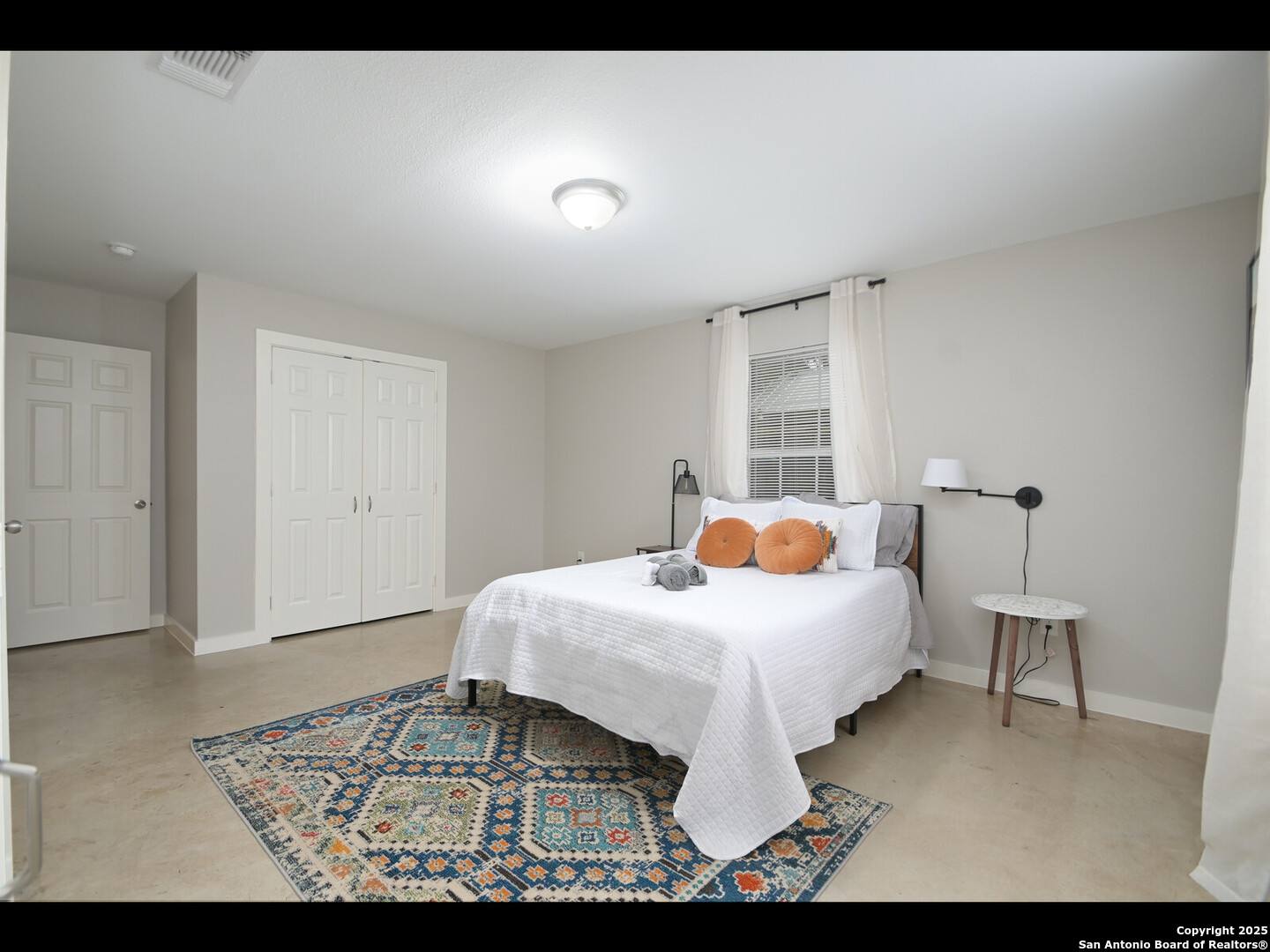 This unit features two bedrooms, one bath, and a convenient parking pad. Both units boast stylish concrete floors throughout, creating a sleek and modern aesthetic. The open floor plan, coupled with recessed lighting, enhances the spaciousness and ambiance of the living areas. The well-appointed kitchen showcases granite counters, a breakfast bar, and top-of-the-line stainless steel appliances, making it a joy to prepare meals and entertain guests. Situated just minutes away from San Pedro Park, The Pearl, Downtown, and Southtown, this duplex is ideally located, offering easy access to a variety of attractions and amenities