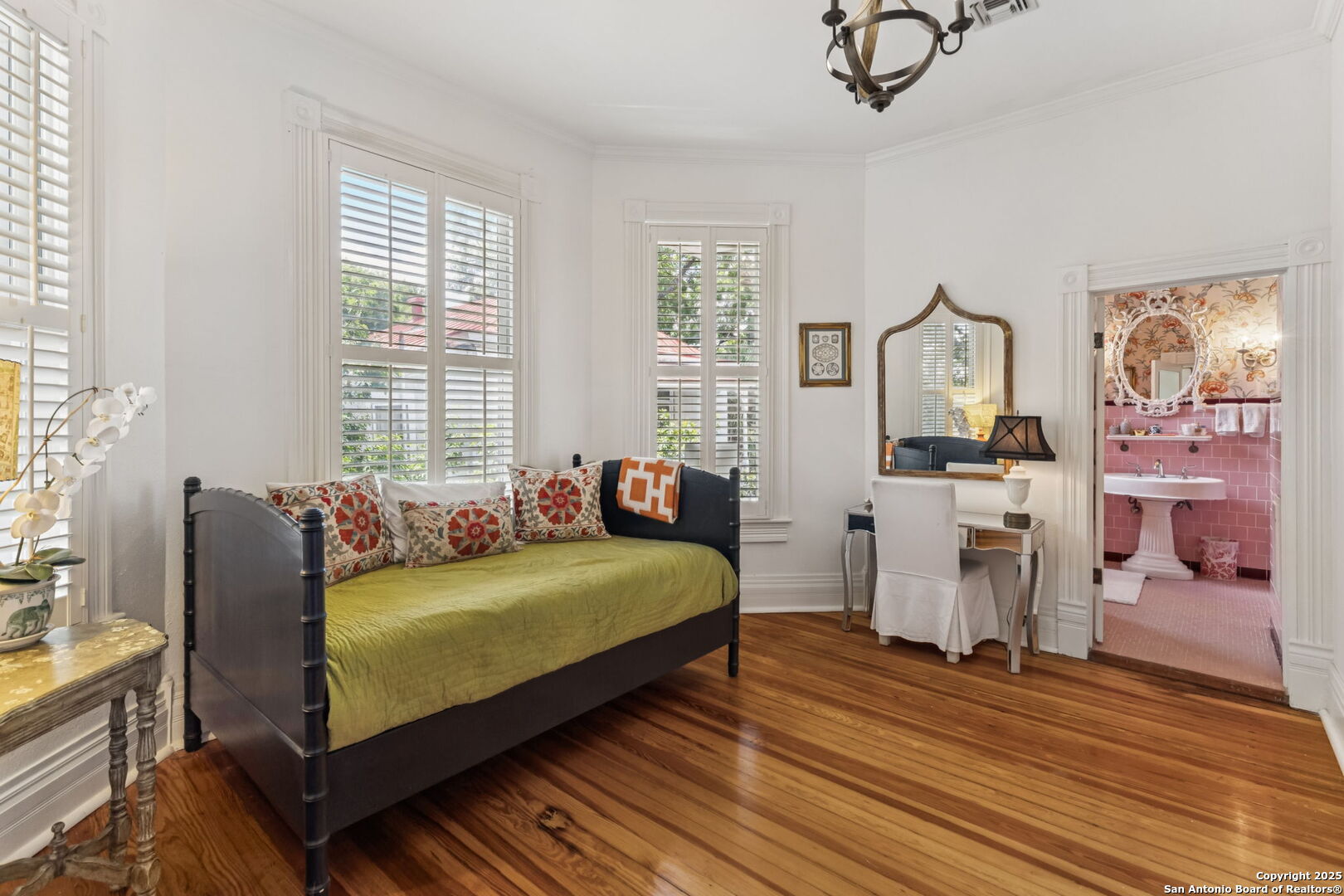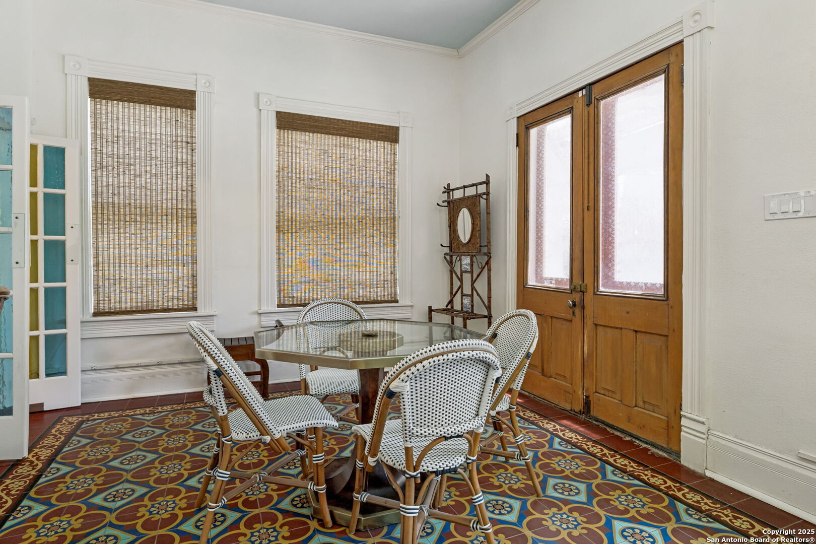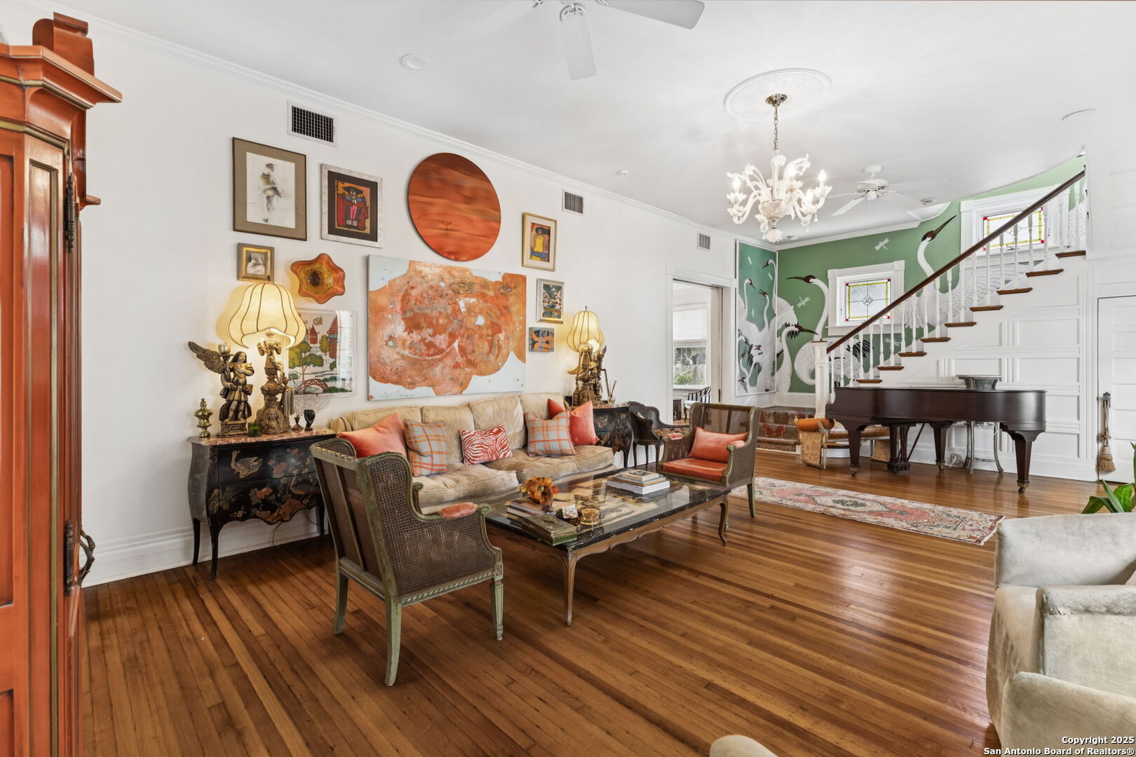 A Neoclassical stunner, 112 King William Street is a grand historic home - dating back to the early 1900s - that has been both tastefully updated and beautifully maintained. Framed by tall iconic columns, a large Redondo-tiled front porch and charming Juliet balcony, this 3 bedroom, 3 1/2 bathroom home is 3,198 square feet and sits on a 0.14 acre with a zero-lot line. A gracious stained glass entry door welcomes you into the grand, hardwood-floored living room with 11-foot ceilings and abundant light throughout. Adjacent is a striking and equally impressive formal dining room that easily seats up to 20 with tray ceiling, generous built-ins and custom millwork. Off it, there's an inviting, bistro-inspired gourmet, eat-in kitchen with modern appliances, soaring glass-front cabinets, mosaic checkerboard tile floor and large walk-in pantry. An attractive Redondo-tiled den spans the width of the house off the kitchen with a breakfast bar, second dining area, large sitting area, elegant half bath and spiral staircase that leads up to the second floor. A captivating flight of stairs off the living room at the front of the house also leads up to the second floor with a large landing. The expansive primary suite features its own sitting room, walk-in closet and well-appointed bathroom. Two ample-sized secondary bedrooms, each with their own private baths and a laundry room complete the home's layout upstairs. Behind an electric gate, boxwoods, bamboo and herb gardens shape the fetching back patio replete with pergola-covered outdoor living and dining spaces, converted carriage house office space and generous two-car garage ... with room for a cocktail pool available. The home sits across from King William Park and boasts a nice mix of historic charm alongside elegant fixtures, high-design touches and custom finishes befitting its grandeur. It is a truly unforgettable house that provides the perfect upscale, urban living opportunity. Schedule your showing today. Agent open, please provide three-hour advance notice.
