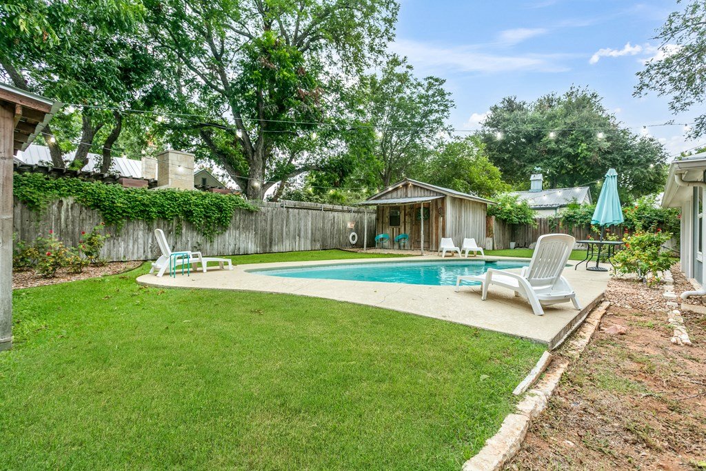 Discover Hill Country charm with this stunning corner-lot property featuring a main home, private guest house and sparkling pool—perfect for hosting or short-term rental potential. The main home offers spacious bedrooms and baths with abundant natural light, and timeless finishes. Step outside to a backyard oasis complete with a pool, covered patio, and mature landscaping, ideal for relaxing or entertaining year-round. The detached guest house adds flexibility and value—perfect for guests, a home office, or extra income. Located just minutes from downtown Fredericksburg and less than one block from Main Street, offering wineries, shopping, and dining—this is Hill Country living at its finest.