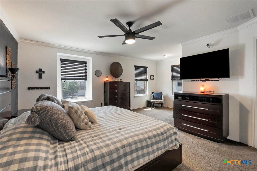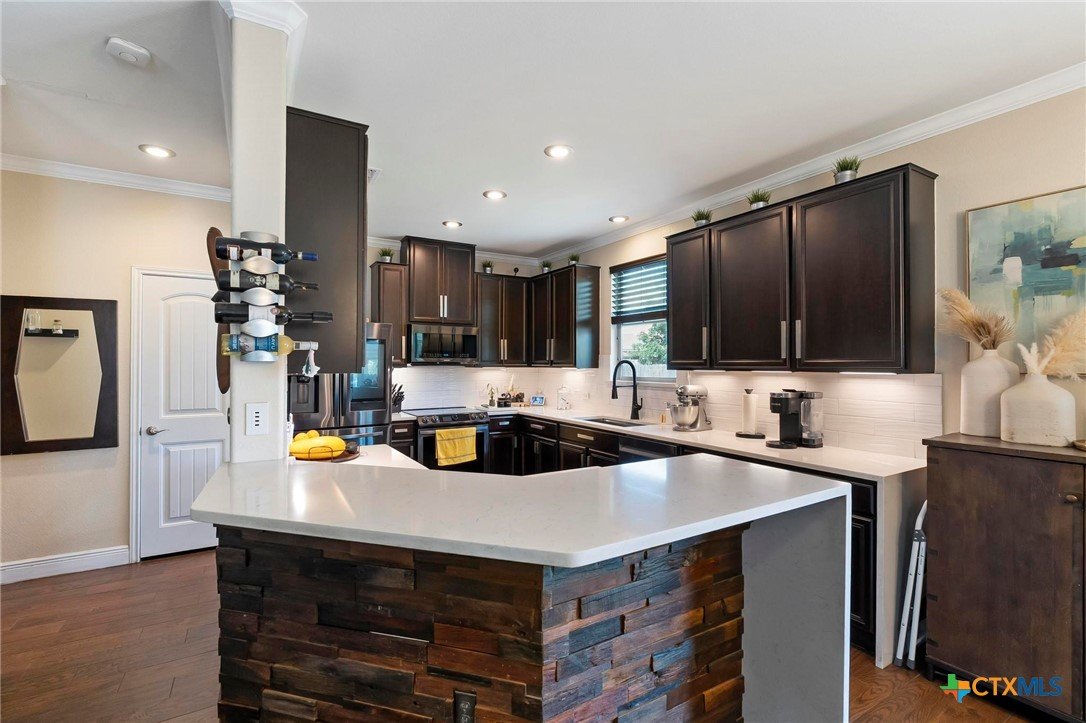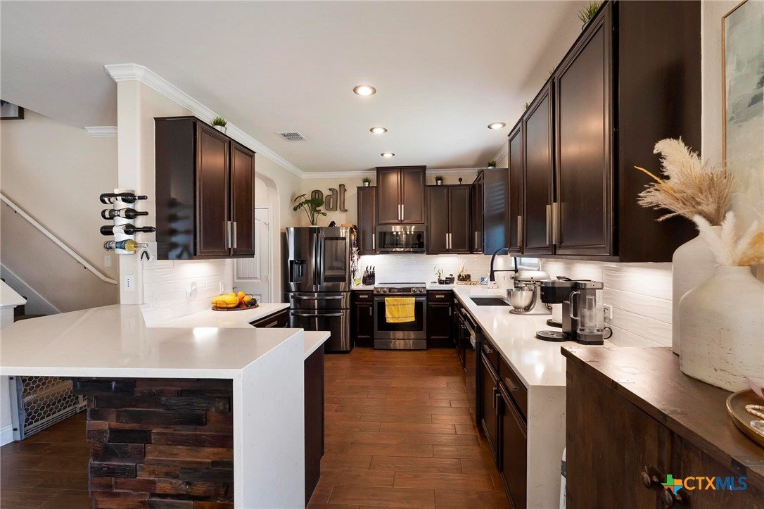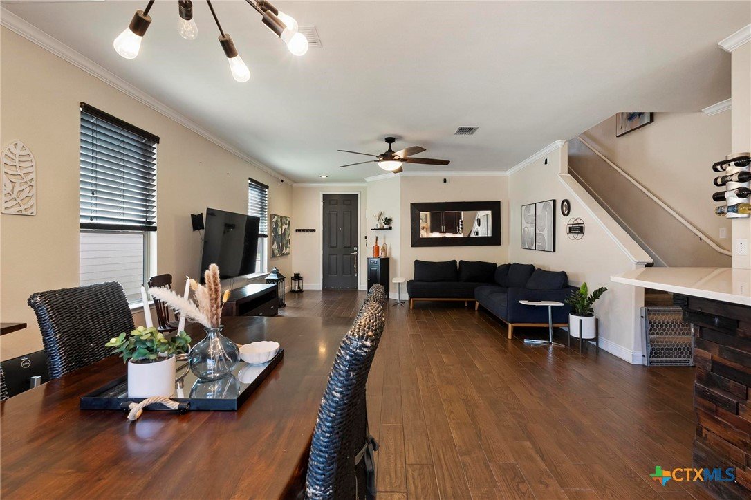 Welcome to this beautifully maintained 2-story home located in a quiet, established neighborhood—just minutes from major tech employers and with easy access to 290, I-35, and 130! This spacious 2,068 sq. ft. home features 3 bedrooms, 2.5 bathrooms, and a versatile upstairs loft that can easily be transformed into a game room, movie lounge, or home office. The open-concept floor plan offers excellent flow, with an updated kitchen that overlooks a large family room—perfect for entertaining or cozy nights in. Enjoy elegant crown molding throughout and stunning tile flooring that adds warmth and charm. The laundry room is conveniently located on the main floor and includes a high-efficiency washer and dryer. Upstairs, the oversized primary suite includes a walk-in closet and an en-suite bathroom. Two additional bedrooms and a full bath round out the second level. Step outside to a private, fully fenced backyard with a covered patio—ideal for relaxing evenings or weekend barbecues. Don’t miss your chance to tour this wonderful home—schedule a showing today. You won’t be disappointed!