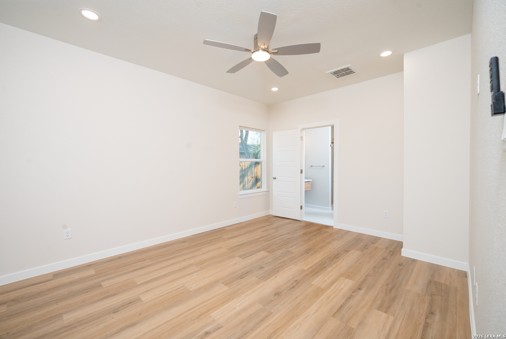 Move-in ready, newly constructed single-story home with a modern open-concept layout. Features include vaulted ceilings, recessed lighting, ceiling fans, and durable wood-style flooring throughout. The kitchen offers quartz countertops, custom cabinetry, stainless steel appliances, farmhouse sink, and a center island with cooktop and vent hood. Primary bedroom includes a private bath with walk-in shower, plus well-sized secondary bedrooms and an additional half bath. Covered patio, concrete driveway, fenced backyard, and a beautifully landscaped garden complete this inviting home. Please verify room sizes, schools.