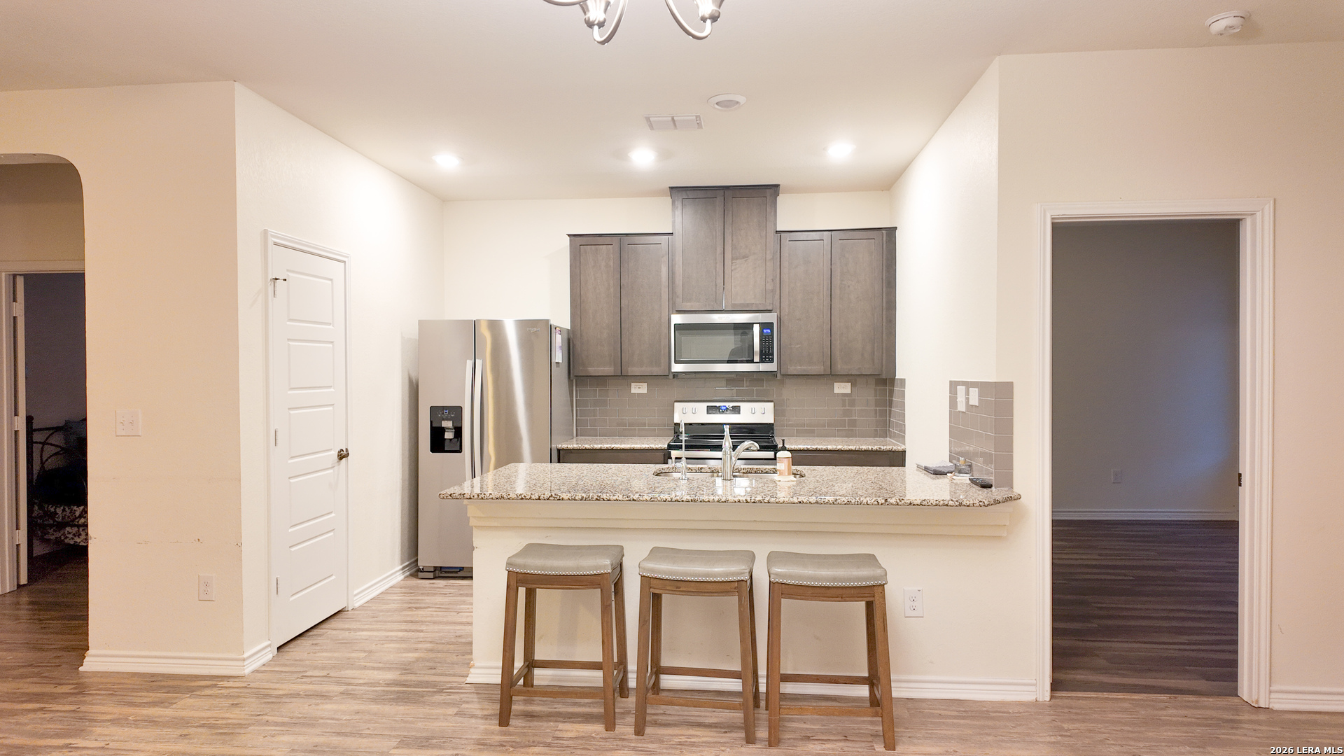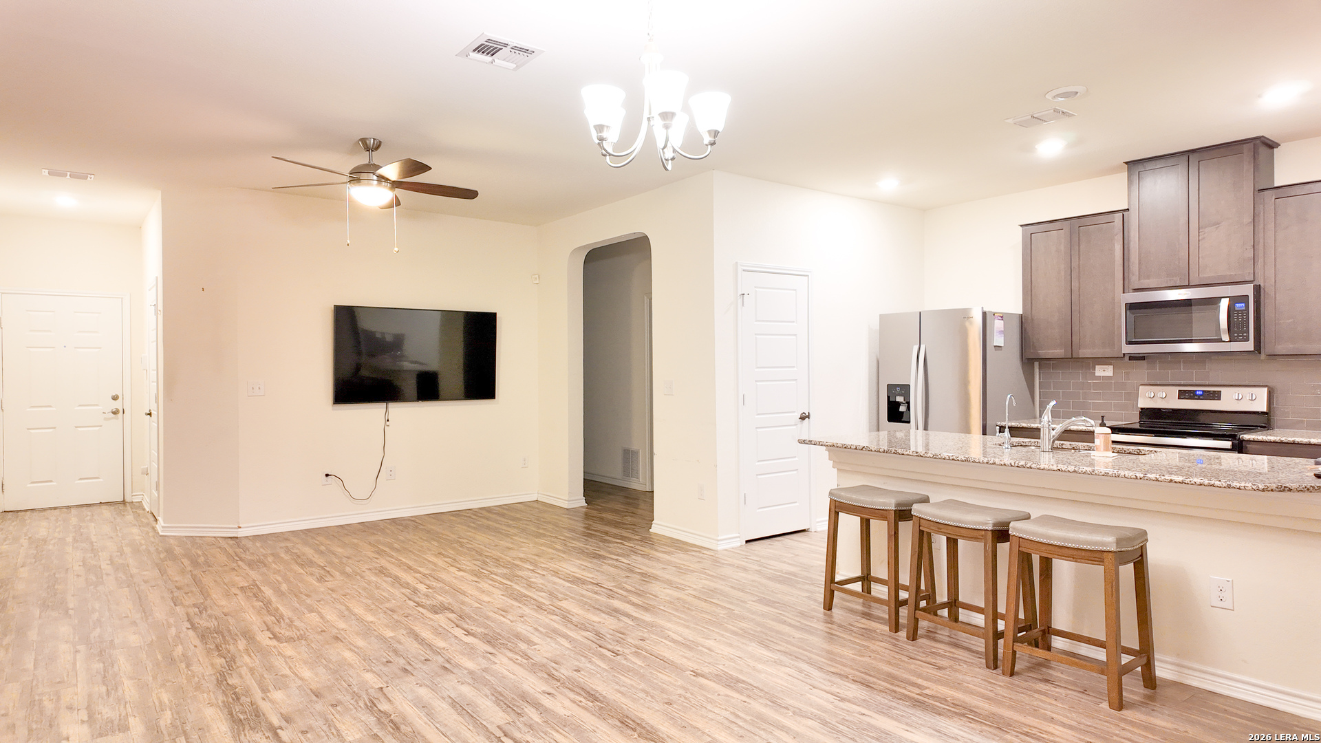 1123 Loma Mesa is a modern, move in ready home located in a growing area of San Antonio, offering open concept living with contemporary finishes throughout. The home features updated flooring a bright and spacious living area, and a well appointed kitchen with granite countertops, stainless steel appliances, and a large center island perfect for everyday living or entertaining. Generously sized bedrooms, modern bathrooms, and an in home laundry area with washer and dryer included add to the home's functionality. This home comes equipped with solar panels which will allow tenants to enjoy a lower energy bill. Enjoy a private, fully fenced backyard and convenient access to 410, dining, and schools, making this an ideal rental for those seeking comfort, style, and convenience in a newer construction home.