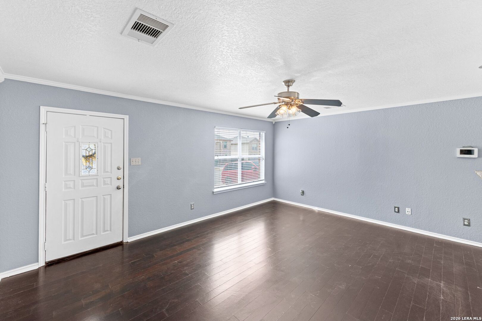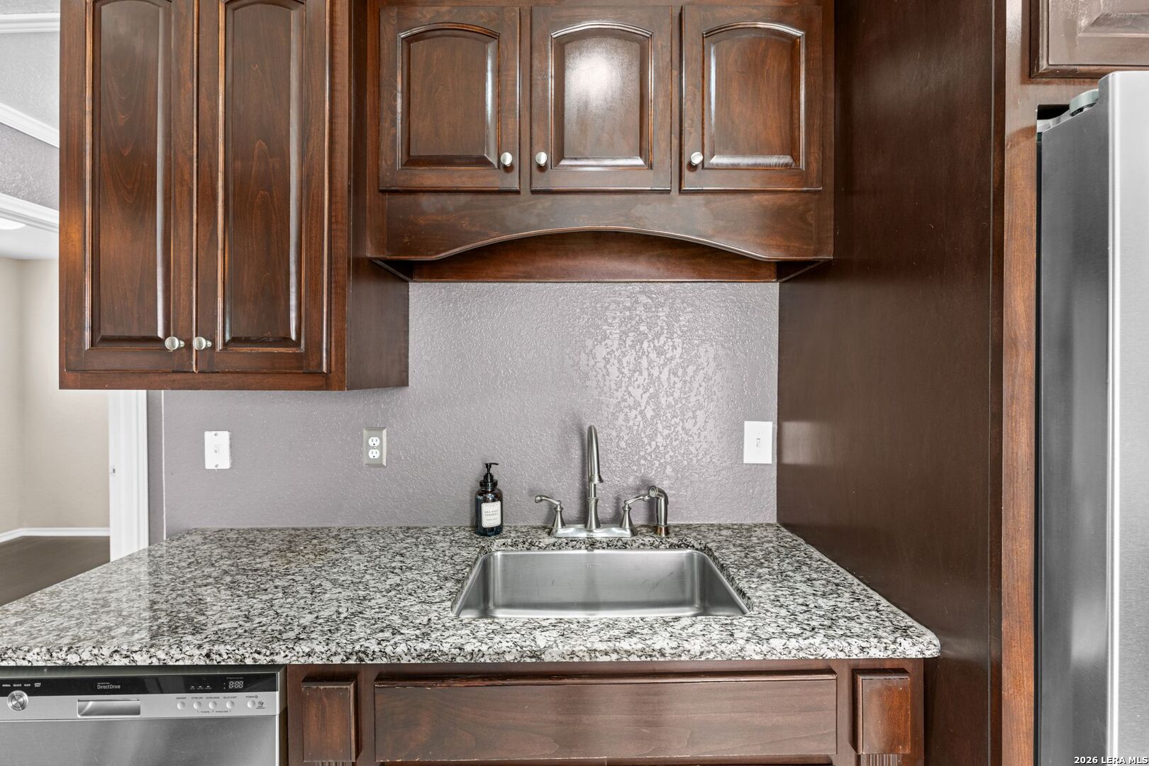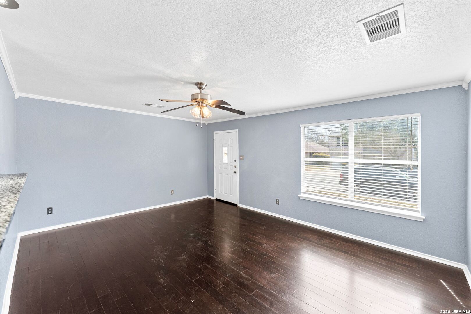 Charming and well-maintained 3 bedroom, 2 bath home with a 1-car garage, situated on a large, level lot offering space and flexibility. Inside, you'll find granite countertops, included refrigerator, beautiful wood flooring throughout, and no carpet for easy maintenance and a clean, modern feel. Conveniently located near shopping, restaurants, Loop 1604, and Highway 151, this home provides quick access to everyday essentials and major commuting routes while still offering comfort and privacy. A great opportunity for buyers looking for functionality, location, and move-in-ready features.