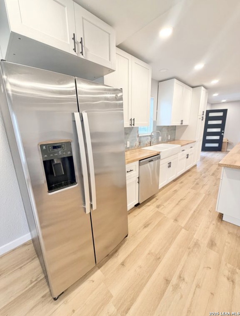 Welcome to 1126 W Lullwood Ave, a beautifully renovated 4-bedroom, 2.5-bath home in a prime central San Antonio location. Features include an open-concept layout, wide-plank luxury vinyl flooring, recessed lighting, and abundant natural light. The custom kitchen offers butcher block countertops, shaker cabinetry, designer backsplash, farmhouse sink, large island, and stainless steel appliances. Spa-inspired bathrooms feature modern finishes and elegant tile work. Additional upgrades include a new central HVAC system and updated lighting throughout. Enjoy a spacious backyard with a brand-new privacy fence and a detached garage. Conveniently located near The Pearl, Downtown, Trinity University, St. Mary's Strip, and major highways. Lease Terms: Resident responsible for utilities, pest control, and basic yard maintenance. One-year lease with option to renew. $2,575/month | $2,575 deposit | 4 Bed | 2.5 Bath