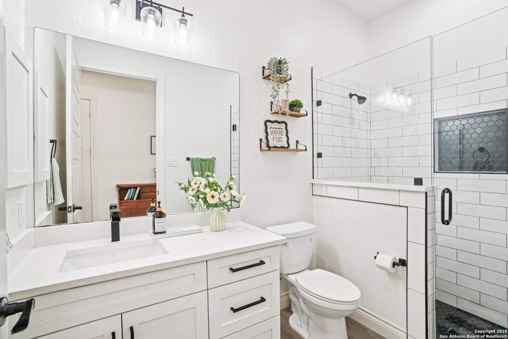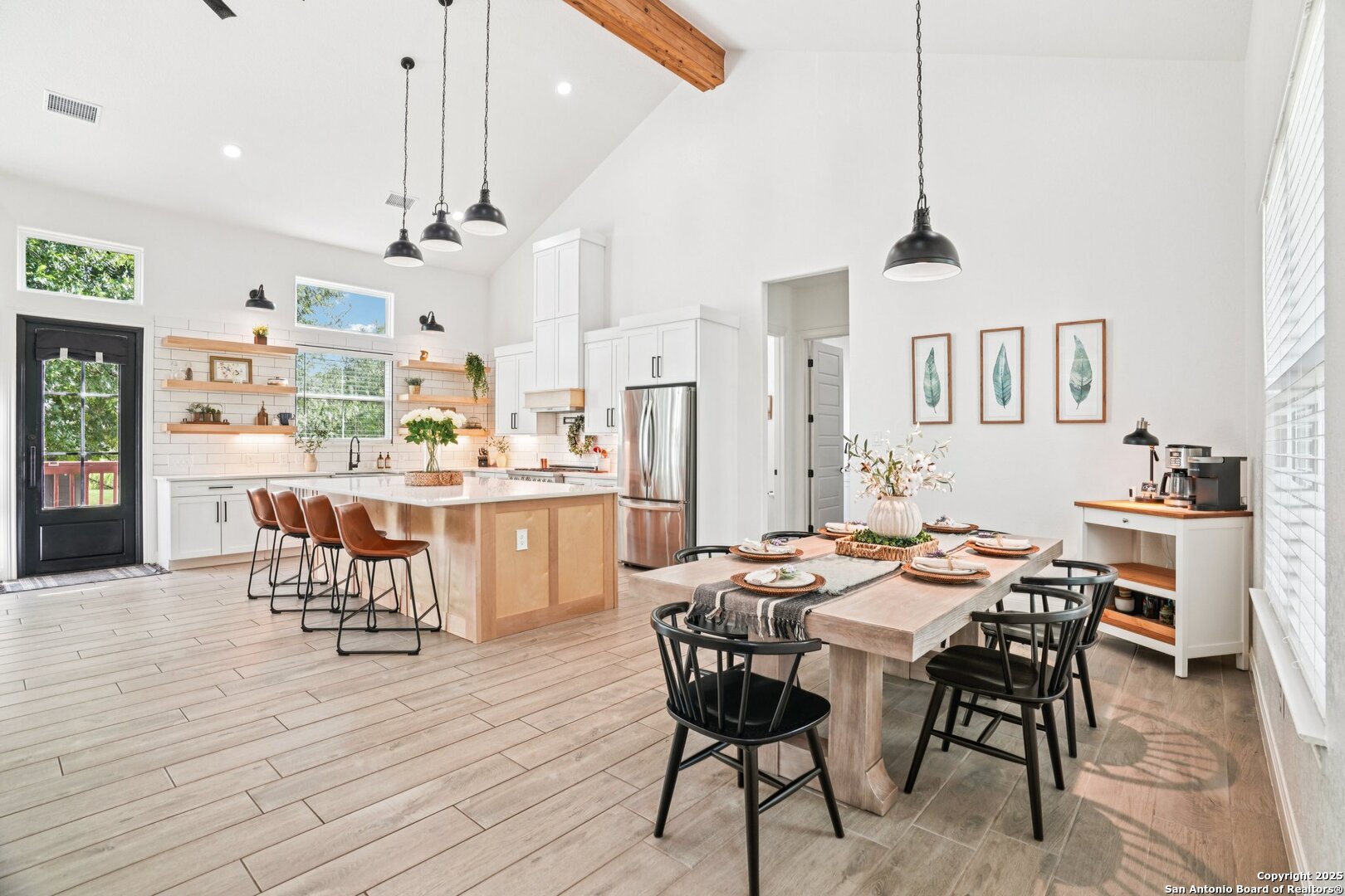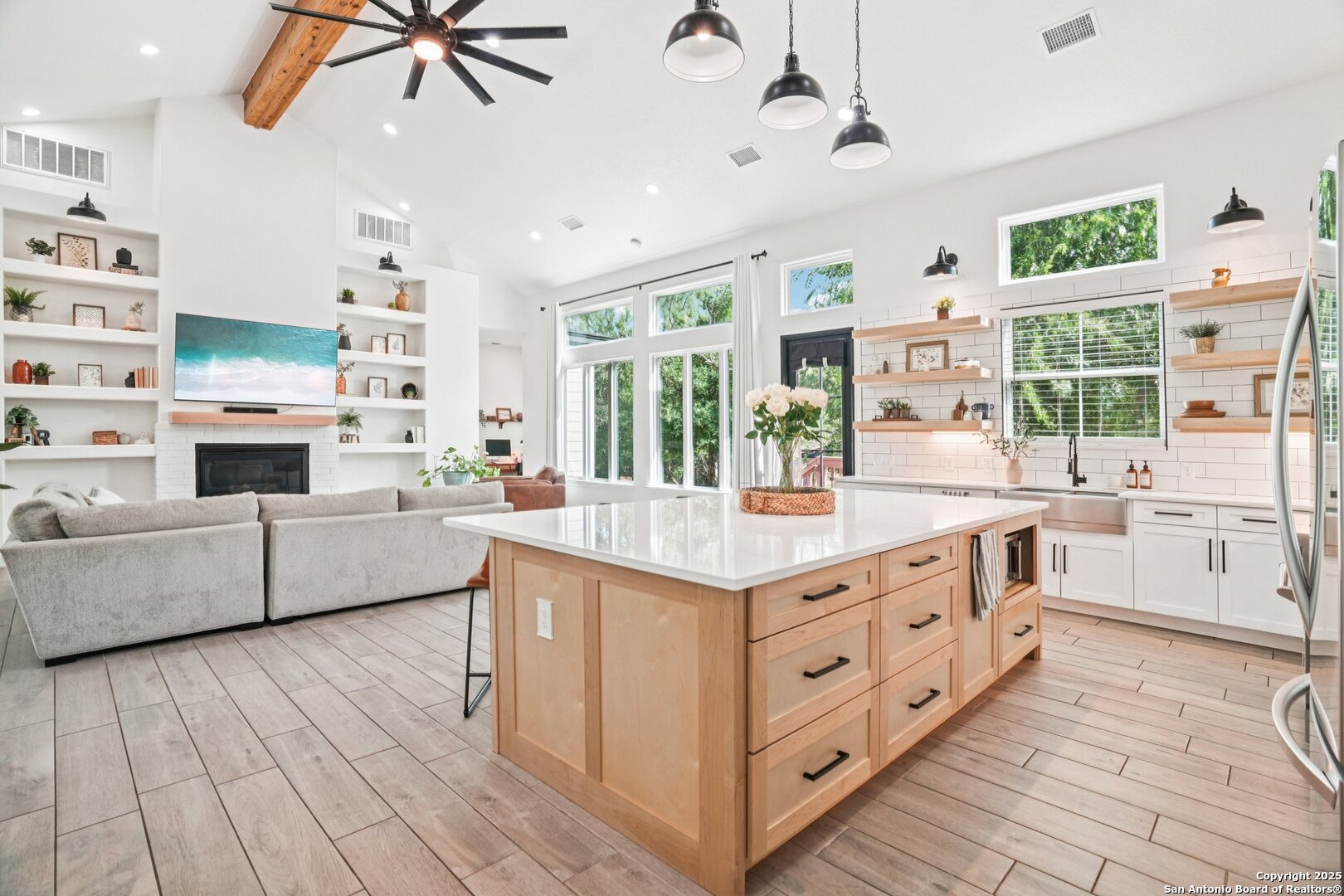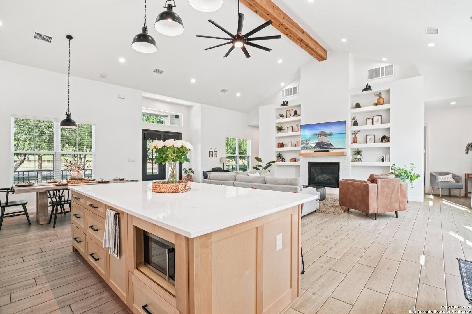 **MOTIVATED SELLER!! BRING ALL OFFERS** Welcome Home!! This Beautiful Custom Modern Farmhouse, Nestled in the Sought-After Beverly Hills subdivision of Helotes, TX, rests on a generous 0.80-acre lot and effortlessly blends timeless elegance with thoughtful craftsmanship! From the moment you arrive, the home's inviting charm and serene surroundings set the tone for something truly special. Two spacious front porch patios welcome you to relax and take in the tranquil landscape, while a long, private driveway creates a grand entrance worthy of an estate. Inside, soaring ceilings with a rich natural wood beam create an airy, open feel, while sunlight floods the expansive floor plan, highlighting the warmth and detail in every corner. A custom-built entertainment wall frames the cozy gas fireplace in the living room, perfect for quiet evenings or lively gatherings. At the heart of the home lies an impressive chef's kitchen, anchored by a massive white quartz island that combines beauty and practicality. Sleek black pendant lights, floating wood shelves, recessed lighting, and high-end stainless steel appliances complete the space, making it as functional as it is striking. The primary suite is a true retreat, offering a peaceful escape with a luxurious en-suite bathroom and a spacious walk-in closet. Additional bedrooms provide ample room for family or guests, while a dedicated laundry room ensures everyday ease and organization. Step outside and you'll find even more to love, with an expansive backyard with endless possibilities. Whether you're hosting under the stars or enjoying a quiet moment of solitude, this space offers privacy and freedom, with no HOA! Situated just minutes from Fiesta Texas, SeaWorld, The Shops at La Cantera, and in the North Independent School District with award-winning schools, this location strikes the perfect balance between peaceful country living and city convenience! Schedule Your Showing Today!!