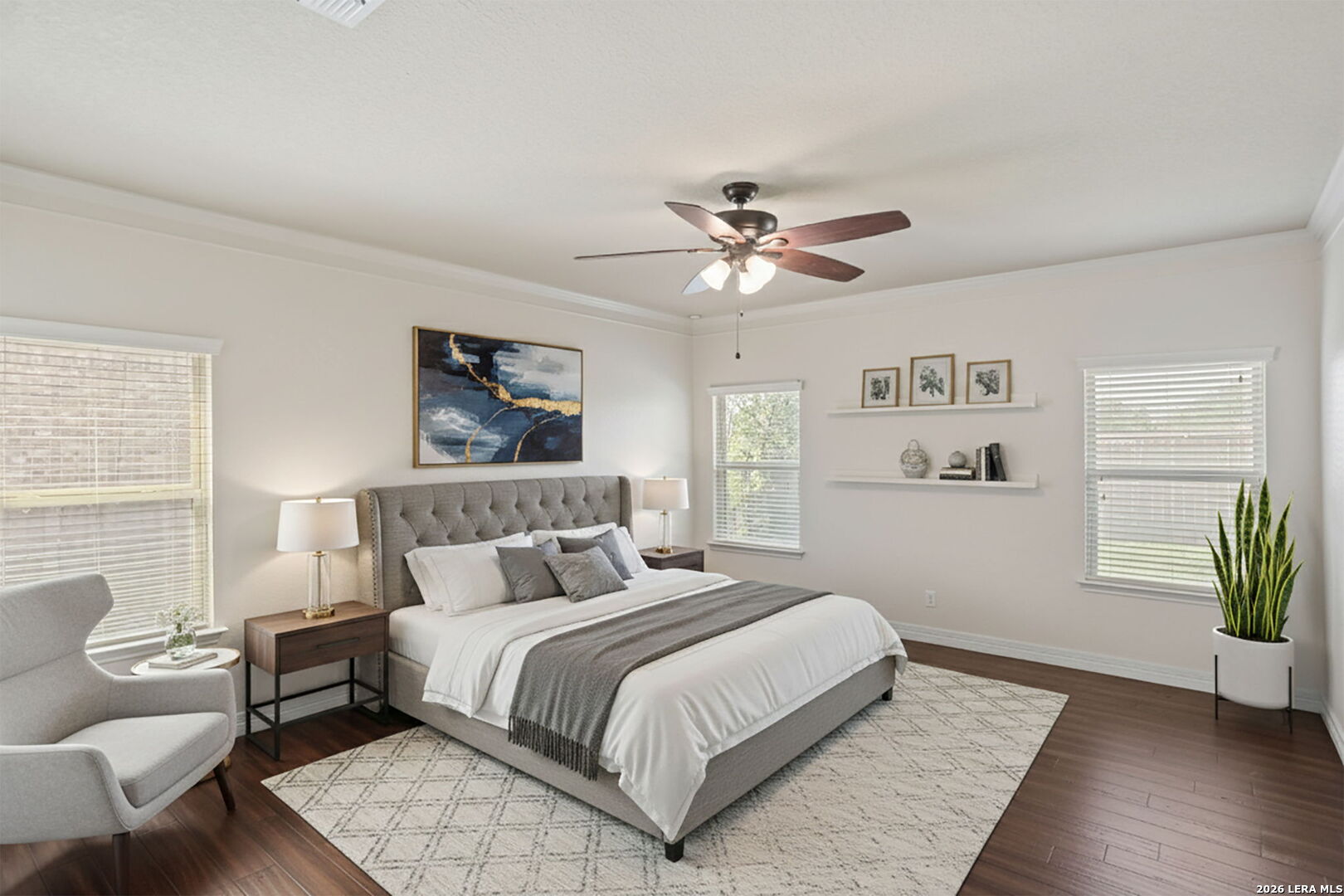 OPEN HOUSE Jan 3rd from 10 am - 2 pm. Room to grow and memories to make! This beautiful two-story home features 4 bedrooms, 2.5 baths, and 2,866 sqft of space designed for family living. The open kitchen with an oversized island flows into the living room-perfect for family dinners, and weekend gatherings. Parents will love the private downstairs master suite with wood floors, a massive walk-in closet, and custom built-ins to help keep things organized. Upstairs is a kid's dream zone-homework time, three bedrooms, a Jack & Jill bathroom for easy mornings, and a huge game room that opens to a breezy balcony, perfect for reading or relaxing after a long day of play. You'll love being walking distance from Fabra Elementary and the heart of Boerne's Main Street. Ride bikes to town or hop on the No. 9 Trail, then come home and unwind on the front porch swing while the kids play in the yard. This home offers the space, layout, and location today's busy families need. Come see it and imagine your next chapter here!