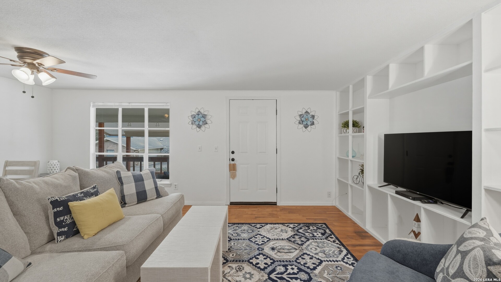 Welcome to Creekview Retreat, nestled within the gated Westhaven neighborhood in the heart of Canyon Lake, where comfort, space, and Hill Country lifestyle come together in a bright, open-concept design made for easy living. Rich wood flooring and abundant natural light create a warm, inviting atmosphere from the moment you step inside. The spacious living room features custom built-in shelving that beautifully frames the entertainment area, adding both character and functional storage. A neutral color palette, updated fixtures, and clean finishes give the home a fresh, move-in-ready feel while still offering a timeless canvas to make it your own. The living area flows seamlessly into the dining space and kitchen, creating an ideal setting for both everyday living and effortless entertaining. A convenient breakfast bar adds additional seating and natural connection between spaces. The kitchen offers ample cabinet storage, generous counter space, stainless steel appliances, and a double-basin sink positioned beneath a window that fills the space with natural light. Nearby pantry storage and adjacent laundry access enhance the home's thoughtful and functional layout. Situated on a spacious, tree-shaded lot, Creekview Retreat offers room to relax, gather, and enjoy the beauty of Canyon Lake. The welcoming front porch sets the tone for slow mornings with coffee and peaceful Hill Country evenings. Additional storage and a covered carport provide ideal space for a golf cart, lake gear, or outdoor equipment, making it easy to fully embrace lake living. Whether entertaining beneath the mature trees, creating a fire pit retreat, or simply enjoying the open yard space, the possibilities are wide open. Living in Westhaven means enjoying gated access along with neighborhood amenities that enhance everyday life, including a community pool, clubhouse, and sports courts. With private neighborhood access to Canyon Lake, lake days can become part of your regular routine, whether boating, kayaking, fishing, or simply taking in sunset views over the water. Creekview Retreat delivers charm, functionality, outdoor space, and the recreational Canyon Lake lifestyle all in one inviting package.