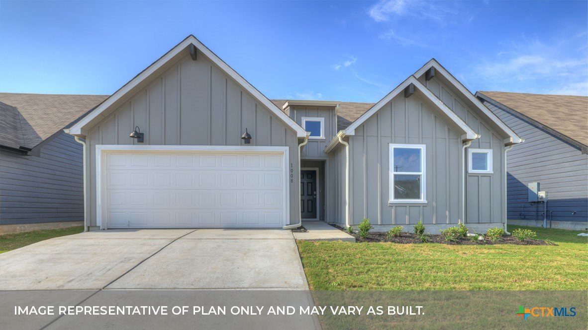 MOVE IN READY! BACKS TO GREENSPACE. The Bellvue is one of our one-story floorplans featured at our Trace community in San Marcos, Texas. This home is perfect for smaller families or homeowners looking to downsize. Featuring 3 bedrooms and 2 bathrooms, this home also includes a 2-car garage all within 1,407 square feet of living space. Stepping inside the home from the covered front porch, you will find a short hallway that leads to the secondary bedrooms and bathroom. Bathroom 2 includes a tub/shower combination, and both bedrooms include a walk-in closet with shelving. Whether you use these rooms for an office, child’s room or guest room, there is amble space for the entire family. The living area is an open concept design, so you are always close to the action in the family room, kitchen or dining area. The kitchen features an island with an undermount sink facing the family room, stainless steel appliances, quartz countertops, corner pantry closet and 36” upper cabinets. Enjoy the natural light with four rear windows looking out to the backyard. The primary bedroom is off the family room and includes its own attached bathroom, making the start of your day a seamless step from sleep to your morning routine. Enjoy the 5’ walk in shower, vanity and separate door to the toilet for privacy. A walk-in closet with generous shelving is connected to the bathroom. The utility room is outside the primary bedroom, allowing for the laundry chores to be completed with ease. The Bellvue includes vinyl flooring throughout the common areas of the home, and carpet in the bedrooms. All our new homes feature a covered back patio, full sod, an irrigation system in the front and back yard, and a 6’ privacy fence around the back yard. This home includes our America’s Smart Home base package, which includes the Amazon Echo Pop, Front Doorbell, Front Door Deadbolt Lock, Home Hub, Thermostat, and Deako® Smart Switches.