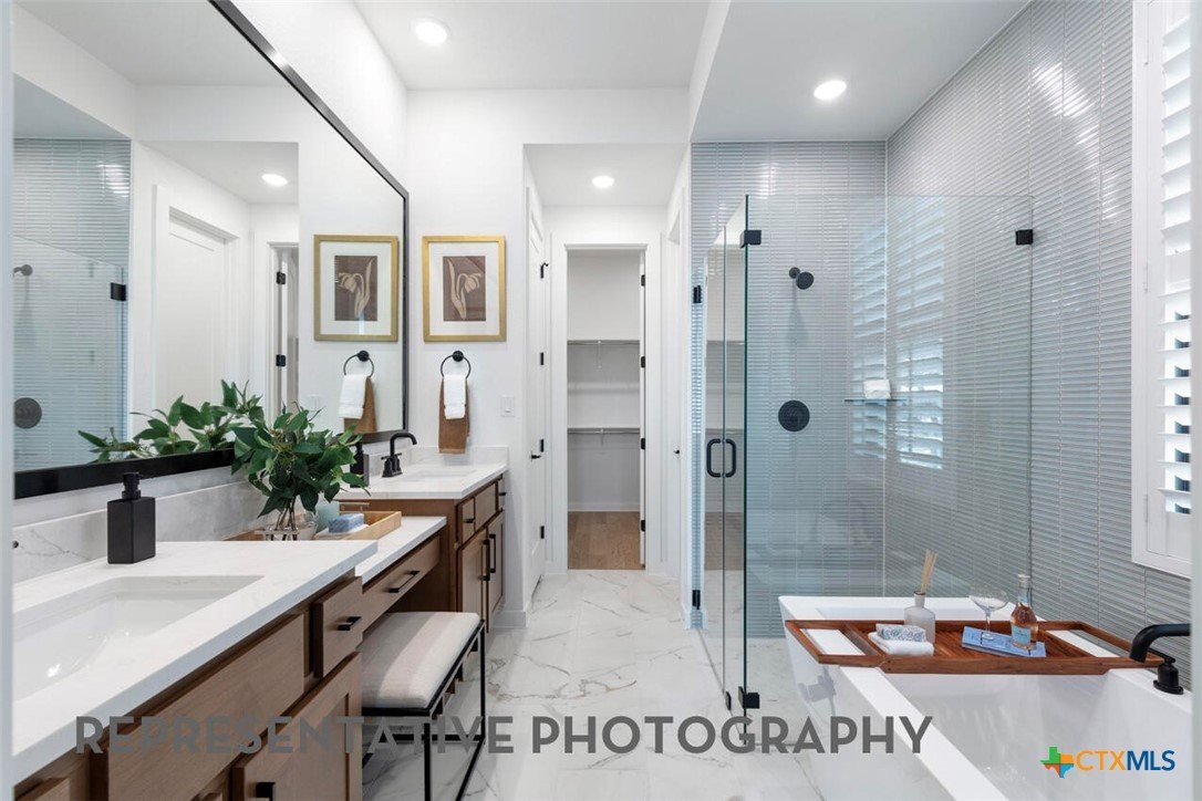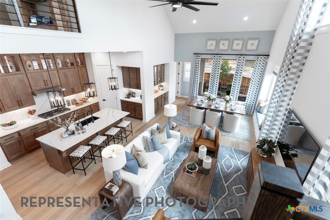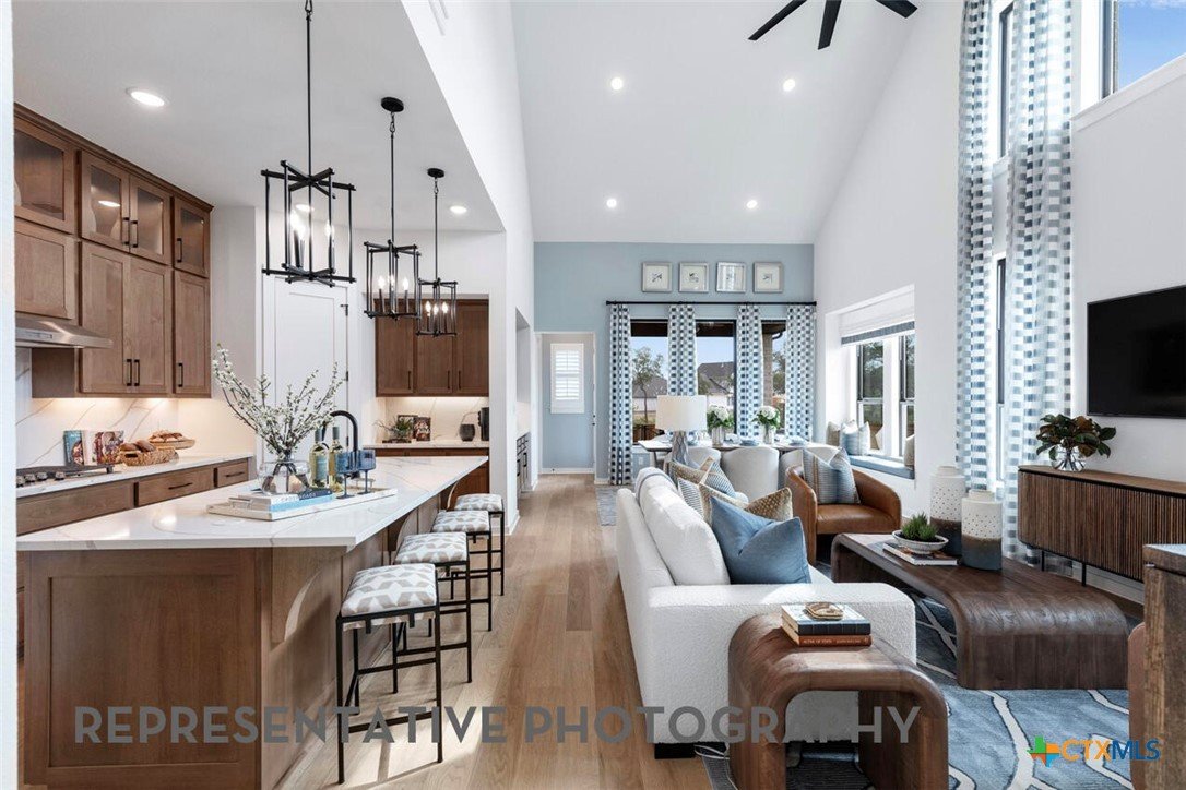 The Mclaren is a well-appointed two-story home offering approximately 2,703 square feet of comfortable and functional living space. Just off the main foyer to the left, you'll find a private study and a conveniently located laundry room near garage entry. Near the foyer is a secondary bedroom with a full bathroom nearby, making it accessible for guests. The heart of the home features an open-concept layout with a spacious kitchen, dining area, and living room, super tall ceilings allow lots of natural light and views of the backyard. Tucked at the back of the home, the primary suite offers a peaceful retreat with a luxurious bathroom and spacious walk-in closet. Upstairs, three additional bedrooms with two full bathrooms, open to a cozy loft space-- perfect for a study nook, media area, or casual lounge. This home features upgrades such as primary bay window extension, freestanding rectangular tub at master with separate shower and extended outdoor living area.