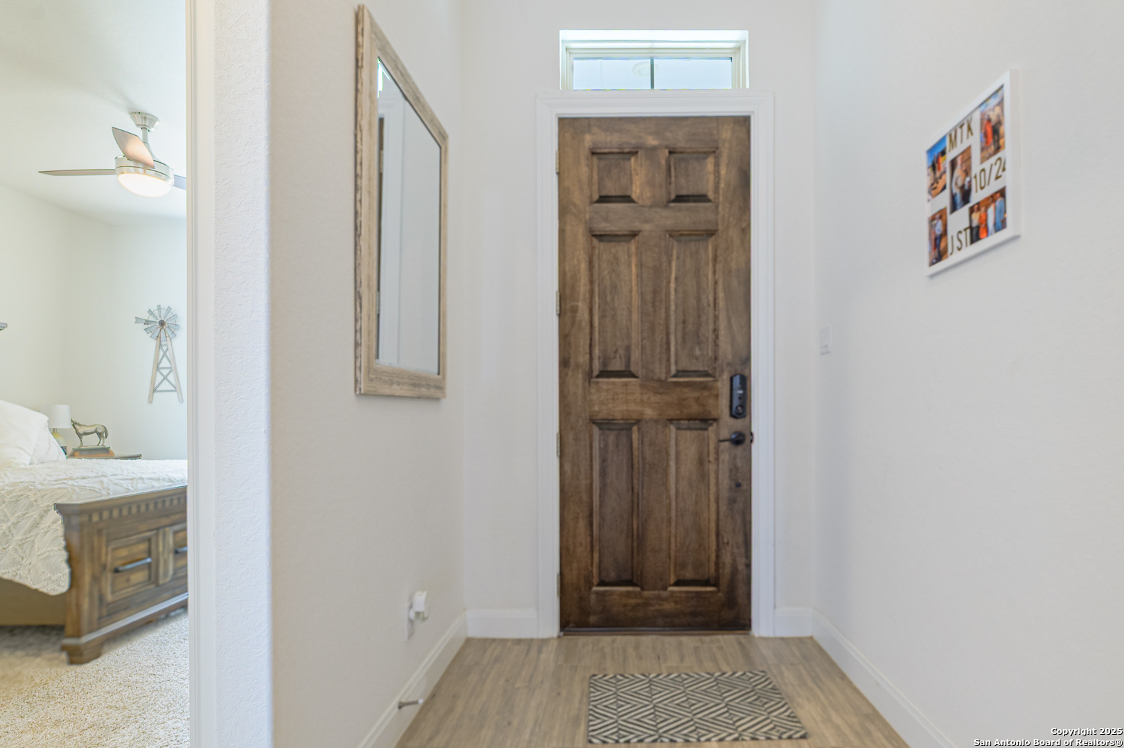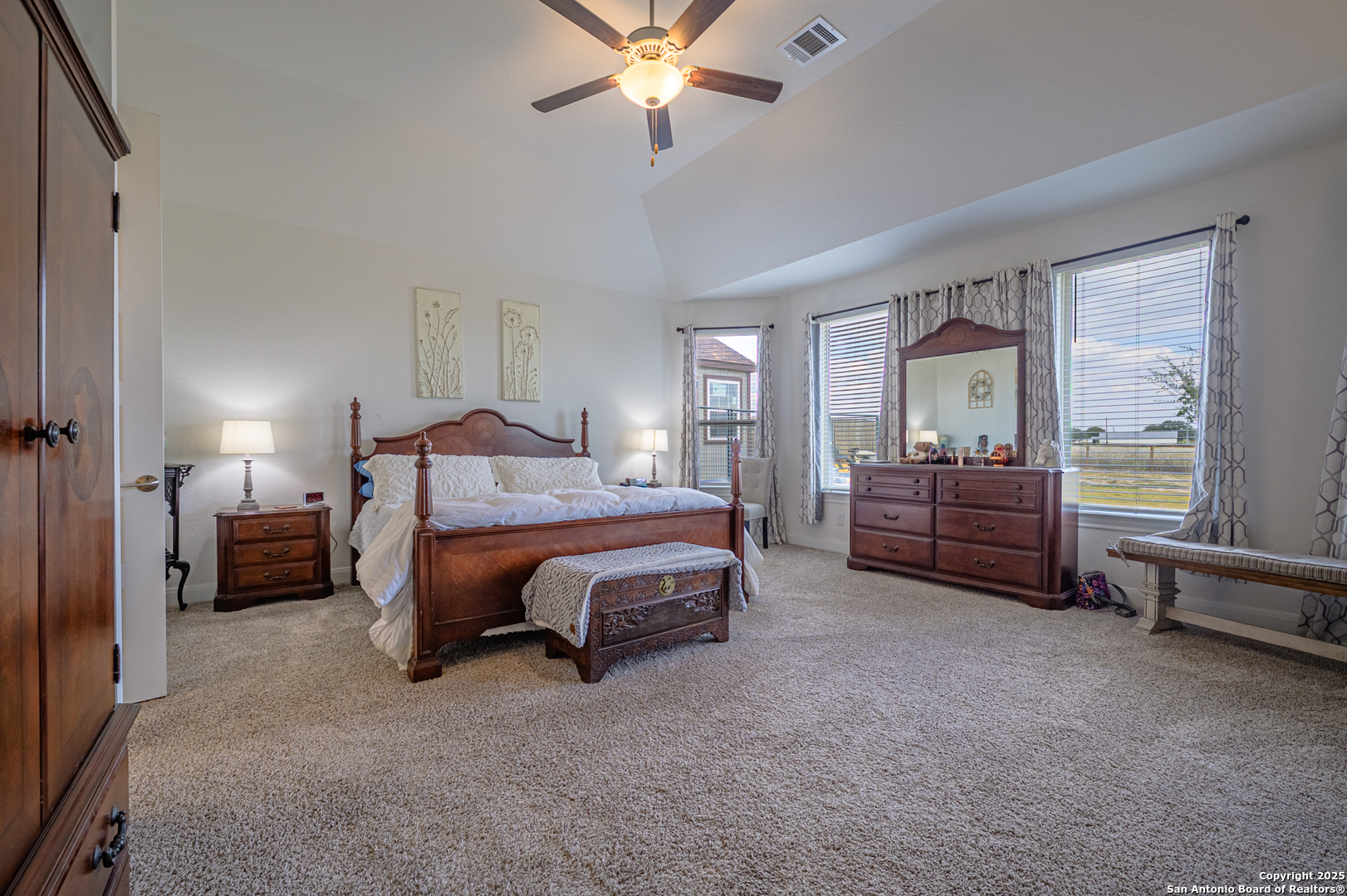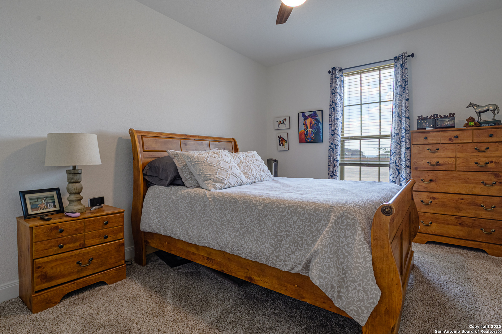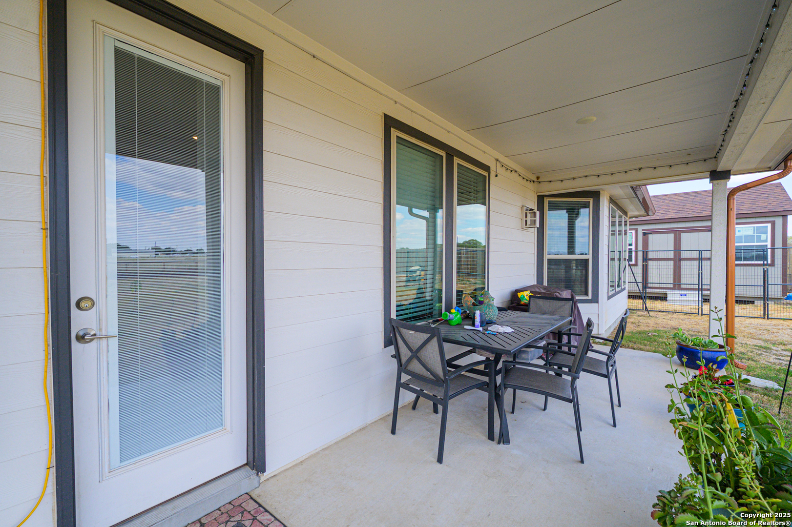 Solar Panels , water softener , tankless water heater and gas appliances are some of the great extras that are provided with this immaculate home. A dramatic oversized hallway passes by the designated office and leads to the sunlit great room where the kitchen , dining, breakfast and living area are located and the ceilings soar to 11'. The white cabinetry is topped with white quartz. Enjoy the Smart French Door Refrigerator with Craft Ice & Full-Conversion Drawer, the gas range and 9' island . This great room is graced with 2 dining areas, stone faced gas fireplace with glass insert ,access to primary suite and back yard. The primary wing features bay windows and a glorious bath with garden tub , sparkling shower, 11' vanity and walk in closet. Bedroom 2 has ensuite with zero entry shower, Bedroom 3 & 4 share a full bath with double vanities. All bedrooms have walk in closets. Oversized garage holds the tankless water heater, whole house water softener and pull down stairs. A storage building is already set up in the back yard and is easily accessed from the covered porch. Numerous Oak trees have been planted.