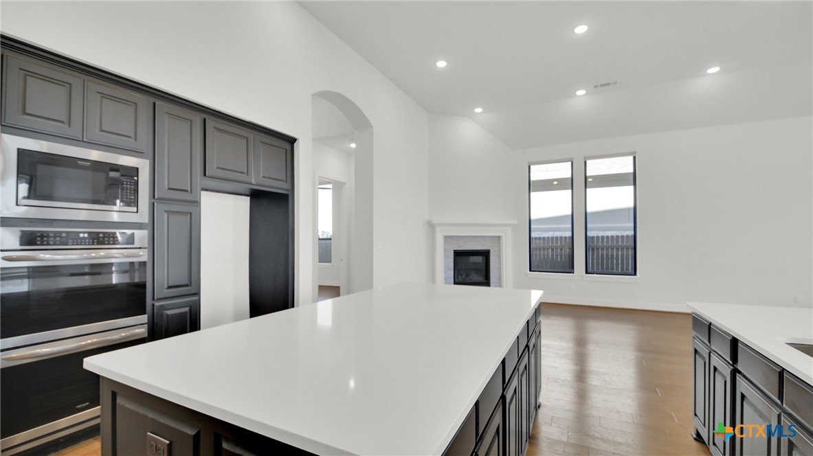 Welcome to 113 University Lands Dr., Liberty Hill, TX, a stunning 4-bedroom, 3-bath luxury home in the highly sought-after Santa Rita Ranch community, offering 3,195 square feet of thoughtfully designed living space just north of Austin. This modern residence blends upscale finishes, a functional open layout, and resort-style community living. From the moment you enter, soaring 13-foot ceilings and expansive walls of windows flood the home with natural light, creating an open and airy atmosphere throughout. Custom finishes elevate the design and make this home truly one of a kind. The heart of the home is the gourmet kitchen, designed for both everyday living and entertaining, featuring double kitchen islands, a gas cooktop, double ovens, ample cabinetry, and seamless flow into the spacious living area. Indoor and outdoor fireplaces provide the perfect setting for gatherings or quiet evenings at home. This flexible floor plan includes a private home office that could easily function as a fifth bedroom, along with a dedicated media room and a versatile flex space ideal for a home gym, playroom, or creative studio. The primary suite on the main level serves as a tranquil retreat with a spa-like ensuite bathroom designed for comfort and relaxation. Additional highlights include fresh neutral interior paint, a tankless water heater, a three-car garage, energy-efficient features, and abundant storage throughout. Located in the award-winning Santa Rita Ranch master-planned community, residents enjoy access to over $80 million in resort-style amenities, including pools, water slides, splash pads, scenic trails, fitness centers, parks, playgrounds, and future developments. Conveniently located near top-rated schools, shopping, dining, and major roadways, this home offers the perfect balance of Hill Country living with easy access to Austin. 113 University Lands Dr. is more than just a home—it’s a lifestyle upgrade in one of Central Texas’ most desirable communities.