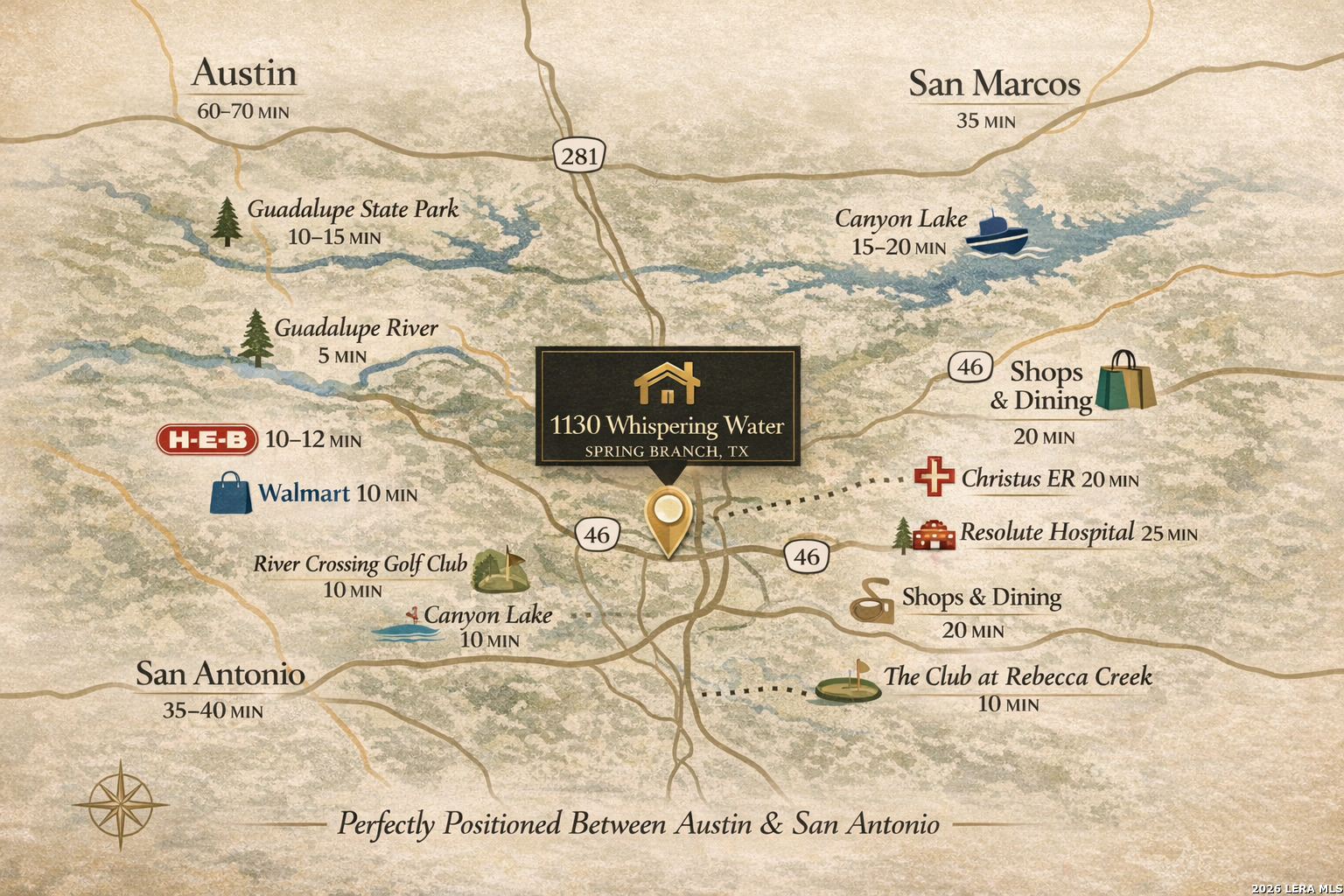 Experience refined Hill Country luxury at its finest in this stunning 5,729 sq. ft. estate nestled on 4.44 private acres in Guadalupe River Estates. Designed for both grand entertaining and everyday comfort, this exceptional home features a striking stone exterior, dramatic black iron double-door entry, soaring ceilings, and expansive living spaces filled with natural light. The thoughtfully designed first-floor layout includes a private office, an elegant formal dining room, a spacious primary suite retreat, and a chef-inspired kitchen complete with oversized island, walk-in pantry, premium appliances, and seamless flow into the breakfast area and main living space. A dedicated wet bar and entertainment room create the perfect setting for hosting, while dual staircases add architectural distinction and convenience. Step outside to your own resort-style oasis featuring a sparkling pool, generous patio space, and serene Hill Country views-ideal for sunset evenings and weekend gatherings. The acreage provides privacy, mature trees, and room to truly breathe. As a property owner in Guadalupe River Estates, you'll enjoy exclusive access to Riverwood Park, a private river park available only to neighborhood residents-offering direct Guadalupe River access for recreation, relaxation, and unforgettable outdoor experiences. This is more than a home-it's a lifestyle of space, privacy, and elevated Texas living.