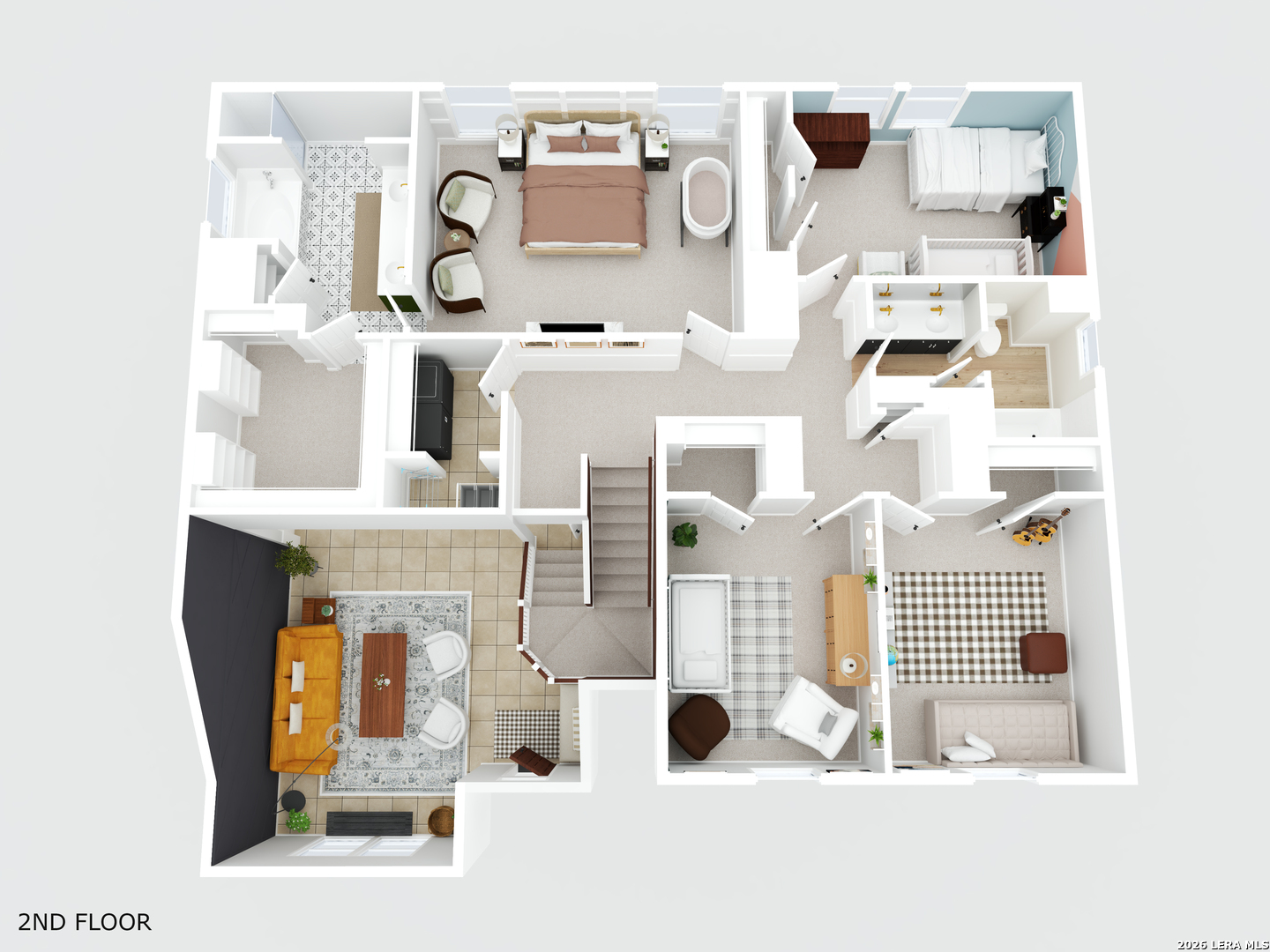 Welcome to an exceptional contemporary residence tucked inside the gated community of Oakridge Point, where thoughtful design, modern updates, and privacy come together seamlessly. Situated on an oversized cul-de-sac lot, this four-bedroom Perry-built home is surrounded by mature trees and manicured landscaping, creating a peaceful and refined setting from the moment you arrive. Step inside and be greeted by soaring vaulted ceilings and a bright, open floor plan designed for both everyday comfort and effortless entertaining. The home features two spacious living areas, a formal dining space, and an optional breakfast area just off the stunning, light-filled kitchen-perfect for hosting gatherings or enjoying quiet mornings at home. Designer accent walls, custom fixtures, and exquisitely updated bathrooms elevate the home with a sense of style and sophistication throughout. All bedrooms are generously sized, with the primary suite offering a true private retreat upstairs. Unwind in the spa-like primary bathroom, complete with a relaxing soaking tub, separate walk-in shower, and an expansive walk-in closet. Step through custom double back doors to enjoy outdoor living under the expansive covered patio. Residents can enjoy access to community amenities including a pool, pavilion, and playground, along with the convenience of two gated entry points. Additional highlights include a full irrigation system and water softener for added comfort and efficiency. Perfectly located near top-rated NISD schools, as well as shopping, dining, and entertainment, this home offers an unbeatable combination of style, convenience, and location. Homes like this-on oversized lots in established, gated communities-rarely come available. Schedule your private tour today and experience everything this remarkable property has to offer. ***3.25 percent assumable loan opportunity for qualified buyers. ***