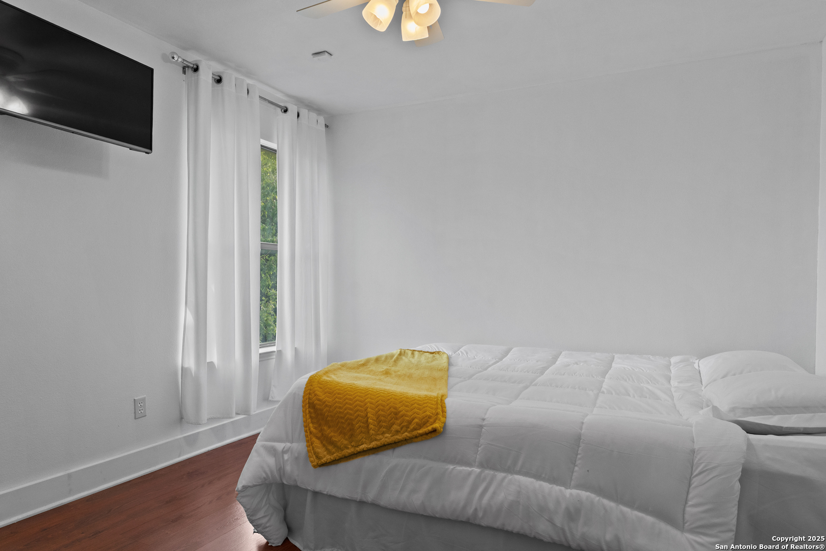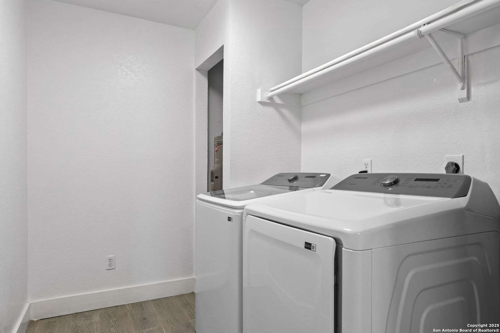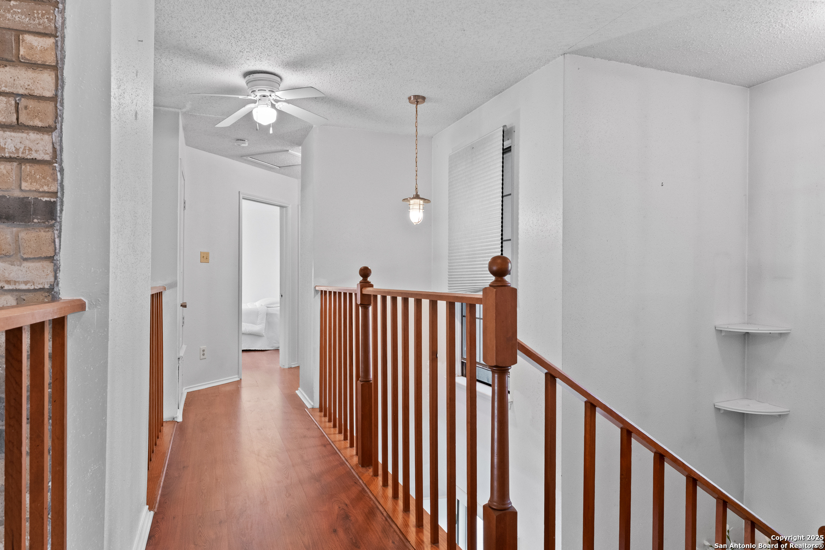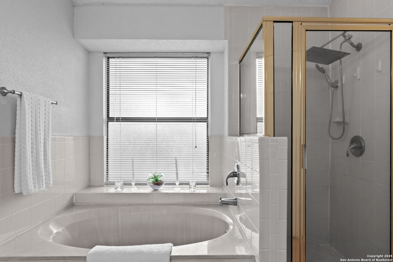 Welcome to this beautifully maintained 4-bedroom, 2.5-bath home nestled in the desirable Woodcrest community of Live Oak. Step inside to find high ceilings, tile flooring, and a stunning brick fireplace that creates a warm, inviting atmosphere. The open-concept kitchen features granite countertops, abundant cabinetry, and a spacious dining area perfect for gatherings. The primary suite downstairs offers dual walk-in closets and a spa-like bath with a soaking tub and separate shower. Upstairs includes generous secondary bedrooms and a full bath. Enjoy outdoor living year-round with a covered patio and pool. Conveniently located near shopping, dining, and major highways - this home truly has it all!