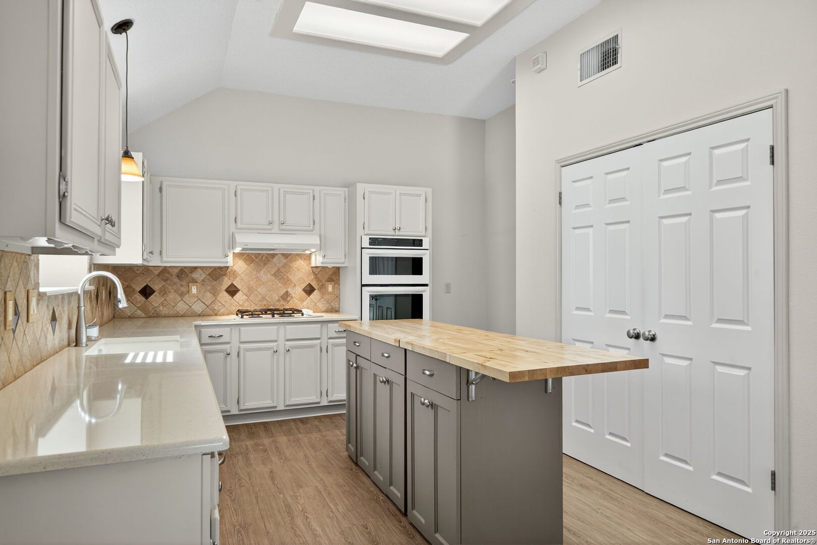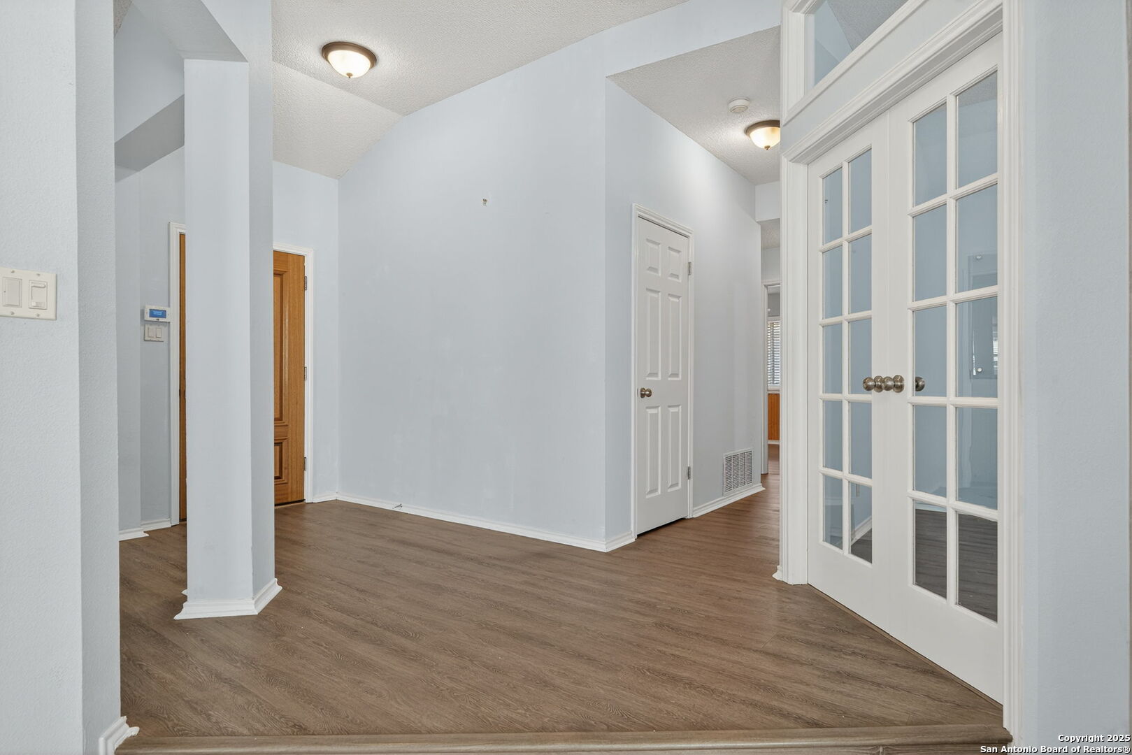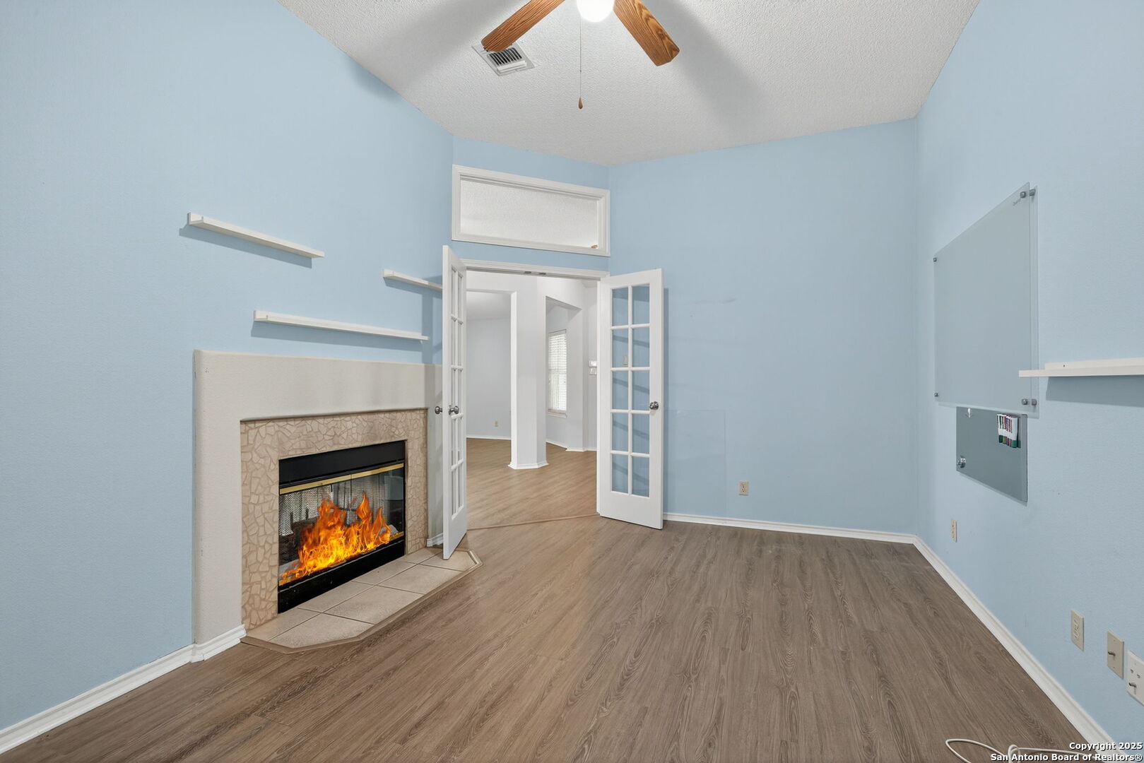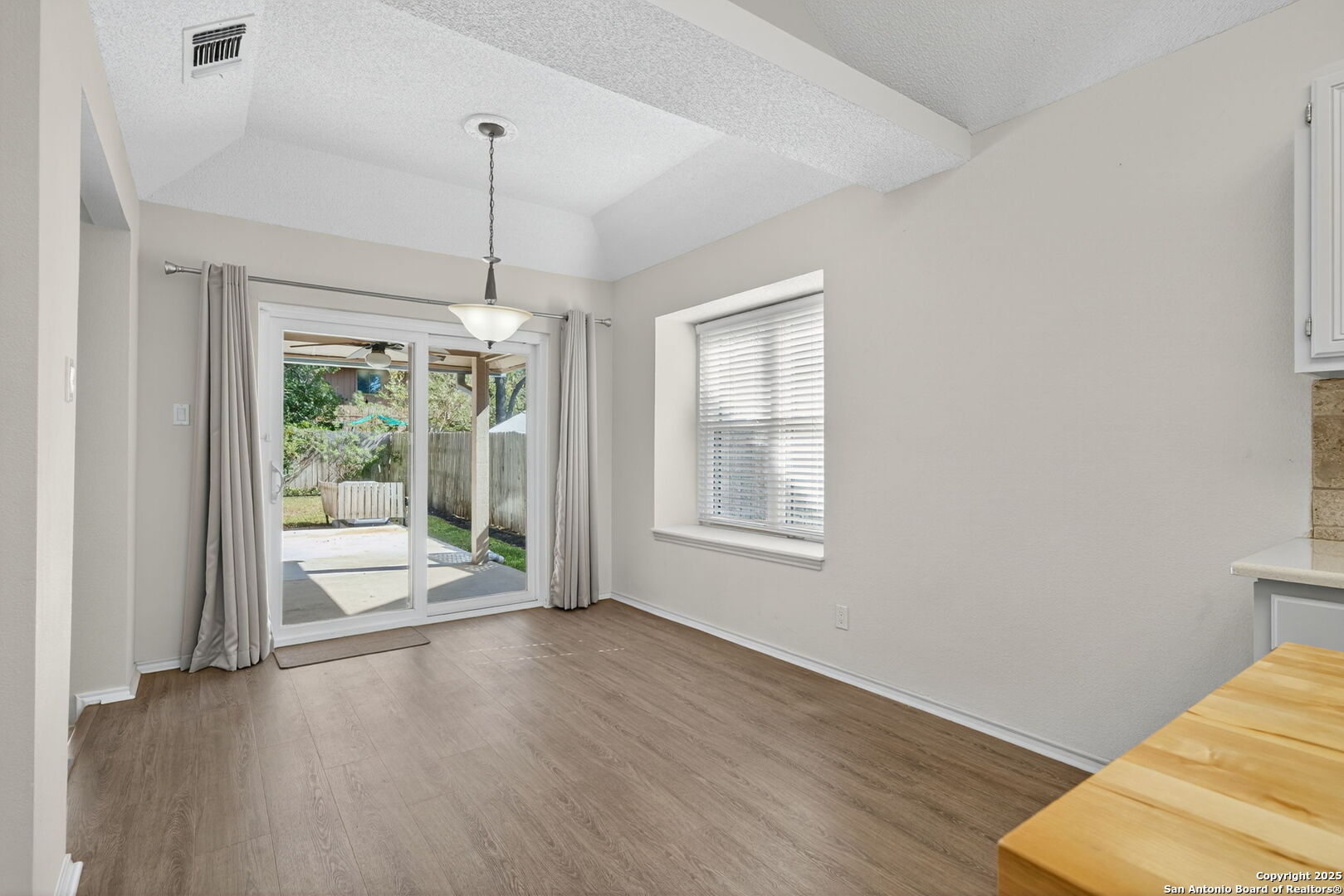 Beautiful stone 1-story home in desirable Woodridge neighborhood features 3 BR, 2 BA, an Office & 2 dining areas! Island kitchen has gas cooking & farmhouse sink. A see-through Fireplace is located between living area & office. No carpet. Spacious Primary suite has a sitting area, tray ceiling, garden soaking tub & patio access. Relaxing Covered Patio has a Swim Spa & heated shower. Backup generator included! Community pool, playground, tennis & sport courts. Near UTSA, USAA, Medical Center & shopping!
