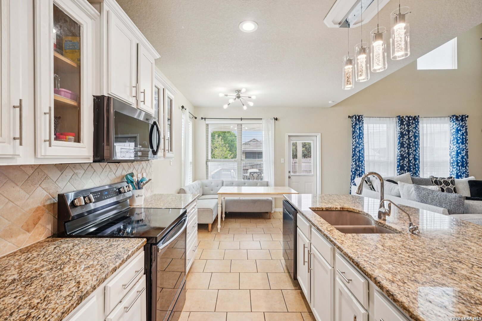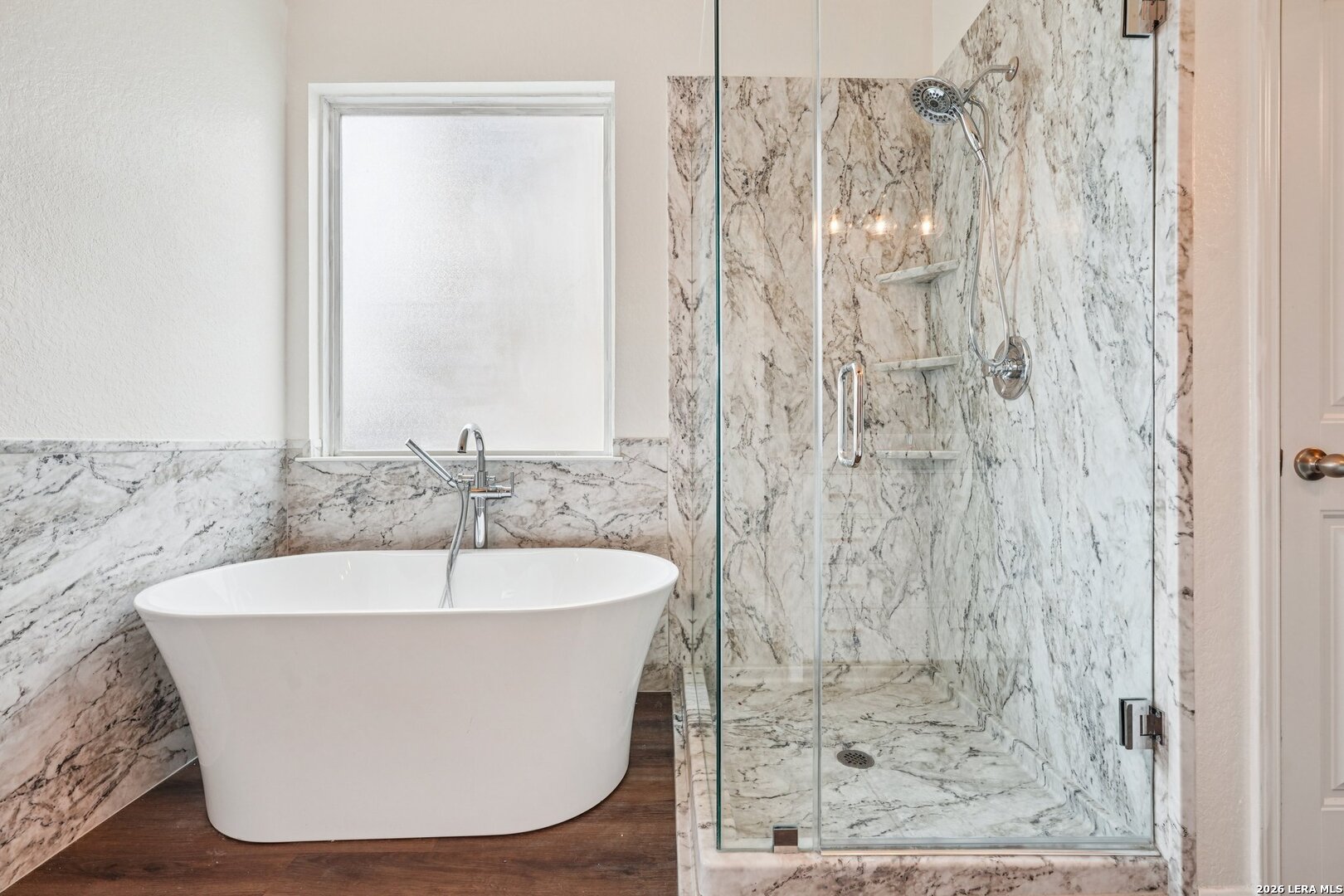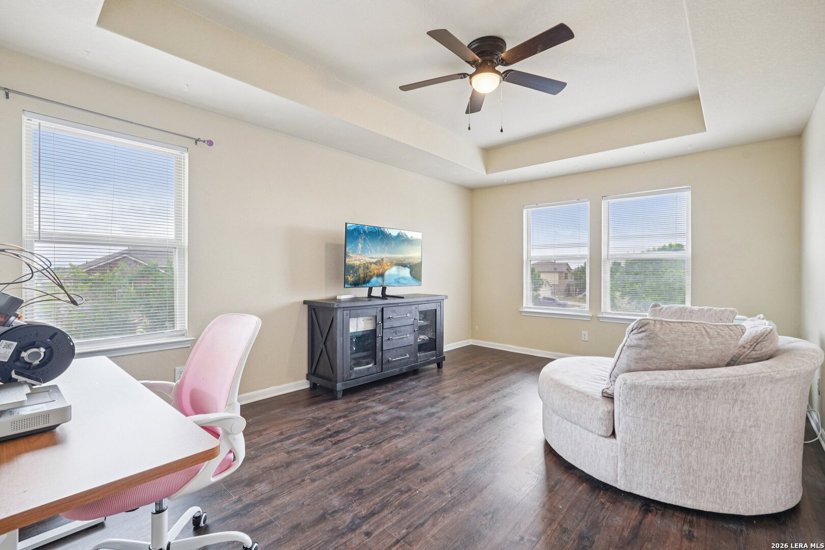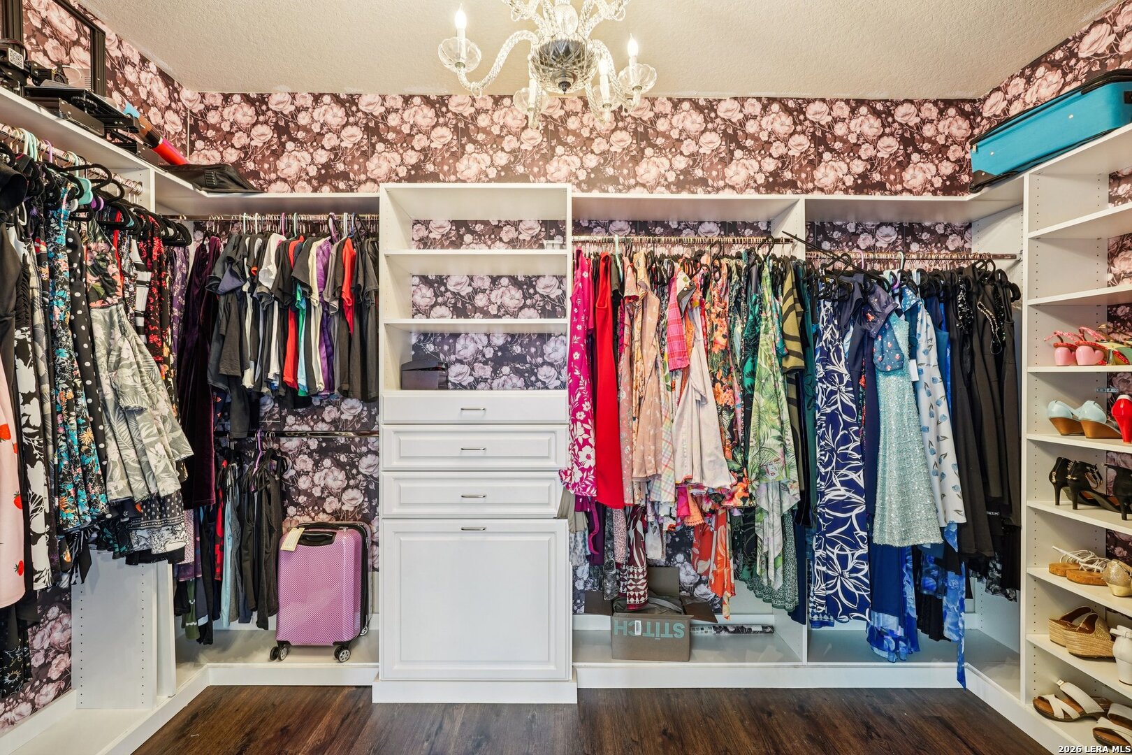 Don't miss this contemporary 2 story home on a corner lot with gorgeous curb appeal, 4 bedrooms, 3.5 bathrooms, and many custom upgrades. You'll love the dramatic entryway, high ceilings, and natural lighting. This spacious property offers an open floor plan, modern kitchen with a large island, tons of cabinetry, stone counters, and stainless steel appliances. Unwind in your downstairs primary suite with a spa-like bathroom featuring dual vanities, marble finishes, a dreamy walk-in closet with custom built-ins, and a luxurious soaking tub. Upstairs you'll find 3 additional bedrooms (Jack & Jill), 2 full bathrooms, and a game room with doors for extra privacy. You also get a bonus room on the main level which is perfect for an office space or sitting room. Enjoy backyard BBQ's and relaxation with your covered patio and deck area. Trampoline and outdoor playset included. Roof replaced in 2021. Convenient location with easy access to 1604/90/151, Home Depot, new Target coming soon, Costco, dining, shopping, entertainment, Lackland, and Sea World just minutes away.