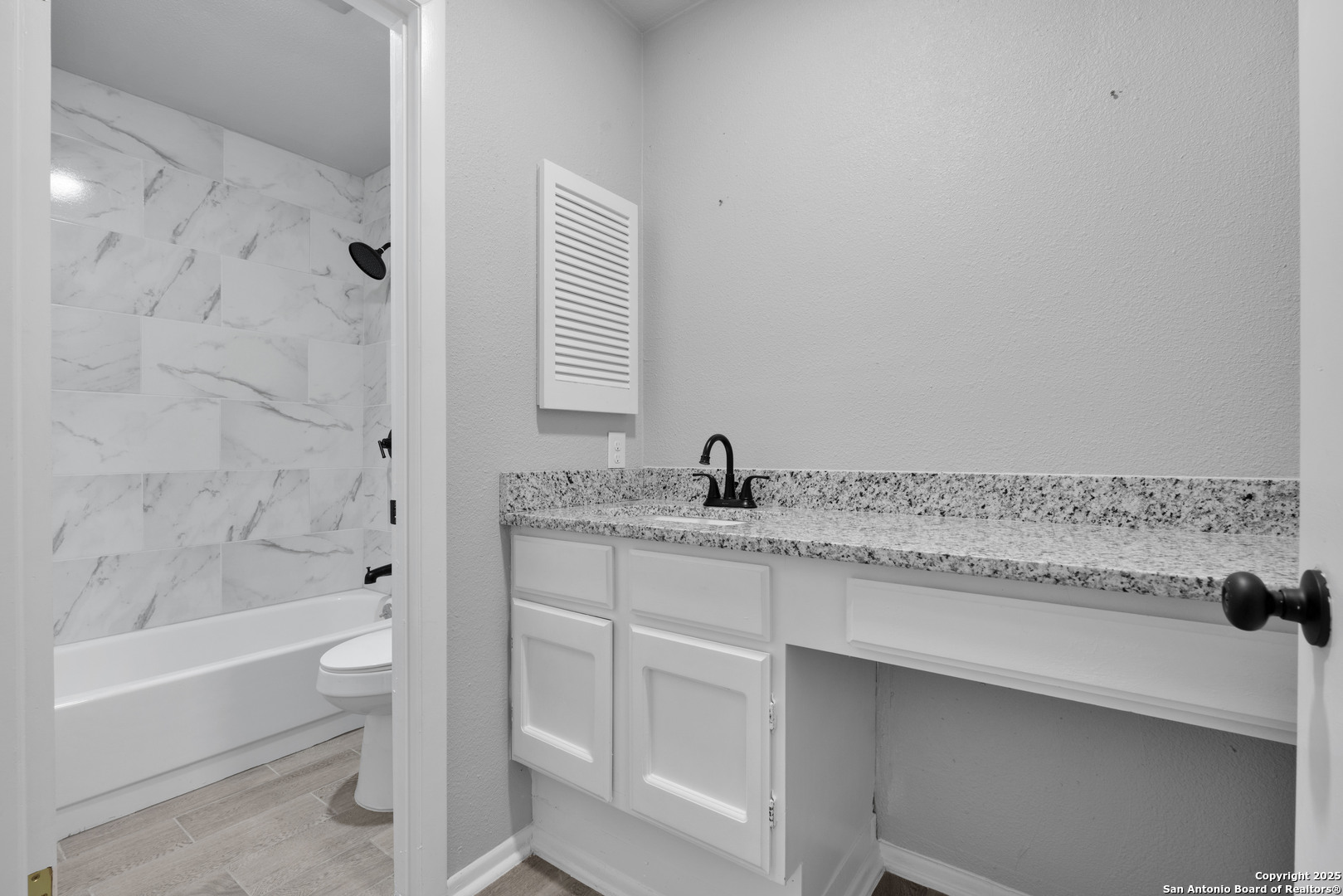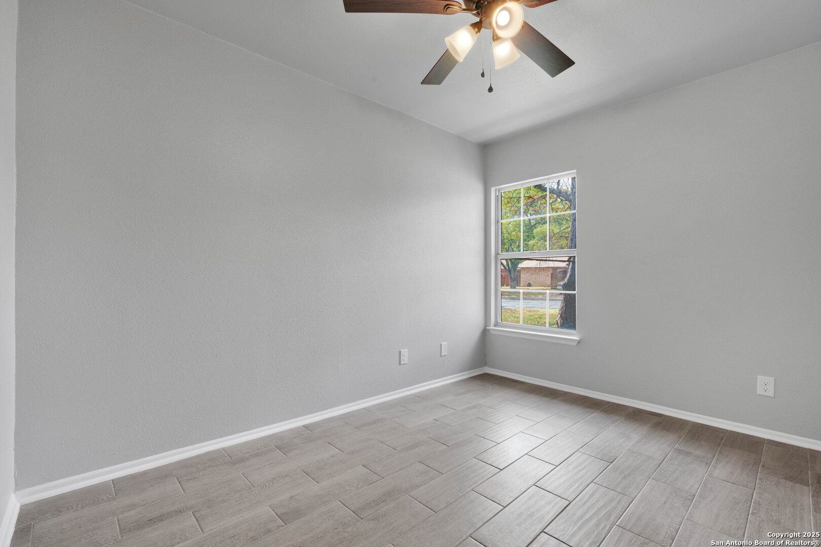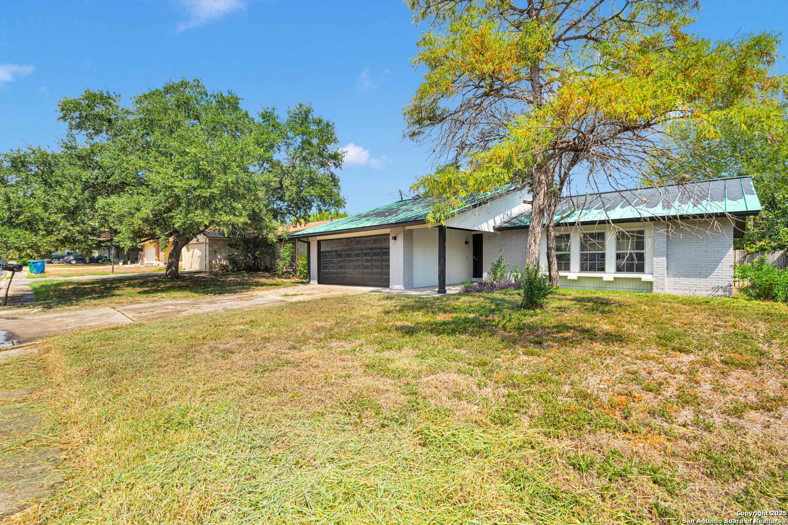 Welcome to this charming single-story home offering 1,413 sq. ft. with 4 bedrooms and 2 bathrooms in the highly sought-after Heritage neighborhood! Designed with an open-concept layout, the living and dining areas flow seamlessly together and are anchored by a stunning floor-to-ceiling brick fireplace-perfect for cozy evenings. The home features tile flooring, updated fixtures, and a modern, sleek aesthetic, while still providing a blank canvas for you to personalize and make your own. The kitchen comes equipped with stove and washer hookups, ready for your custom updates. Sitting on a spacious 0.15-acre lot, the property includes a driveway with ample parking and room for outdoor enhancements. Conveniently located near Lackland Air Force Base, shopping, dining, top-rated schools, and major highways, this home offers both comfort and accessibility. Don't miss out-schedule your showing today!