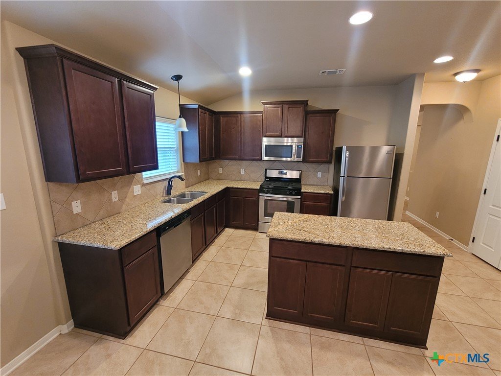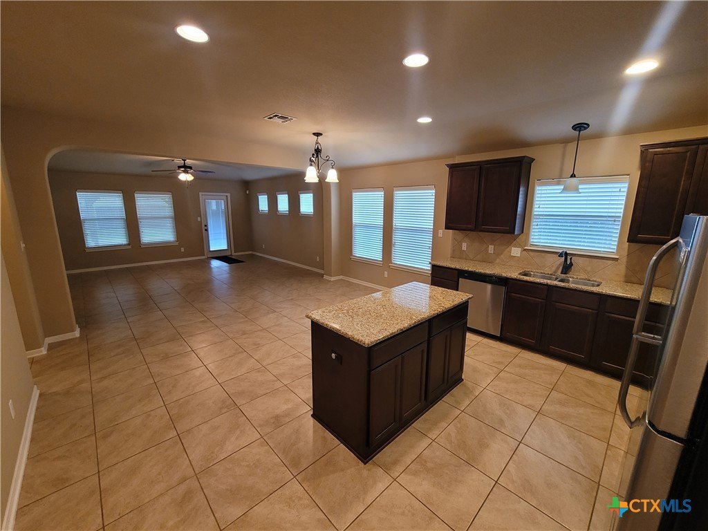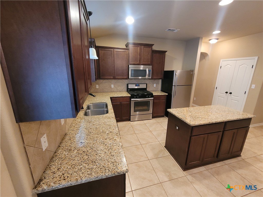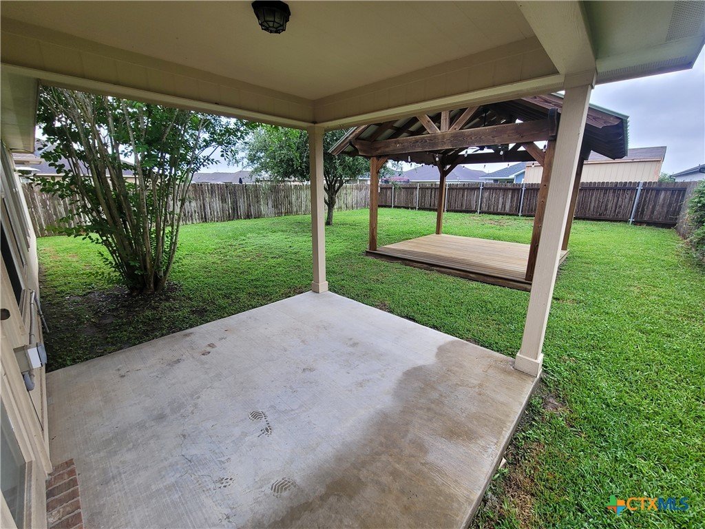 Welcome to the most affordable 4 bedroom, 2 bath in Terra Vista subdivision! 114 Blue Rock is a one-owner home featuring an inviting, open 1,934-square-foot floorplan. The beautiful kitchen includes quality cabinets and large island overlooking the comfortable living area, and a separate dining area that could be used as a second living area if desired. The front bedroom would make a perfect office complete with built-in bookshelves. Enter the master suite and you’ll enjoy LVP flooring, large closet and a large walk-in shower. The large utility room offers functional shelving and plenty of room for a second fridge or freezer. Step out to the oversized backyard and you can relax under the wooden pergola.